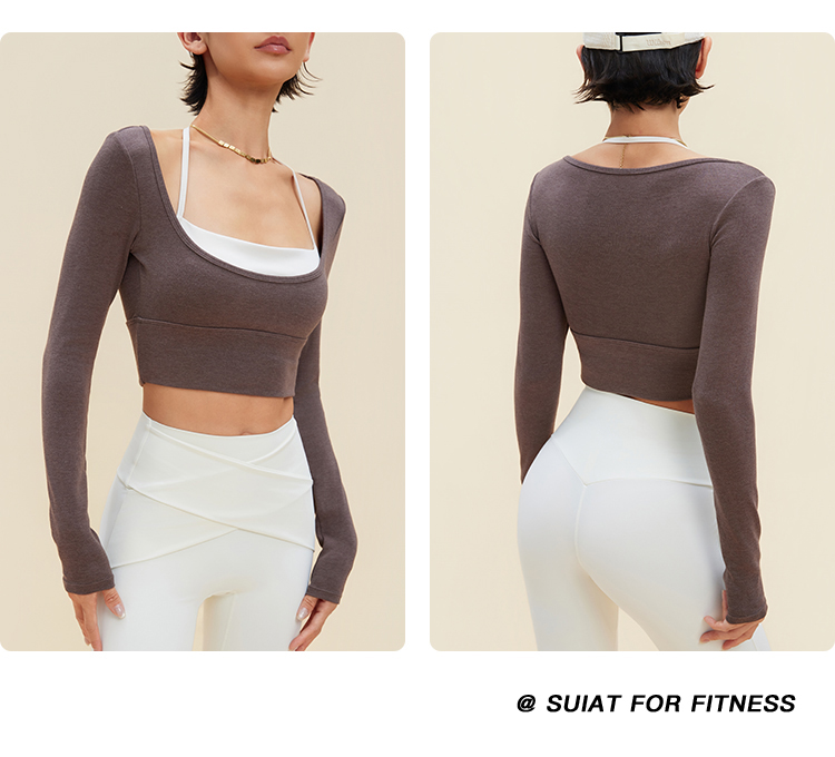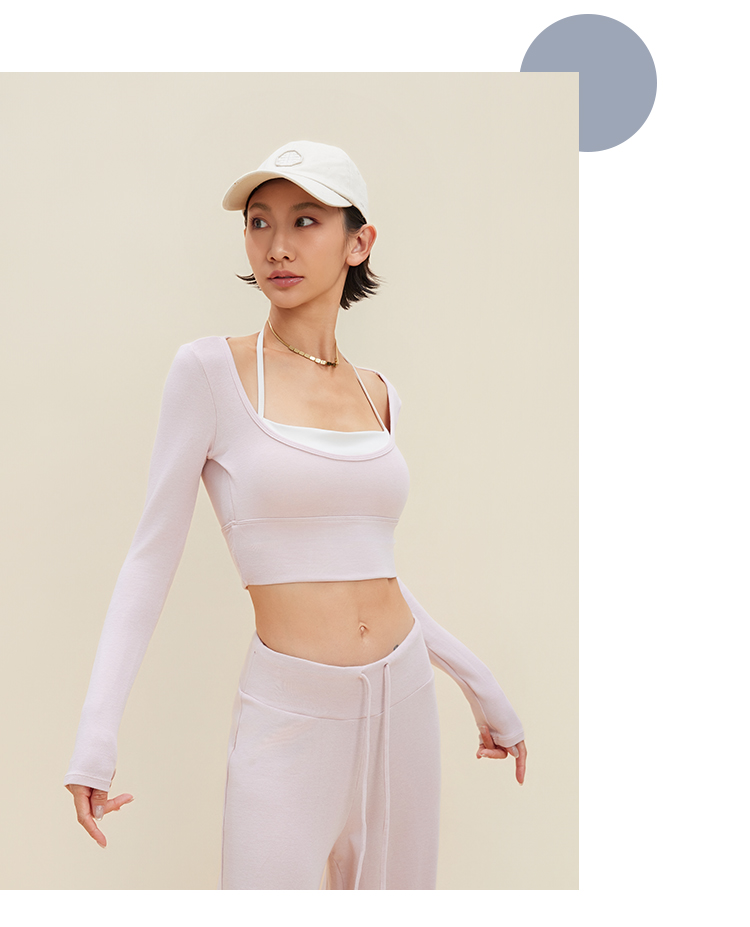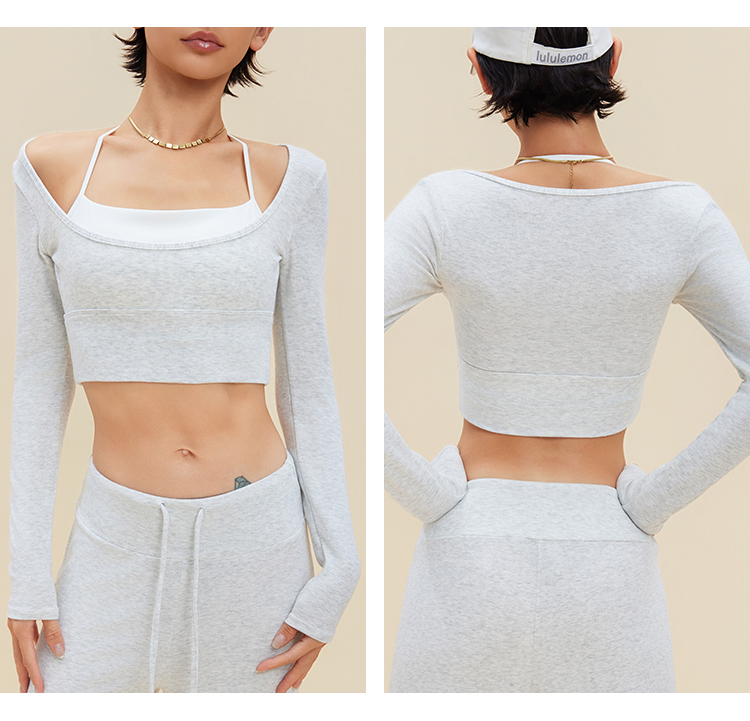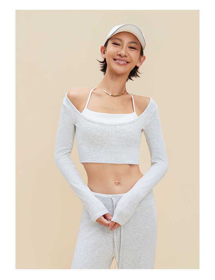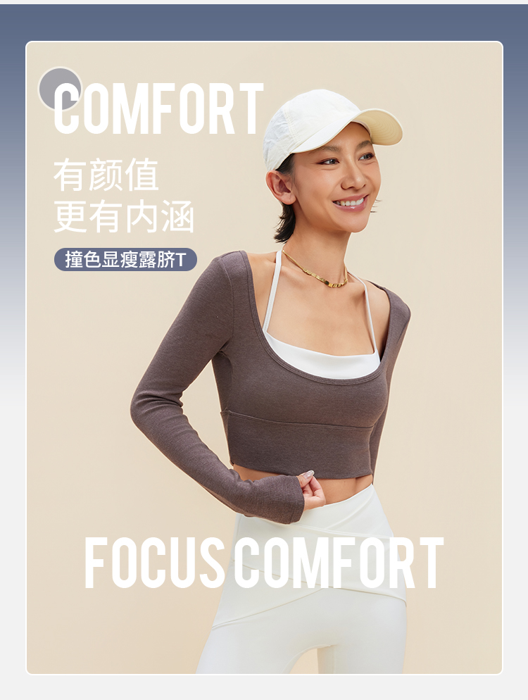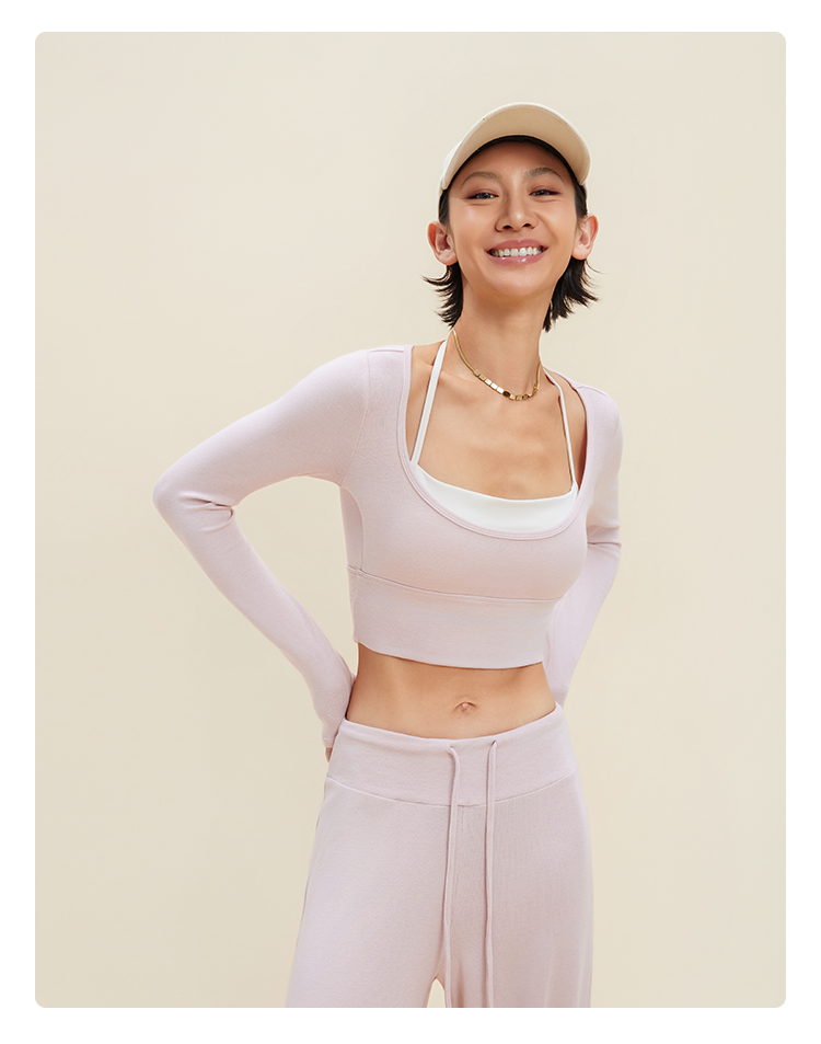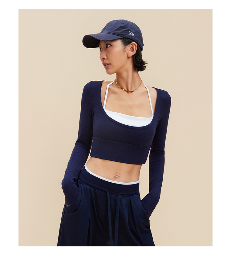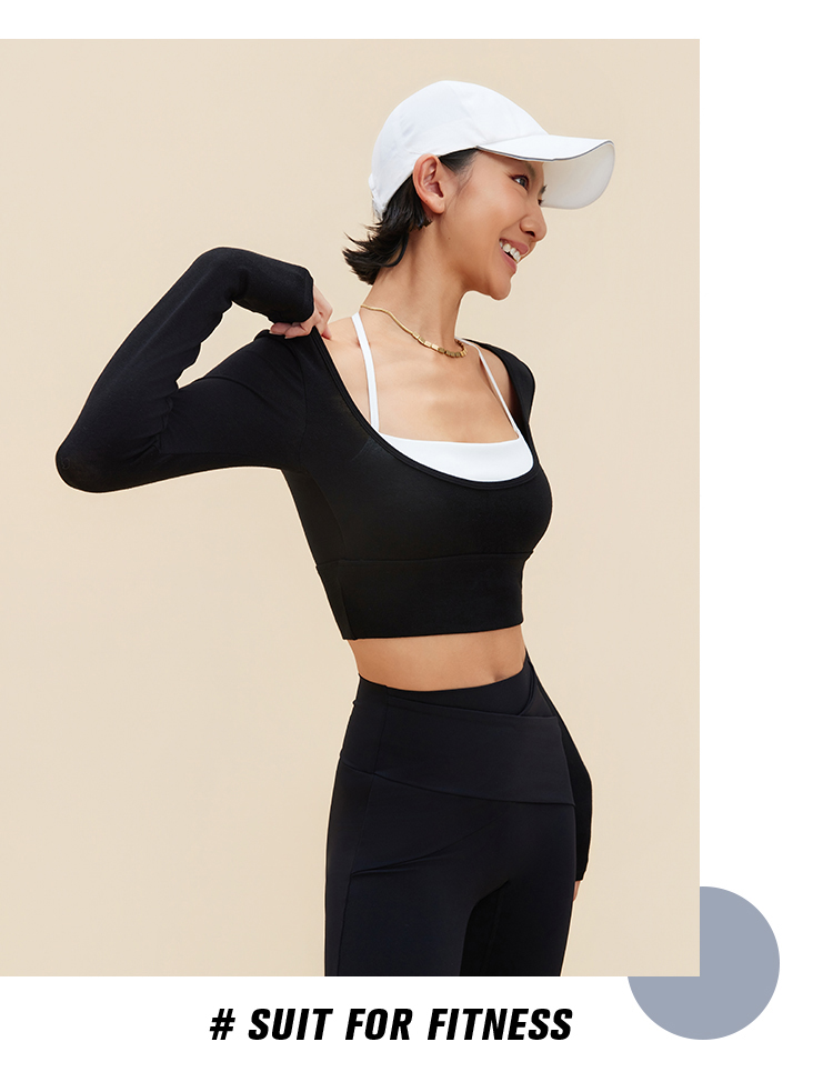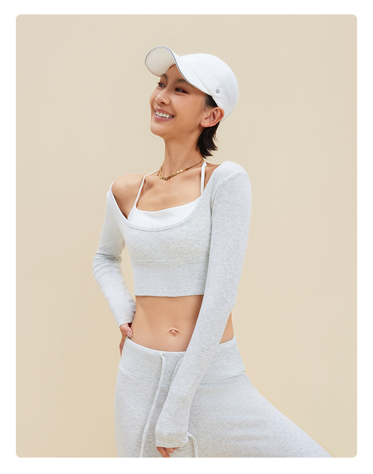 跃牌【禅语梵心】裸感撞色瑜伽服长袖半固定杯跑步修身运动文胸CX5589