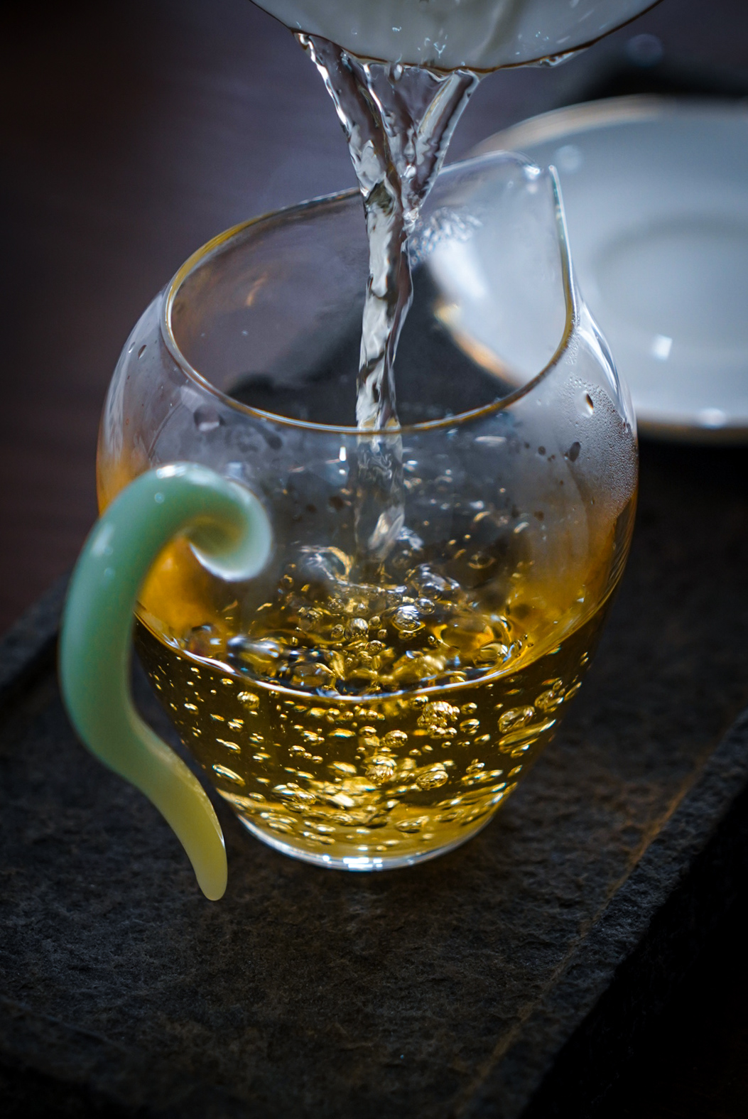 澄澈的明绿黄色茶汤,细品,汤水又有勐库西半山茶的柔细腻和甜润感;