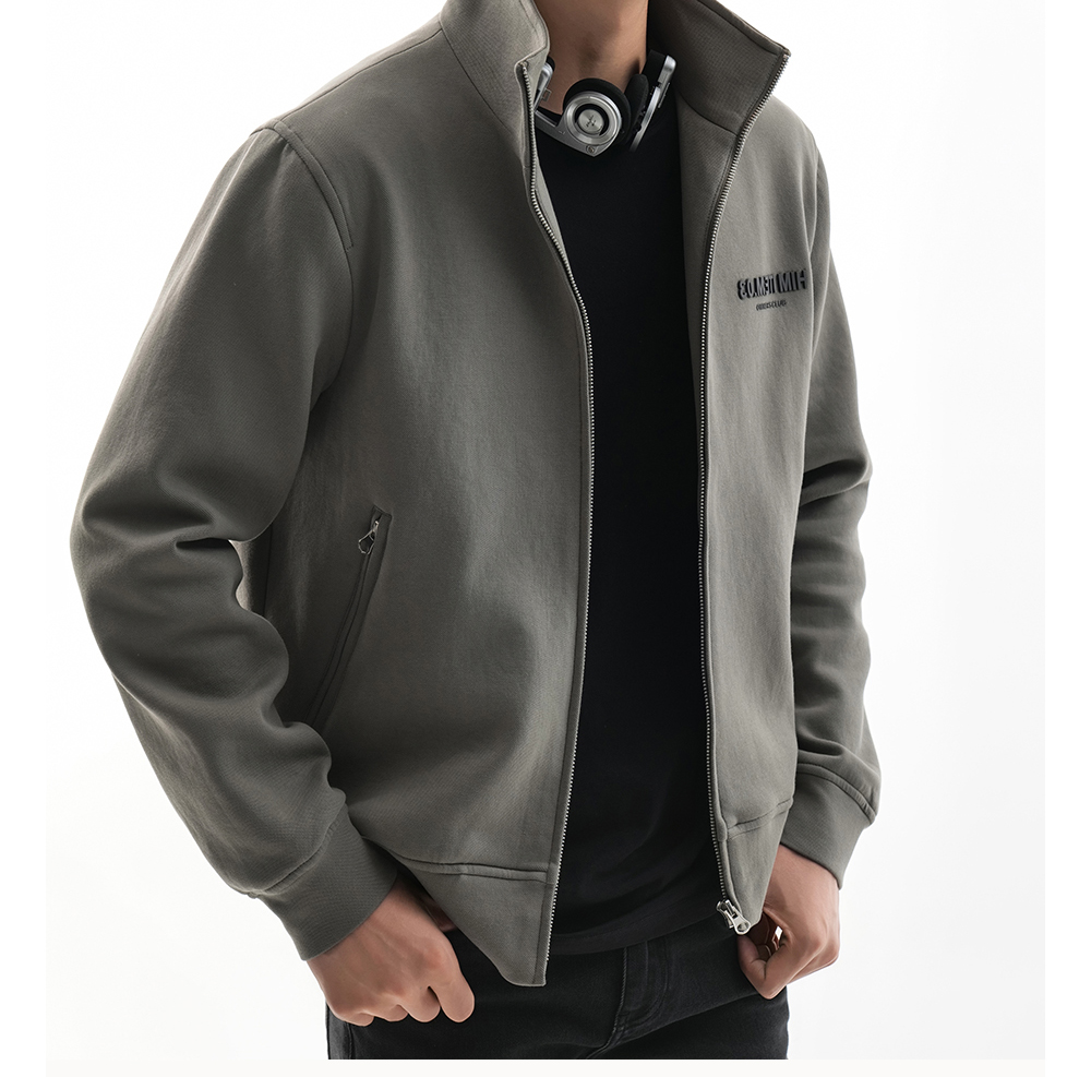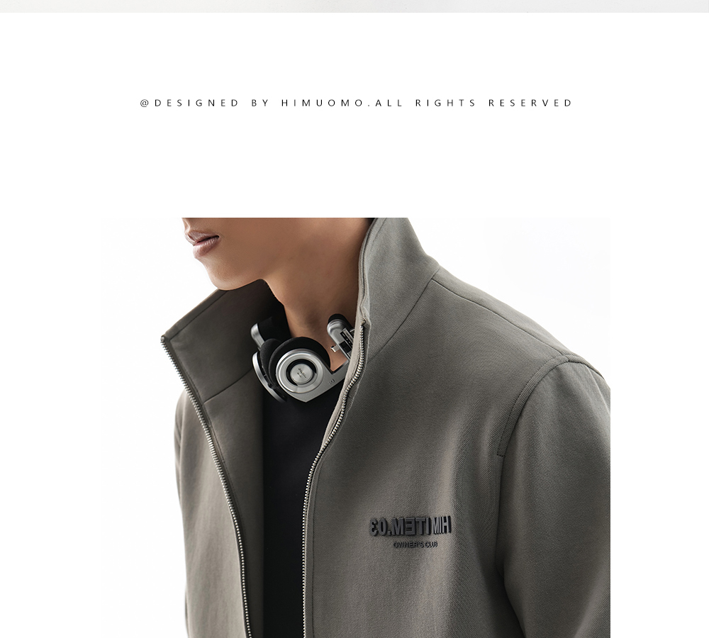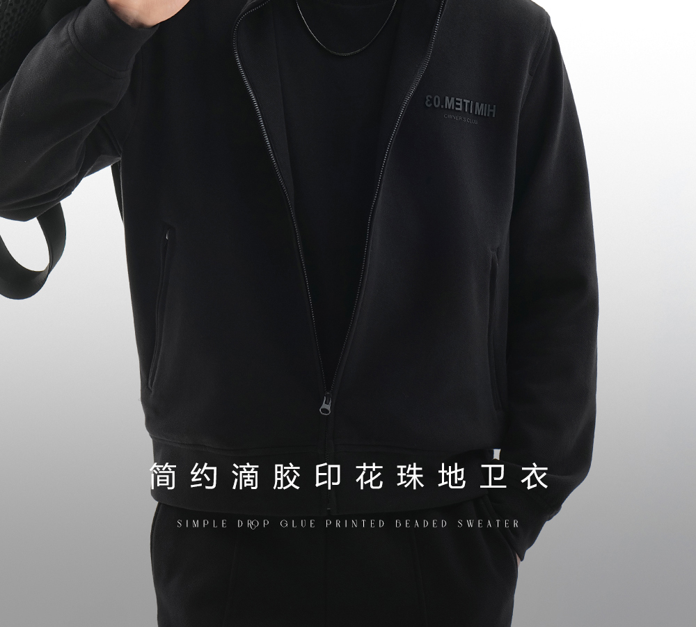 HIM漢崇 休闲透气珠地棉简约滴胶印花立领运动夹克男 2025秋季