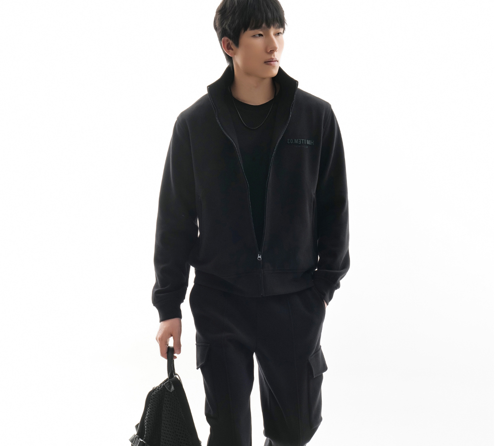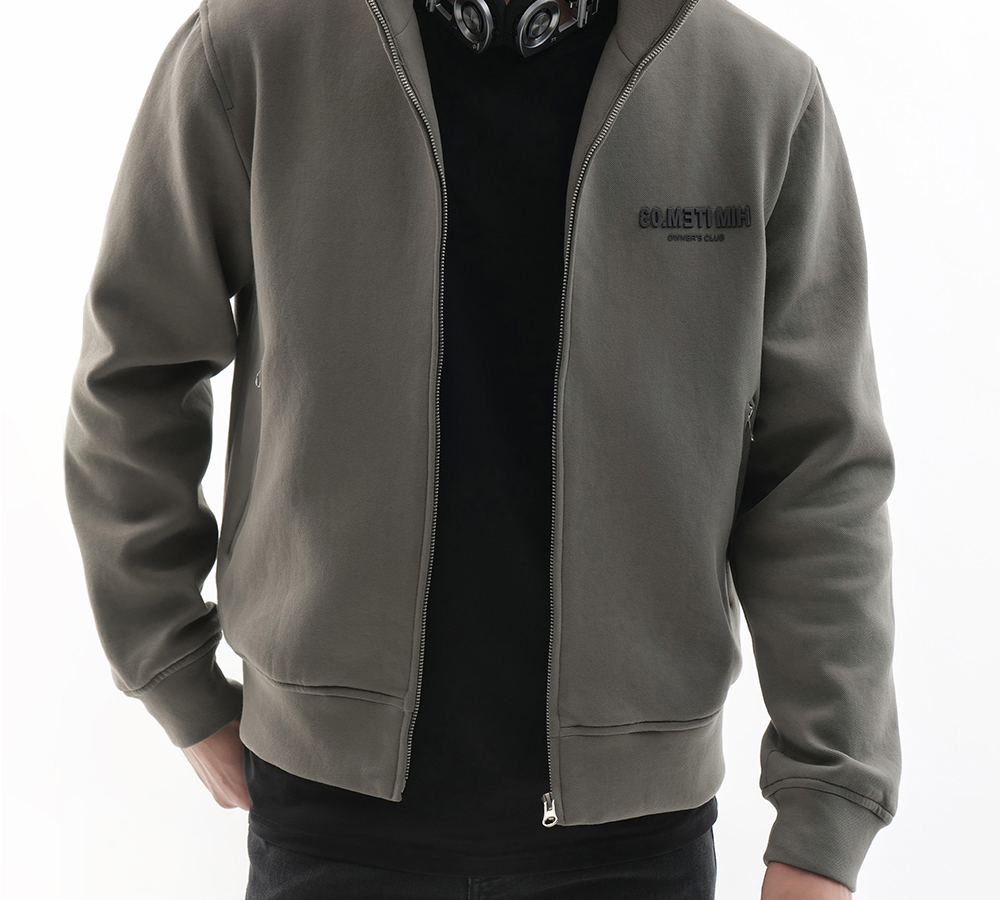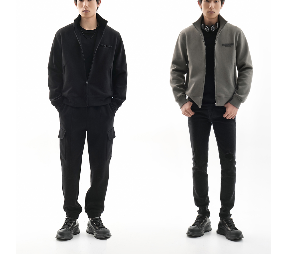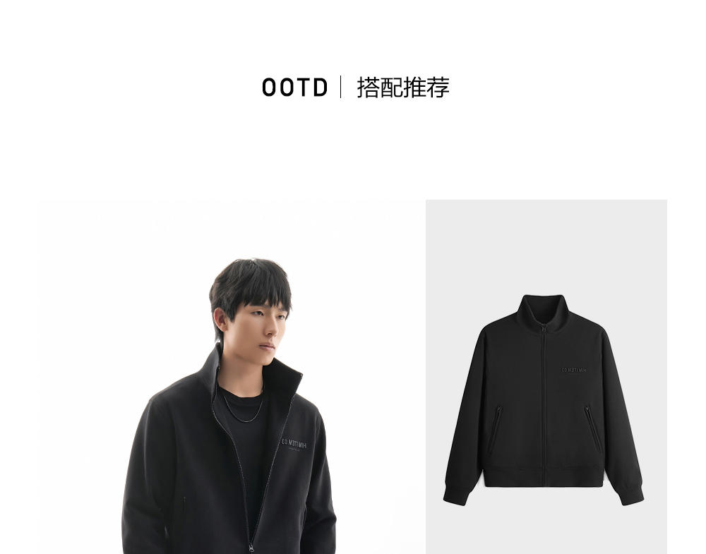 HIM漢崇 休闲透气珠地棉简约滴胶印花立领运动夹克男 2025秋季