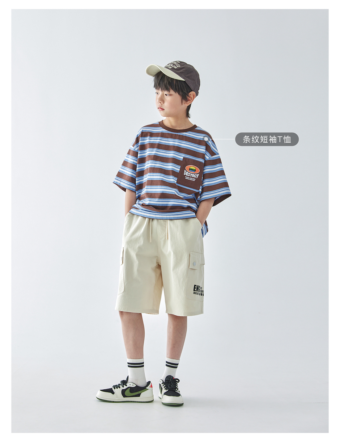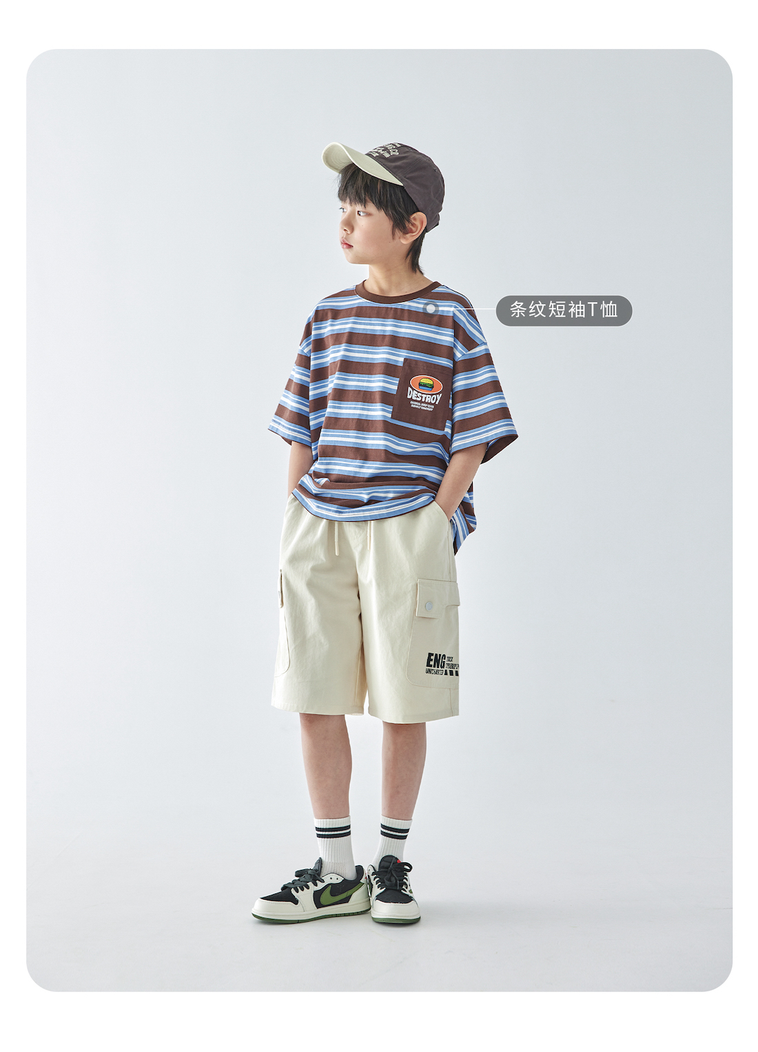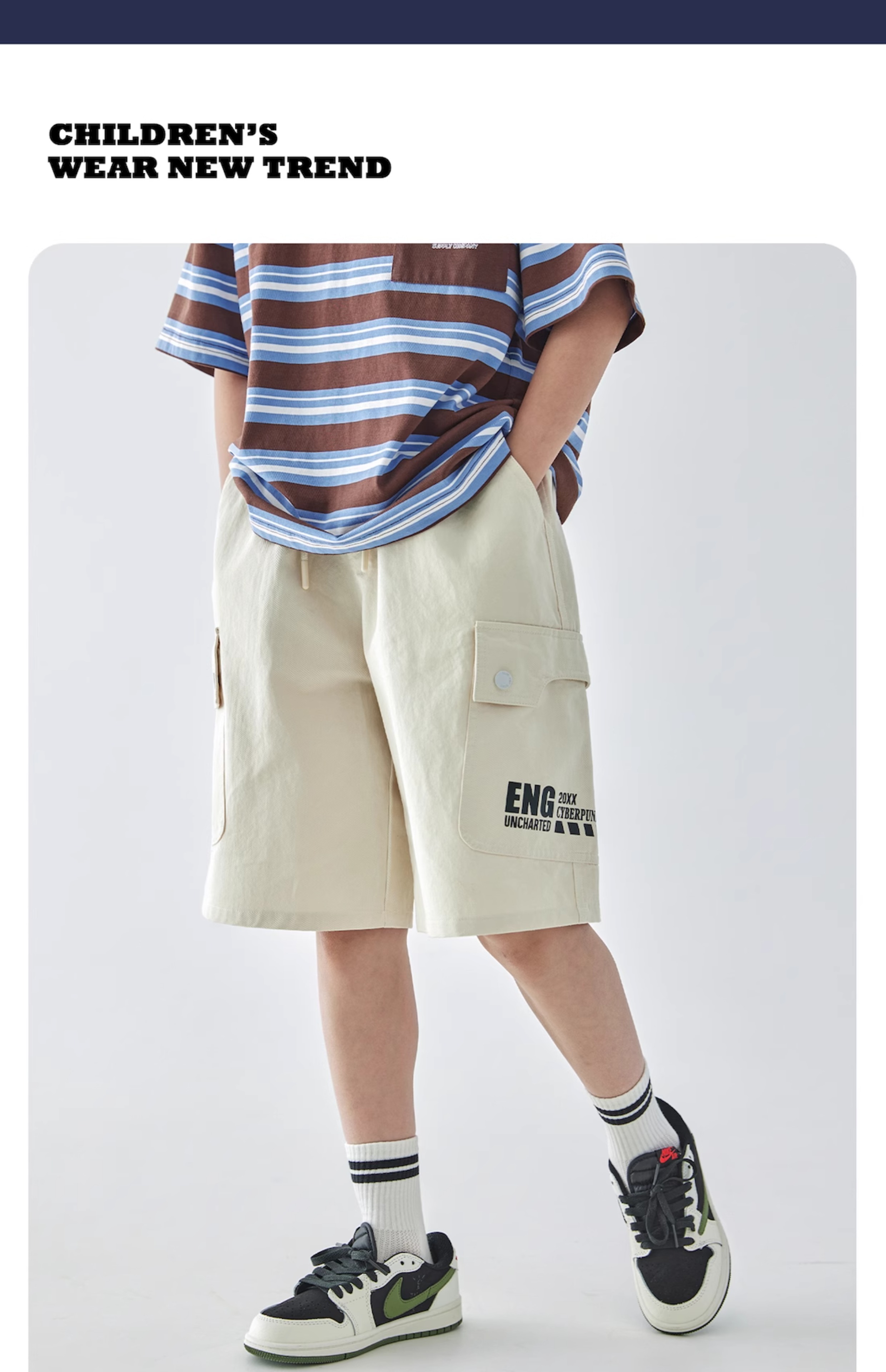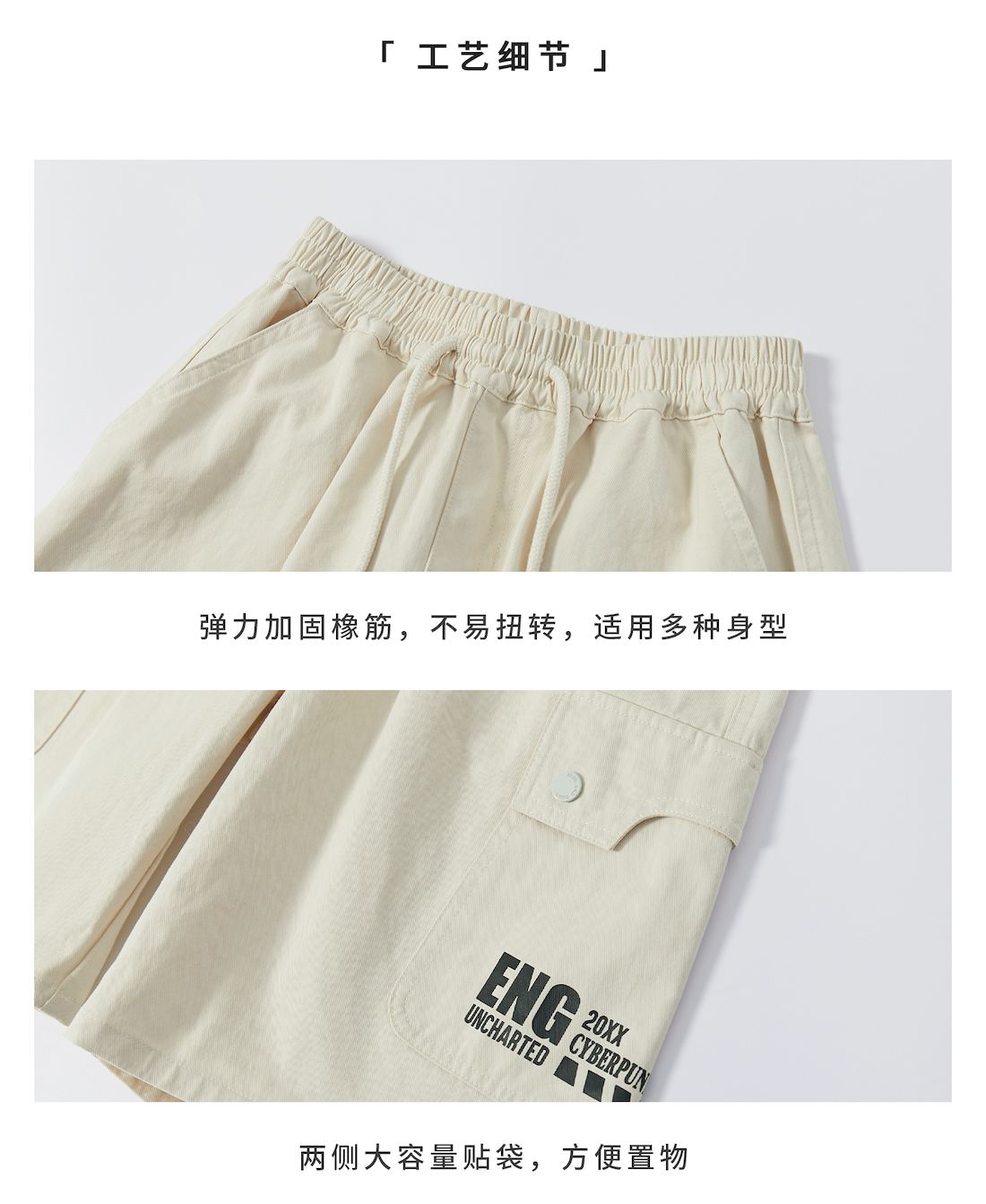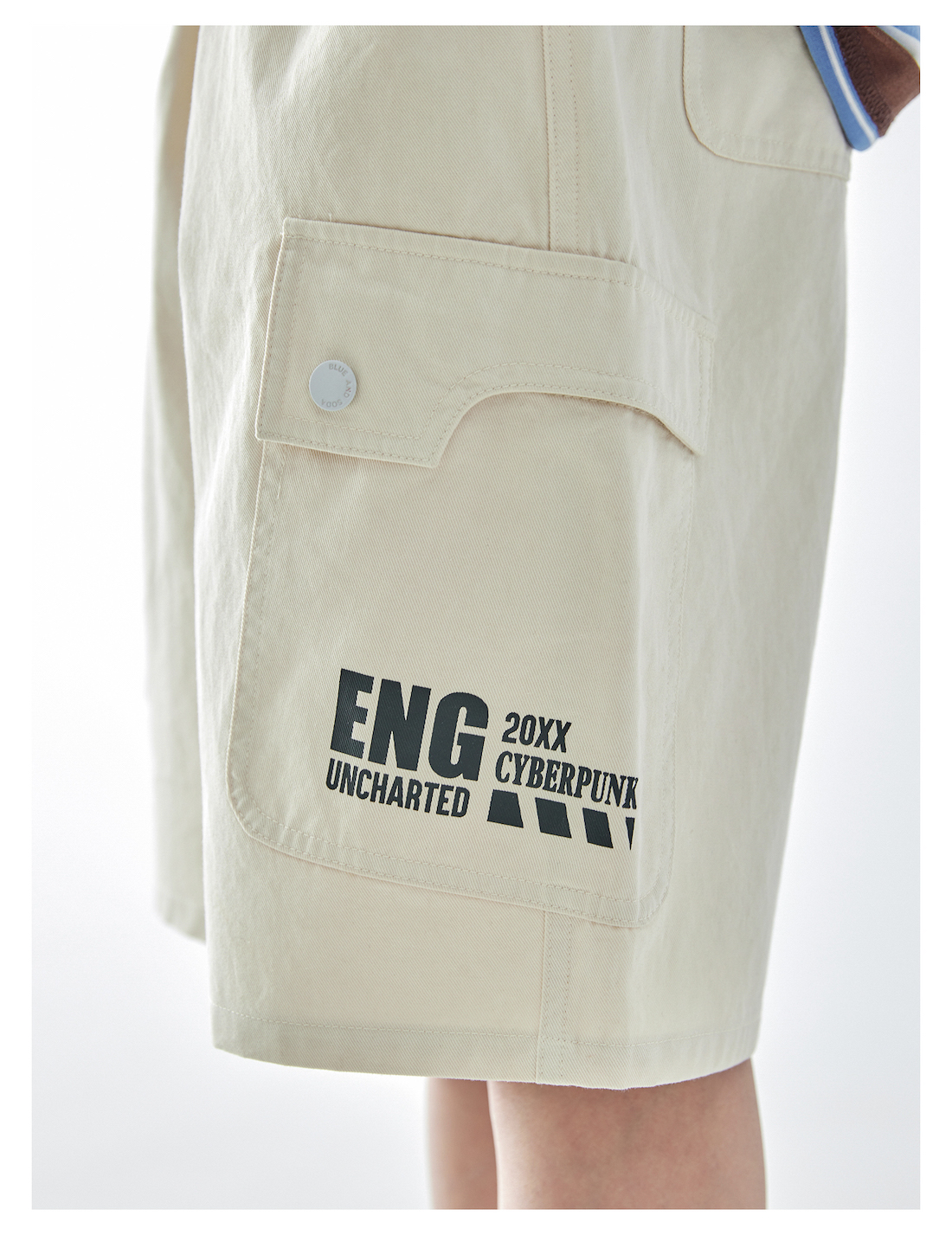 蓝汽水2025夏季全棉斜纹大口袋五分裤休闲松弛感简约廓形亲子短裤