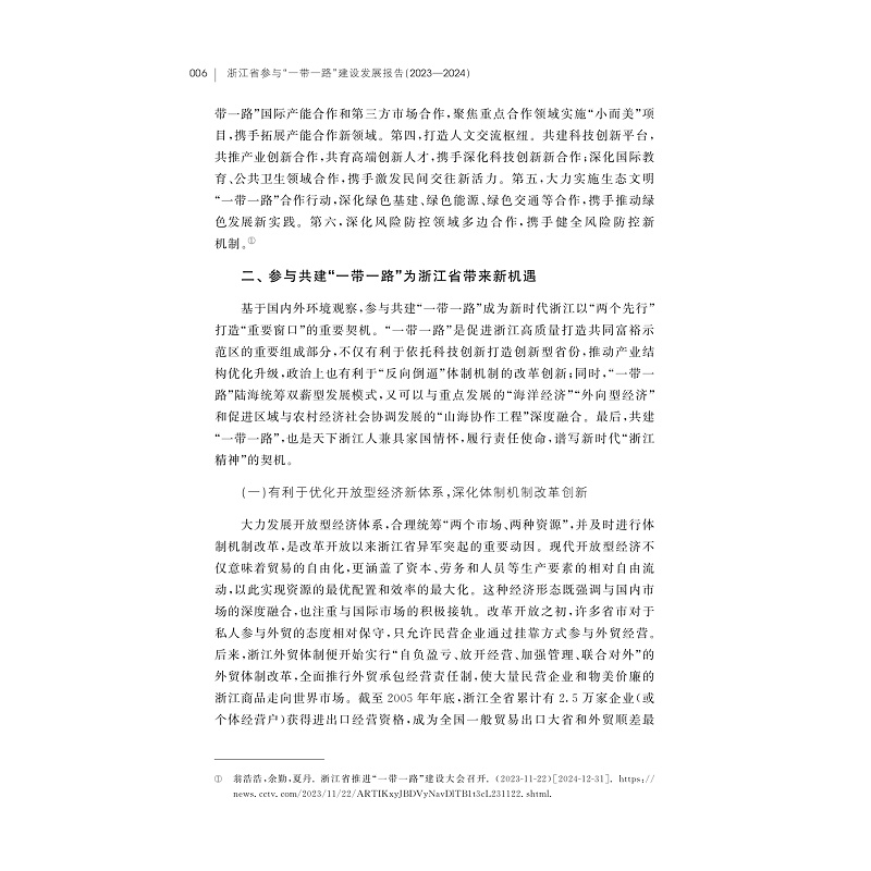 书名:浙江省参与“一带一路”建设发展报告(2023—2024)