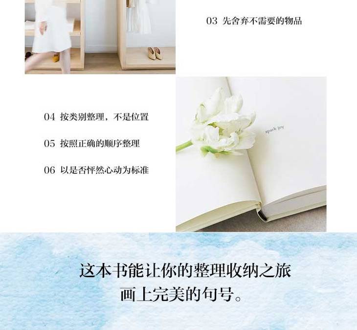 5.内容、装帧、纸张全新升级,质感上佳!随书附赠真人实拍版“近藤式心动整理法实践手册”,心动整理即刻开始。