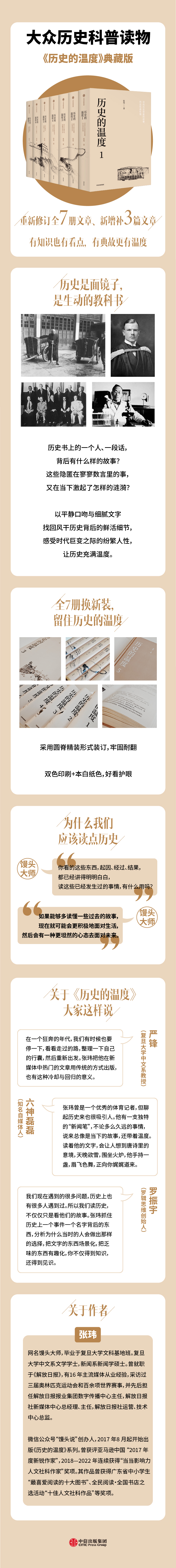 《历史的温度(典藏版)》完整收录全7册内容,并新增3篇文章,找回风干历史背后的鲜活细节,感受时代巨变之际的纷繁人性。有知识也有看点,有典故更有温度。帮助读者读懂过去,活好当下,坦面未来。