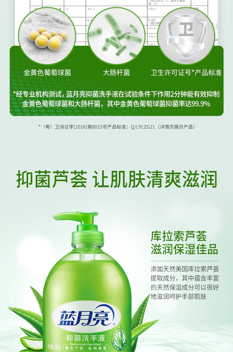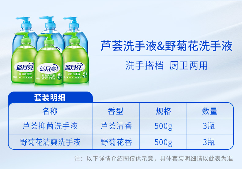 蓝月亮 洗手液组合装 厨房专用洗手液 芦荟抑菌500g*3+野菊花500g*3