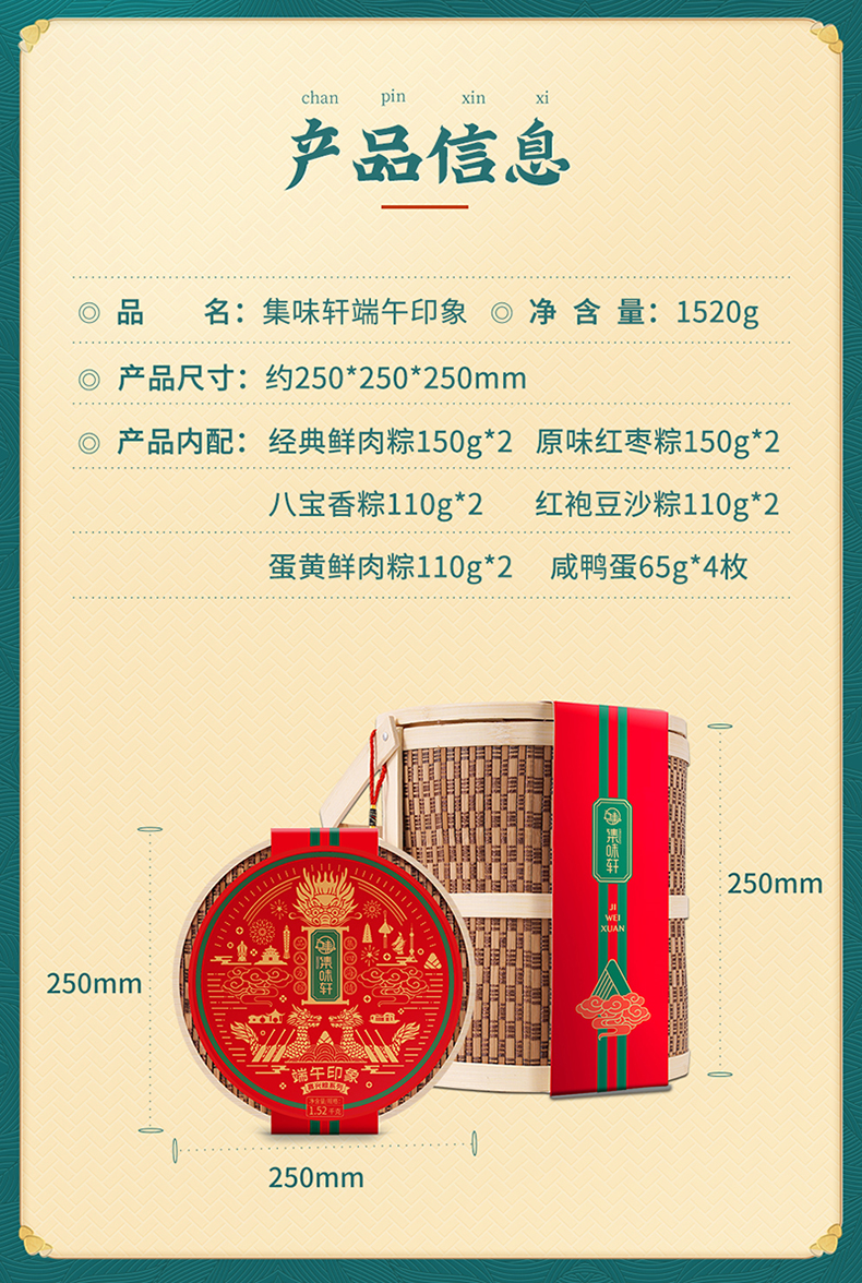 【集味轩粽子礼盒】端午印象粽子礼盒1520g