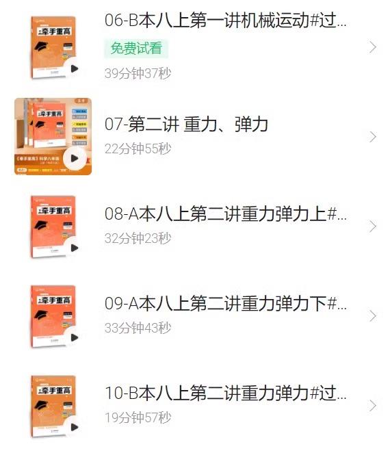 牵手重高科学华师版八年级上册视频书提前招生培优尖子生