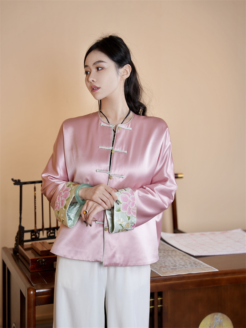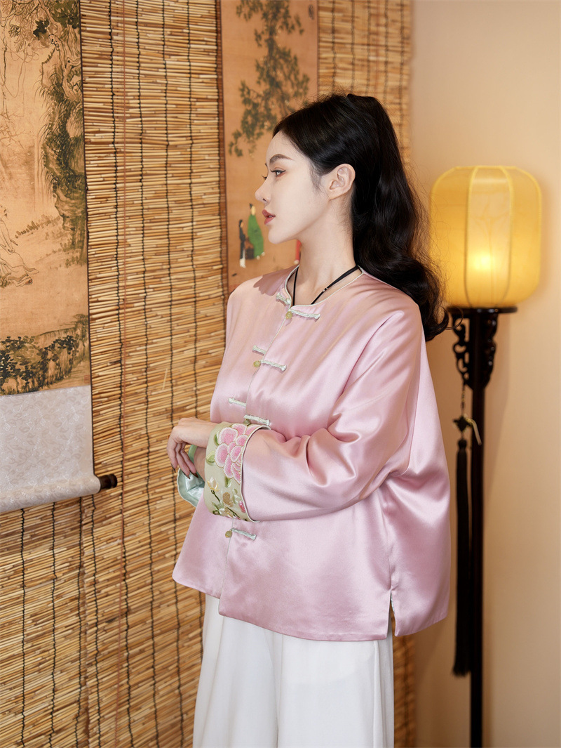 FLZD-A9482新中式重工刺绣夹棉外套秋冬季新款国风盘扣开衫醋酸加棉宽松上衣