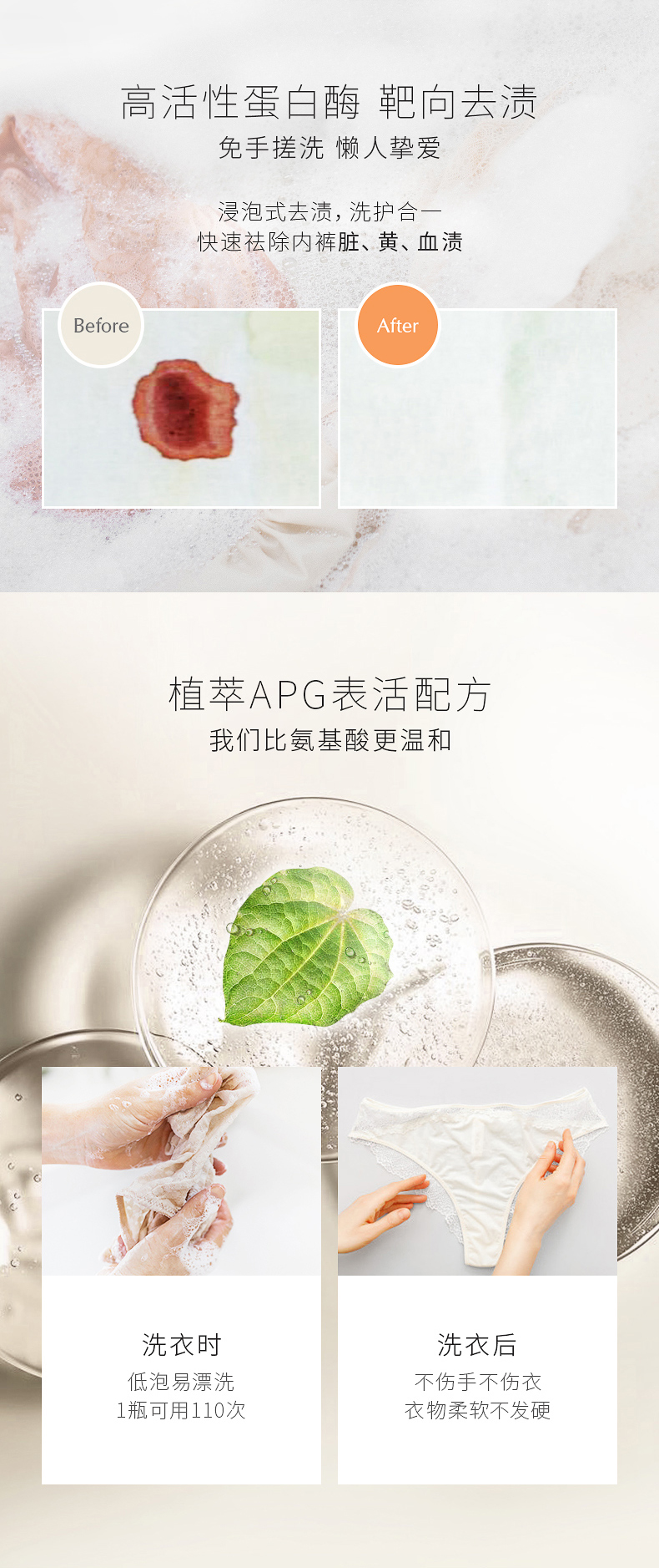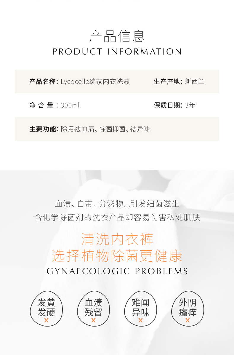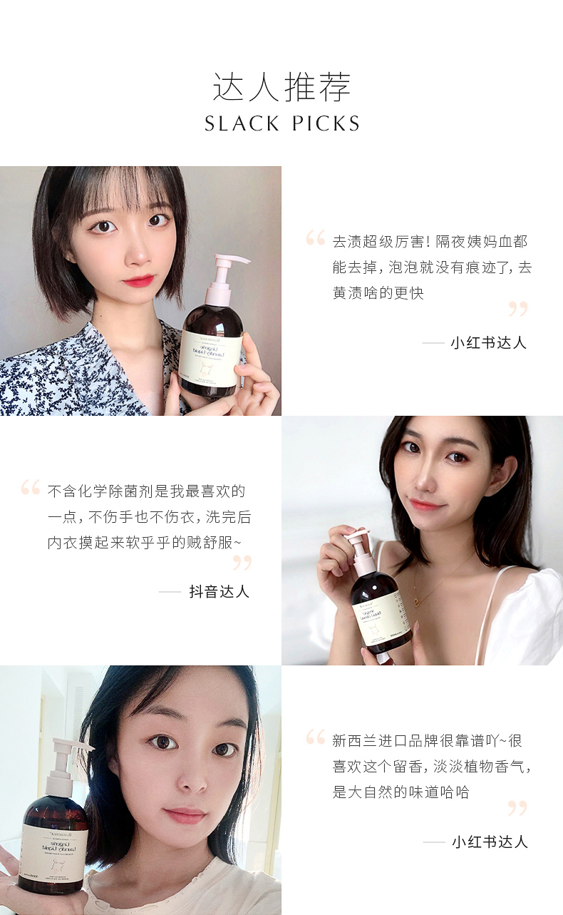 新西兰绽家白雪公主内衣洗液内裤清洗液香味持久330ml送一包30ml
