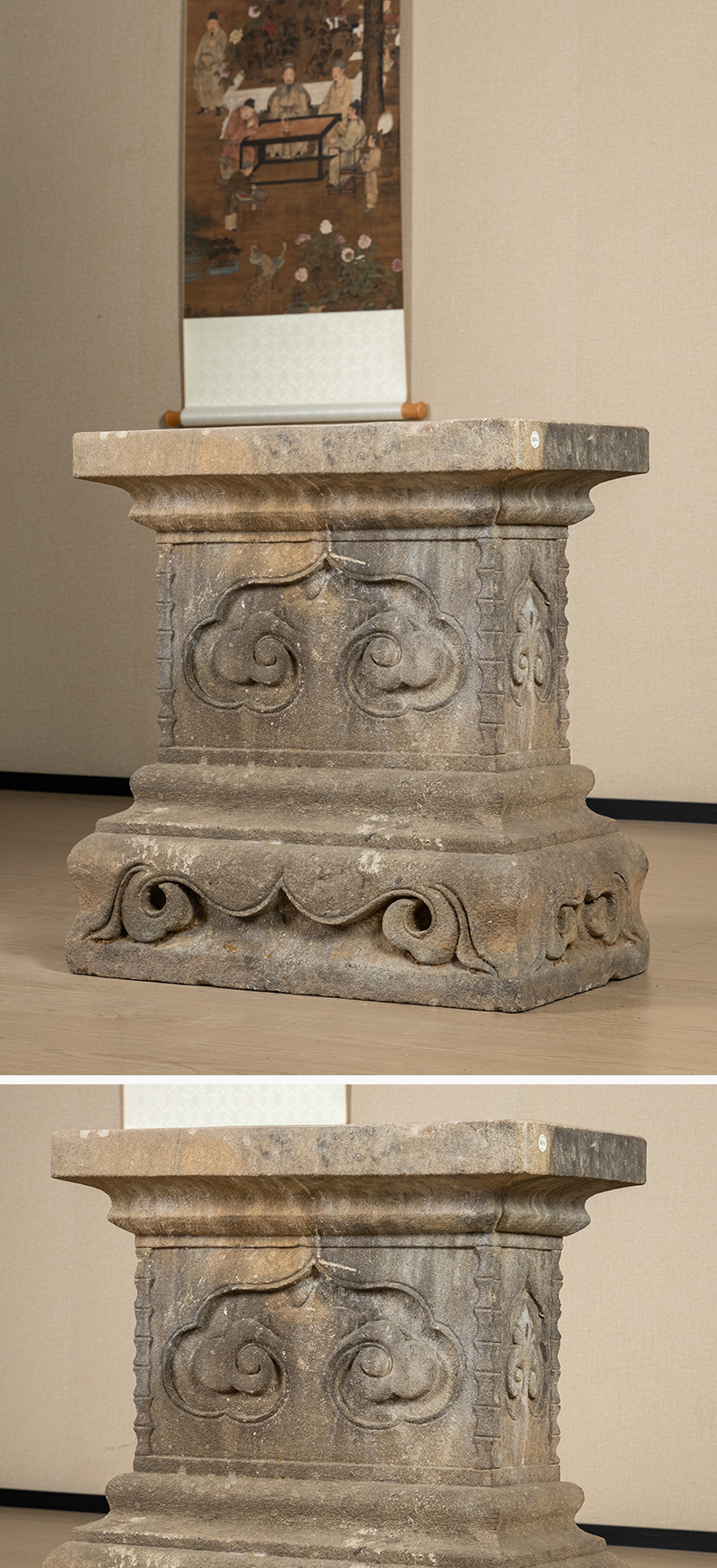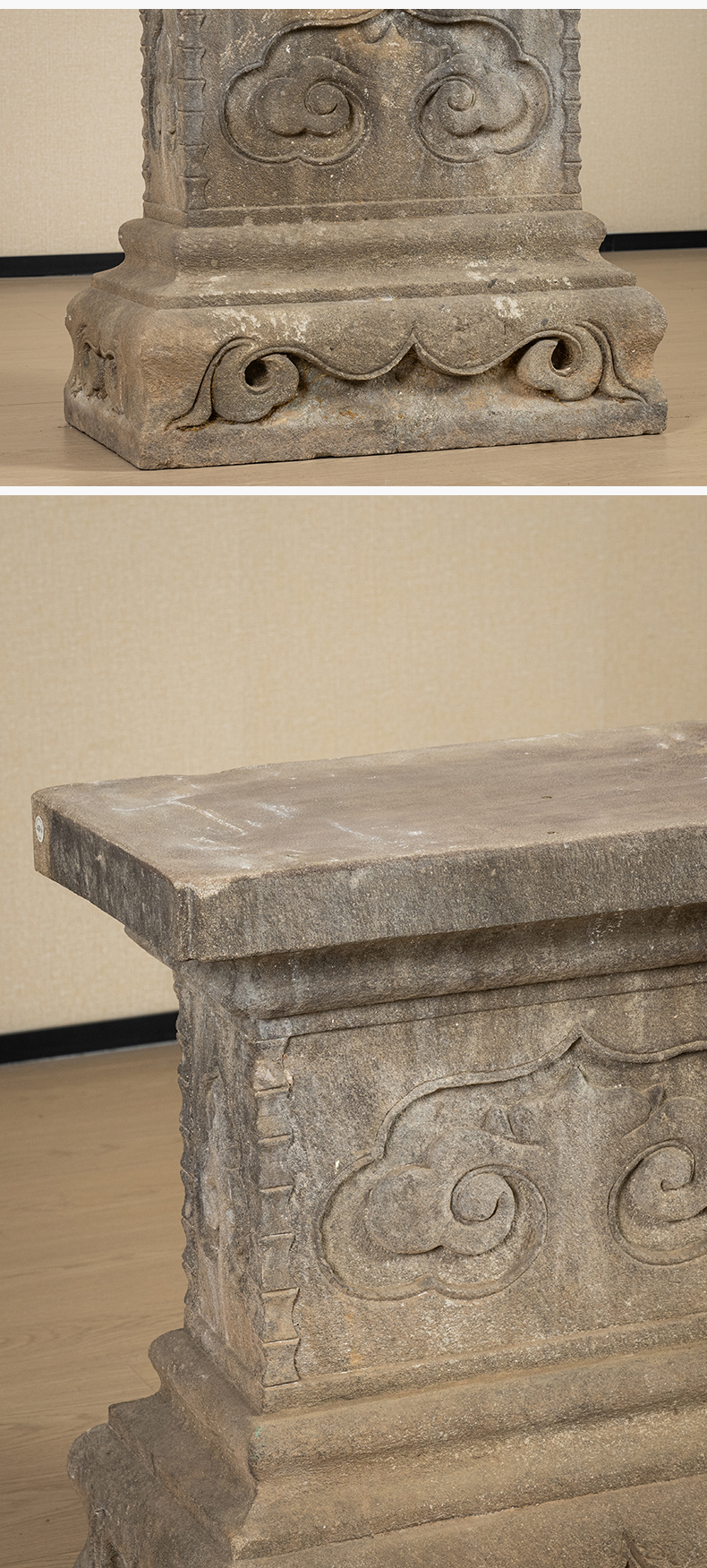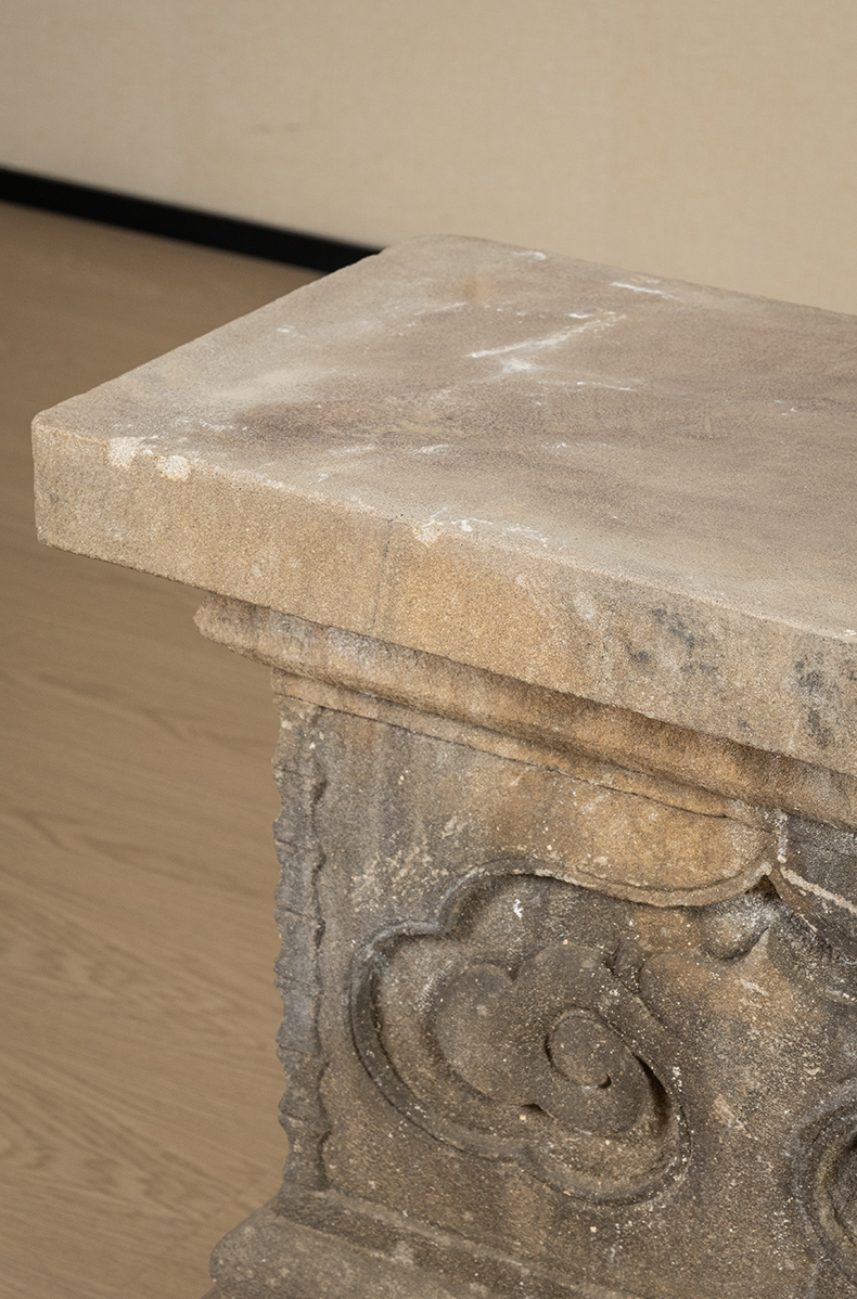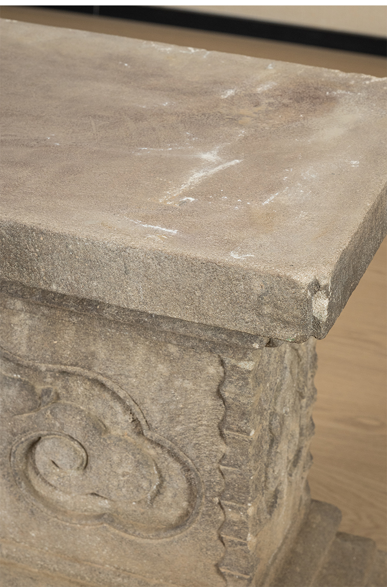 二十世纪 红木嵌云石透雕拐子纹百灵台