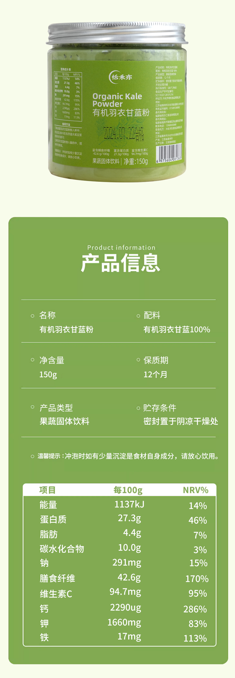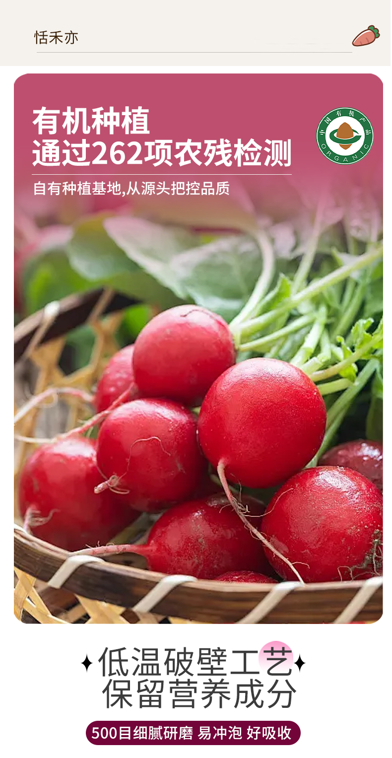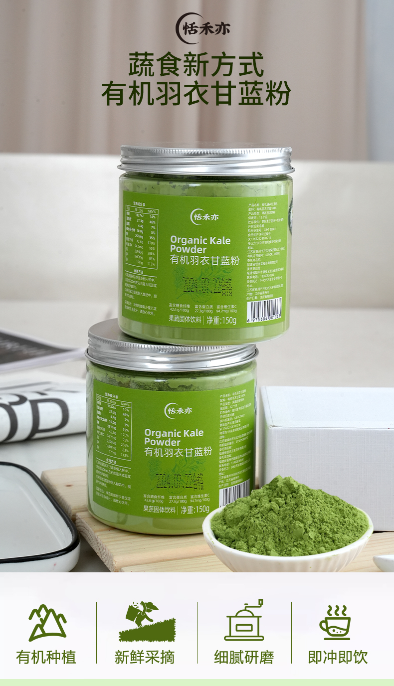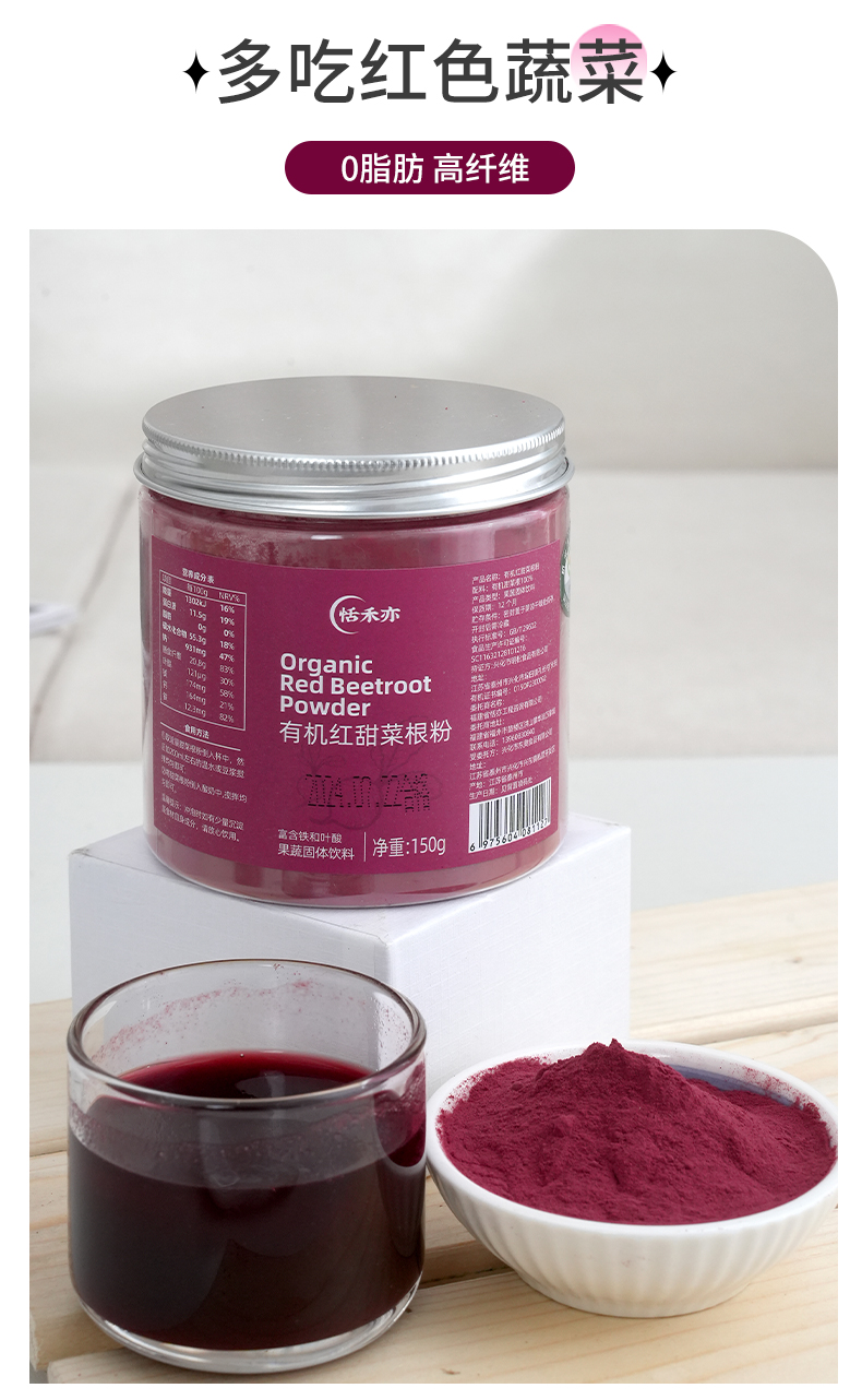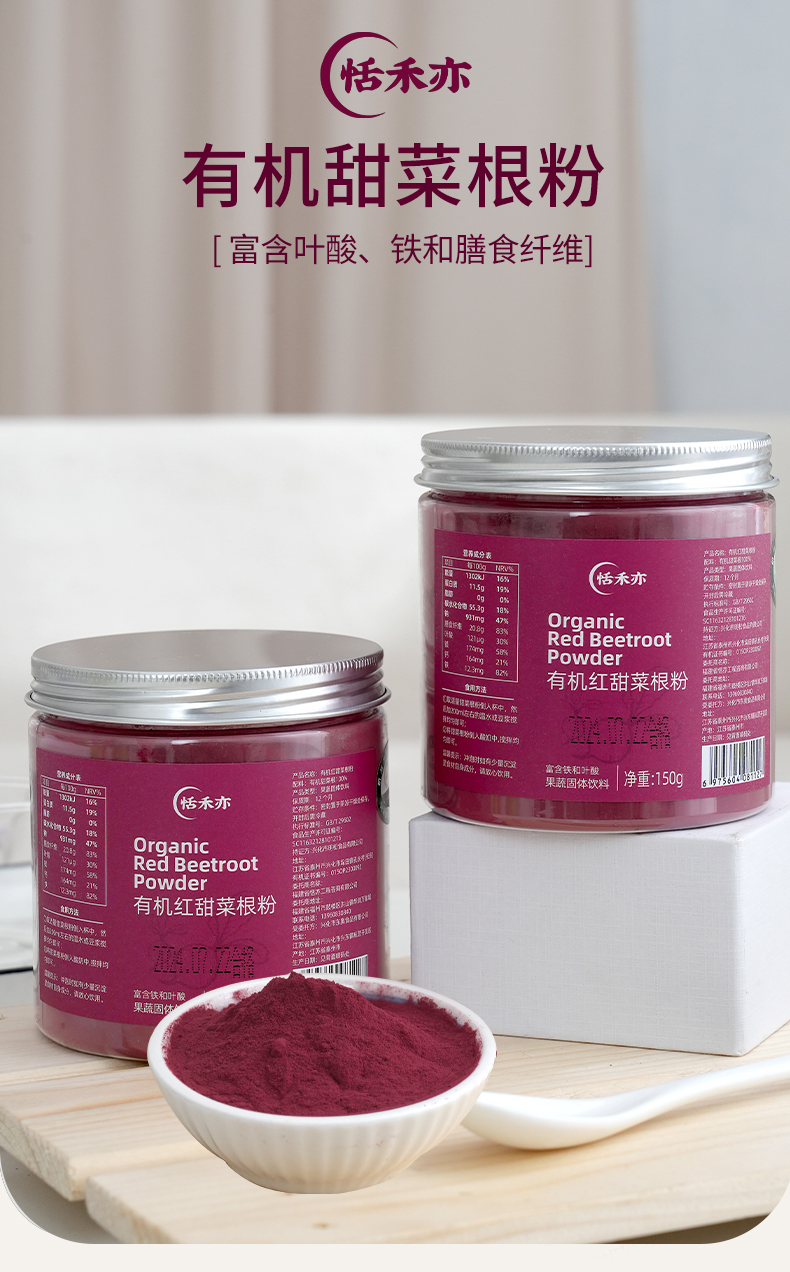 【多罐更优惠】恬禾亦·有机红甜菜根粉&有机羽衣甘蓝粉 植物萃取 补铁补叶酸 150g 小红罐小绿罐