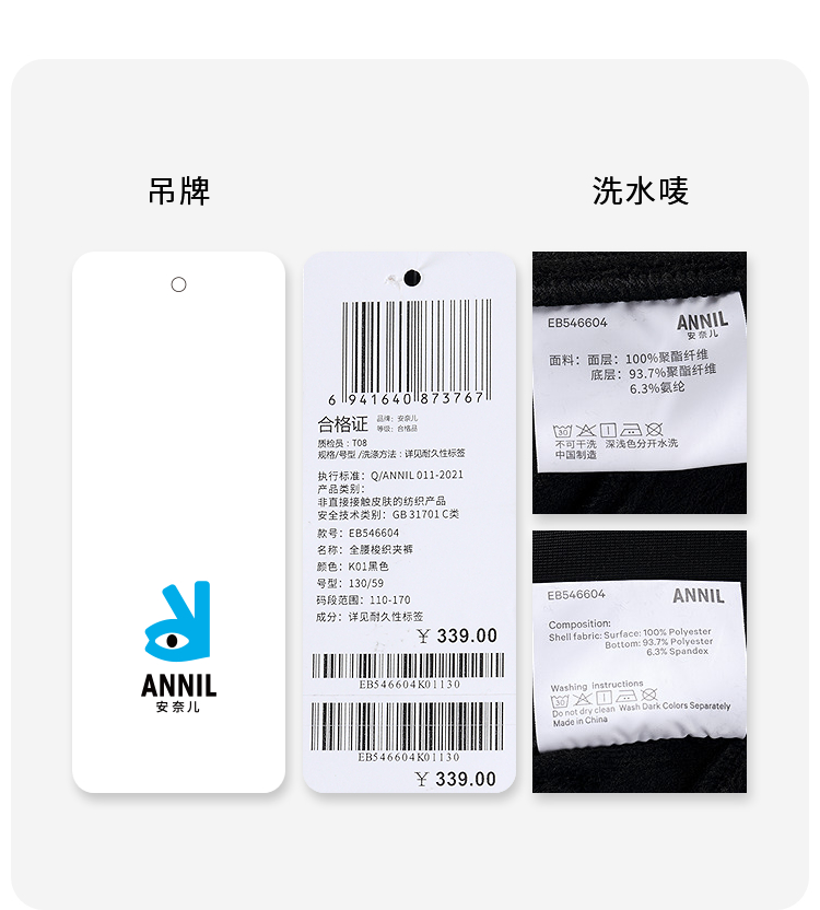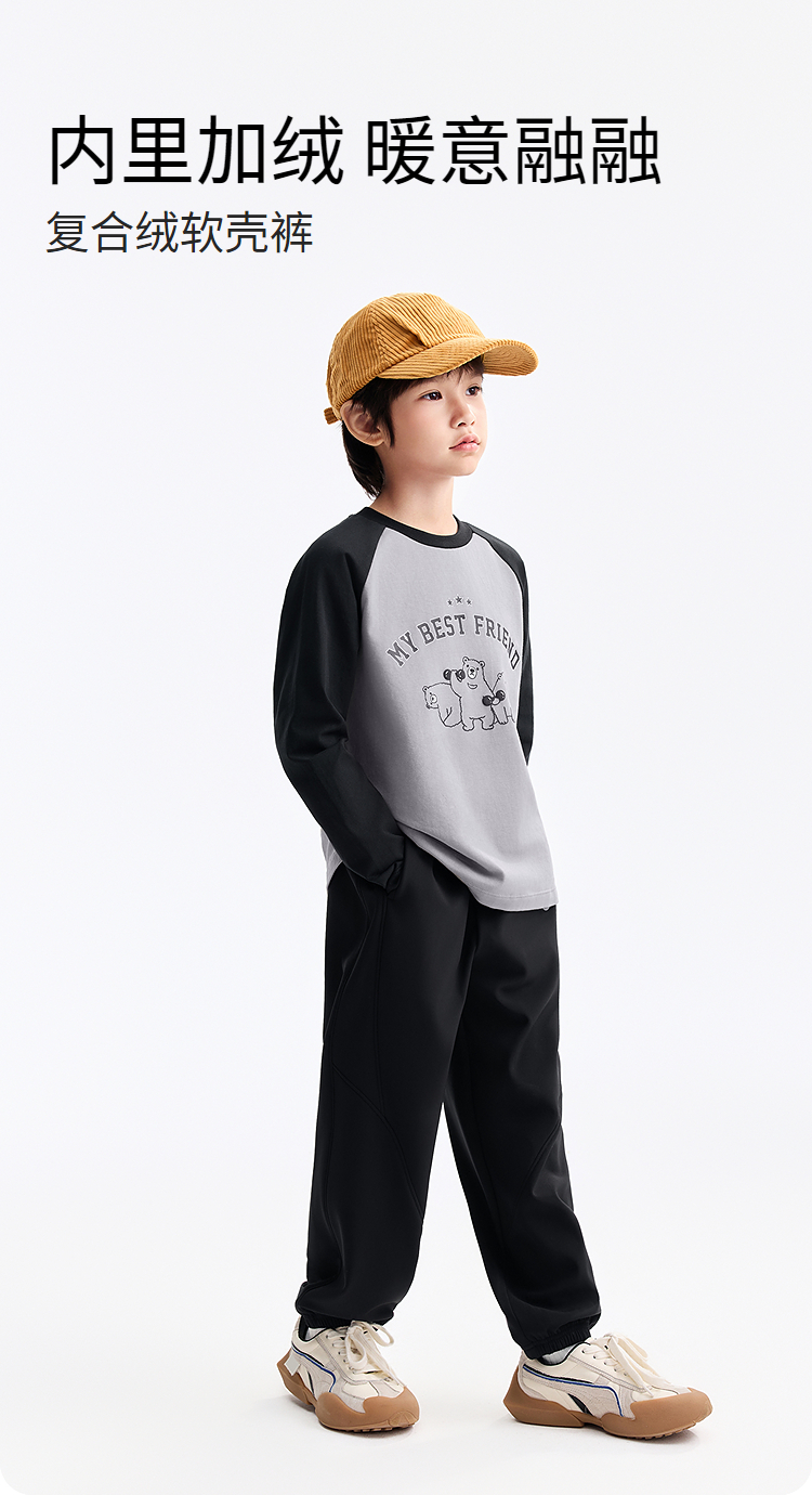 男童全腰梭织夹裤厚裤子冬季新款安奈儿童装EB546604