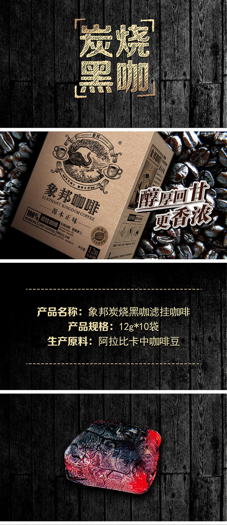 象邦咖啡粉意式浓缩咖啡挂耳炭烧纯咖黑咖香醇浓郁厚回甘充氮保鲜