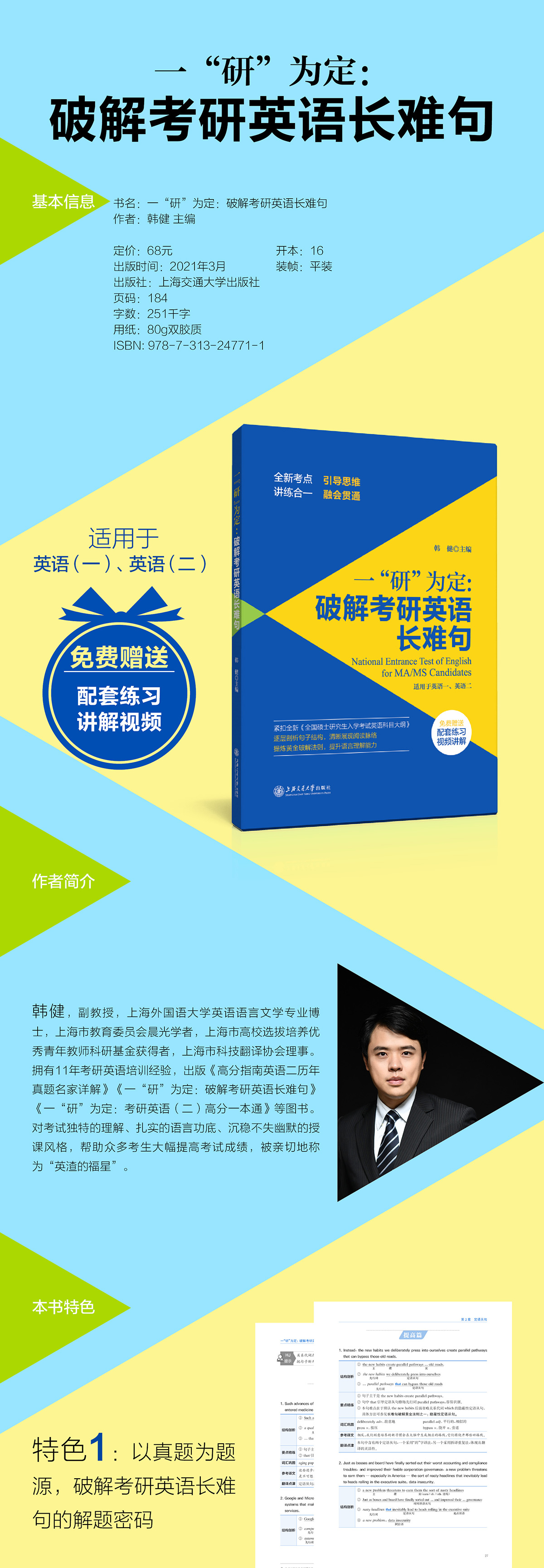 一“研”为定:破解考研英语长难句 9787313247711 考研英语 韩健 主编