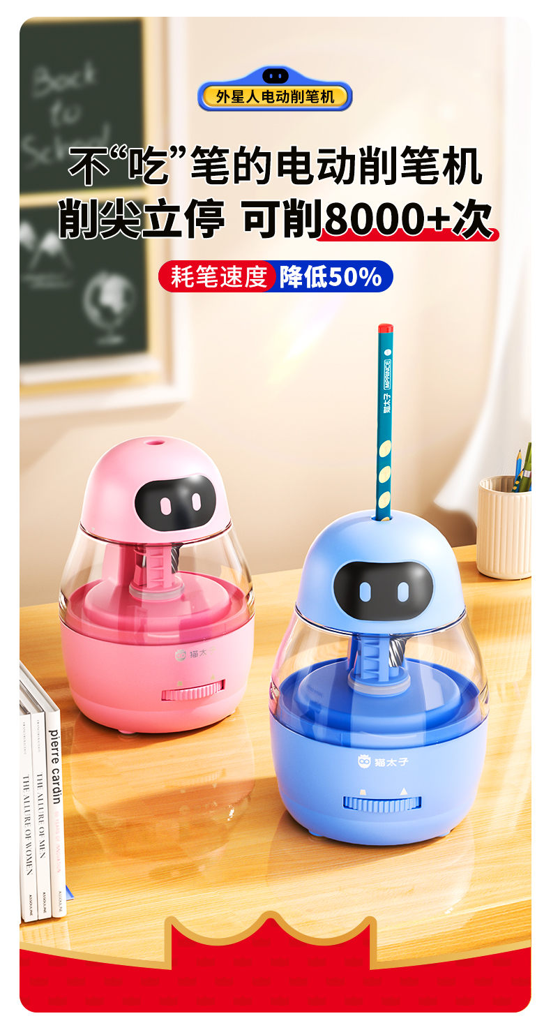 测评优品-猫太子自动卷笔刀 削尖立停 粗细可调 适合多种笔型 电动削笔器 小学生 削铅笔