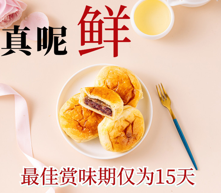 饼馅配料:食用重瓣红玫瑰花、白砂糖、小麦粉、猪油、蜂蜜、食品添加剂:脱氧乙酸钠。