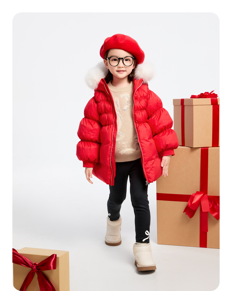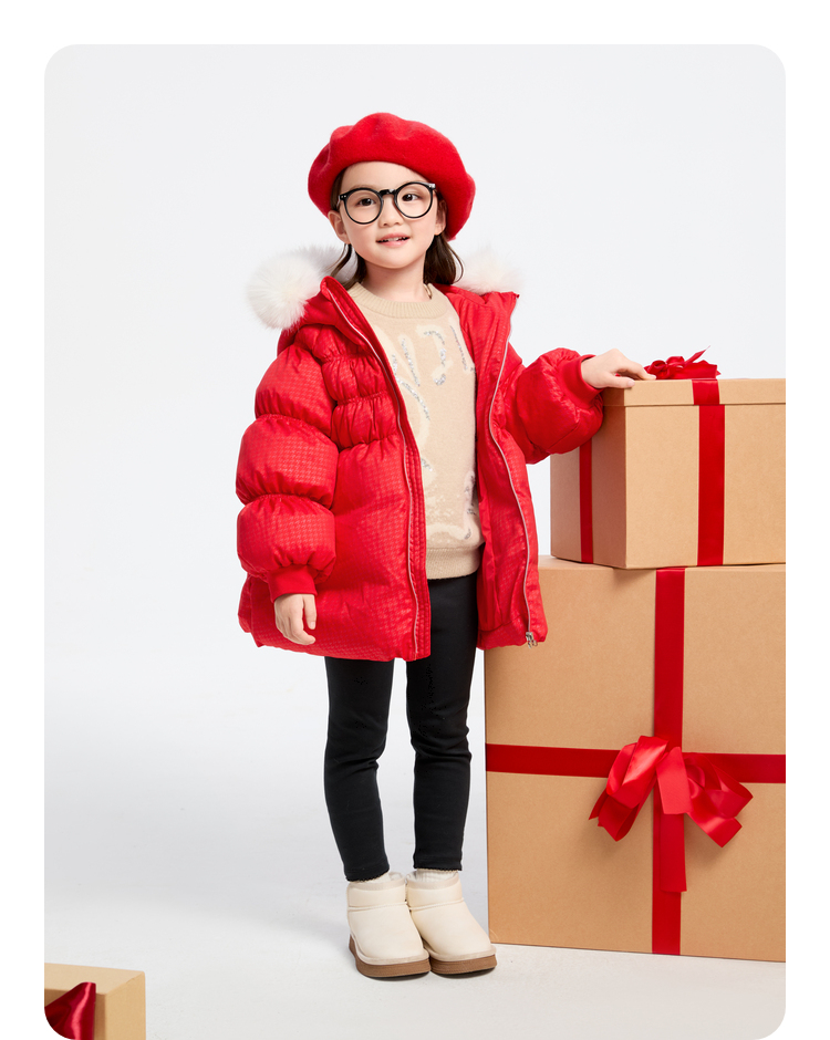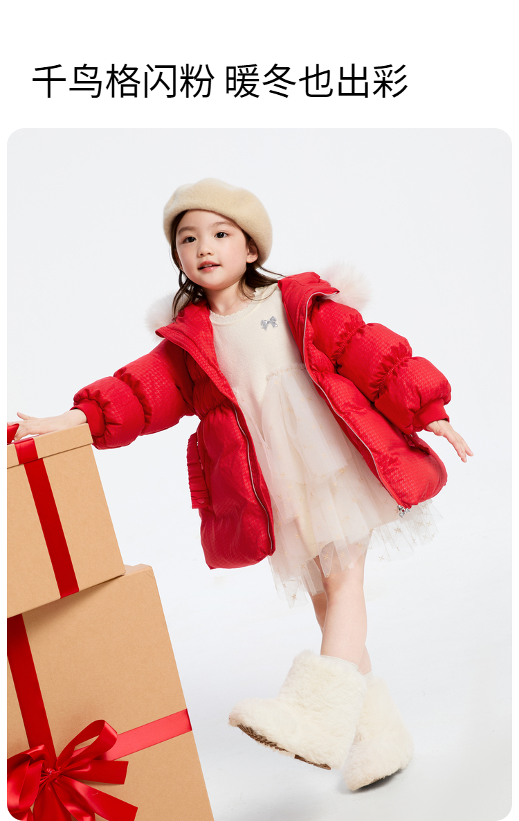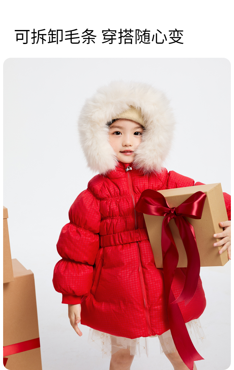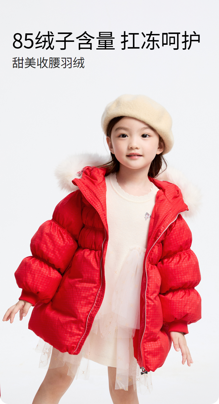【极寒-15~-5℃】女童收腰羽绒外套虫长款外套冬季新款安奈儿童装实体店同款XG445761