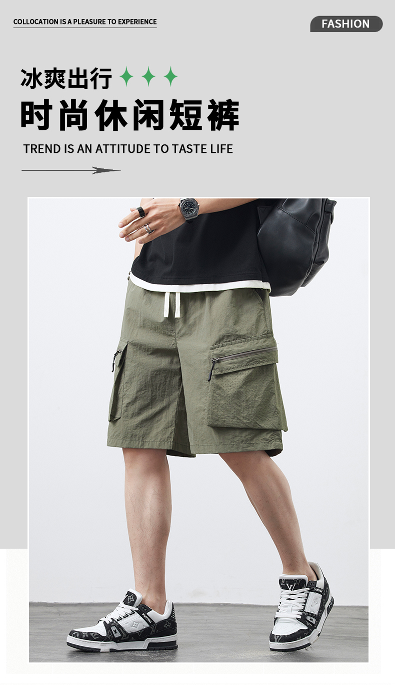 【Q】【新款DYF】大依优型大码工装五分裤大号裤子弹力透气加肥加大夏季松紧腰宽松运动短裤沙滩裤