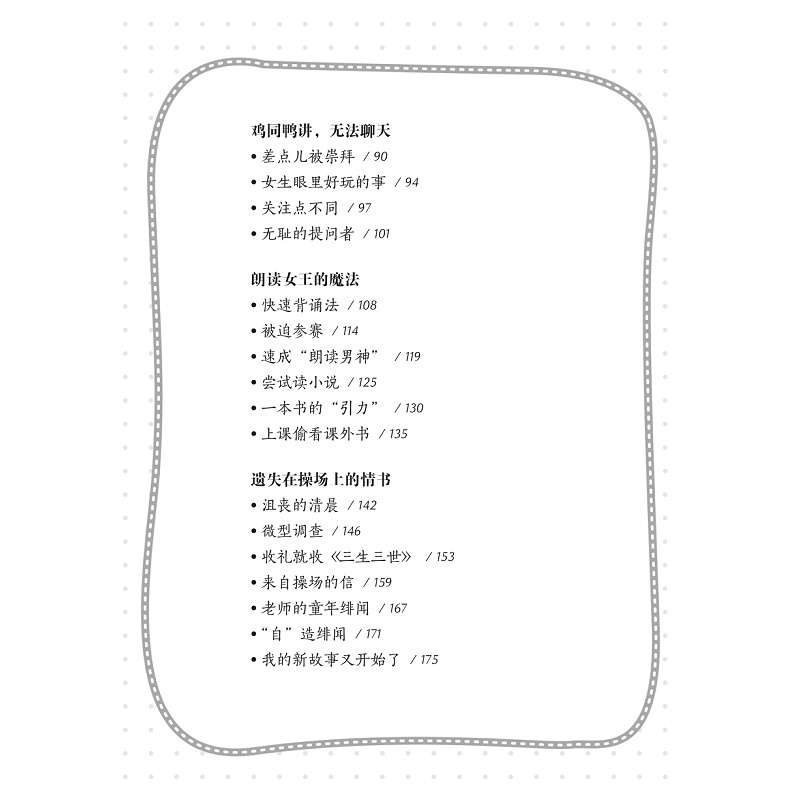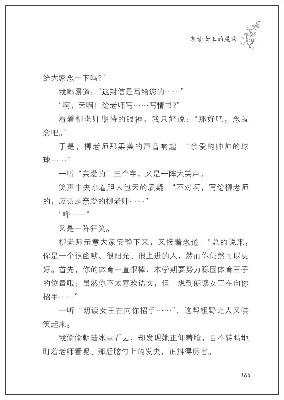 《朗读女王的魔法》:告诉你一个惊天大绯闻:天不怕地不怕的体育王子林球球,有了很在意的人啦!为了这个人,他可以热情高涨地背诵以前最讨厌的课文,可以积极参加以前最不屑的朗读比赛……总之,上刀山下火海在所不辞。到底是谁有这么强大的魔法,竟然可以改变林球球?