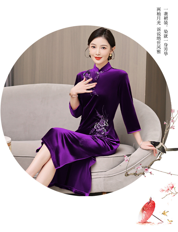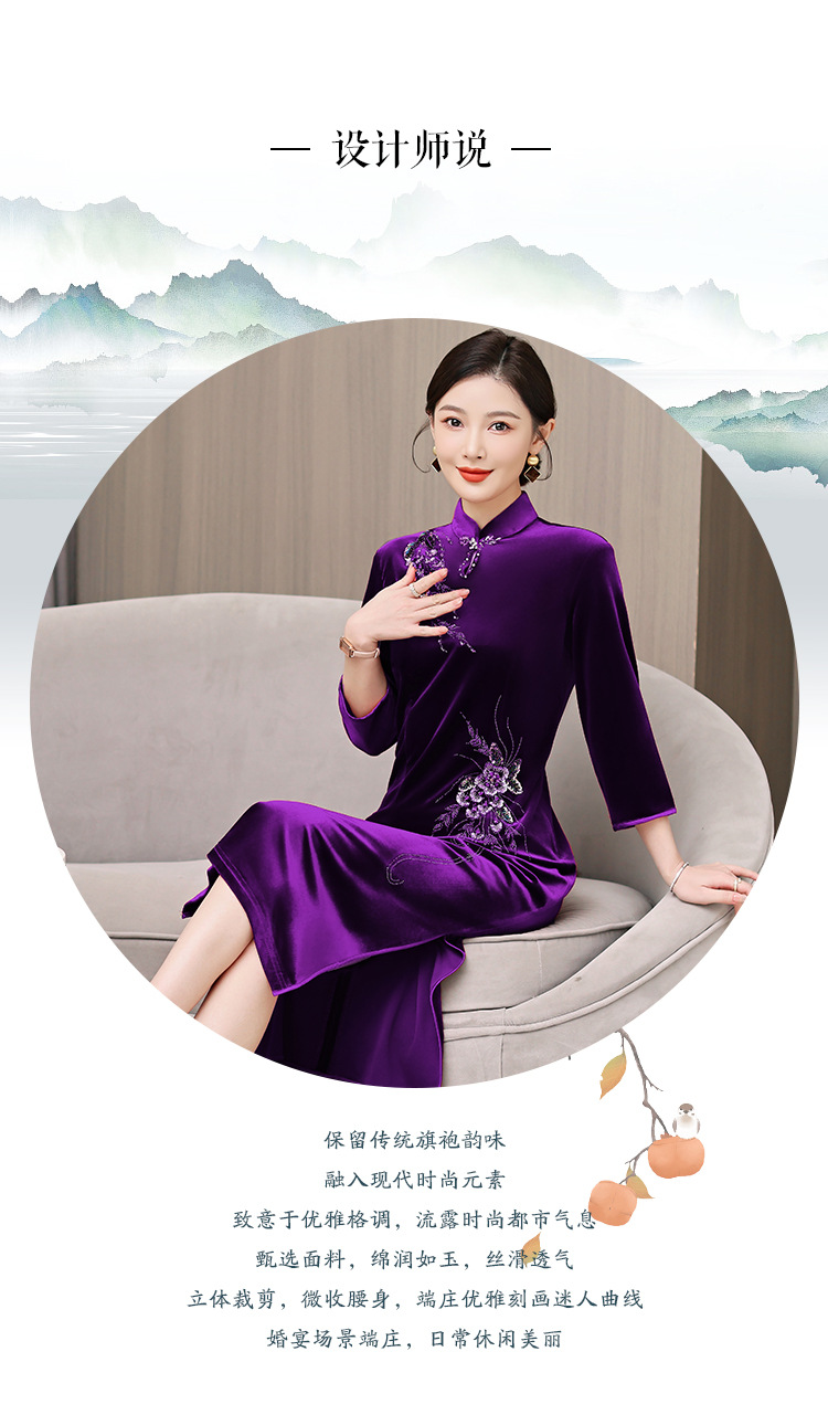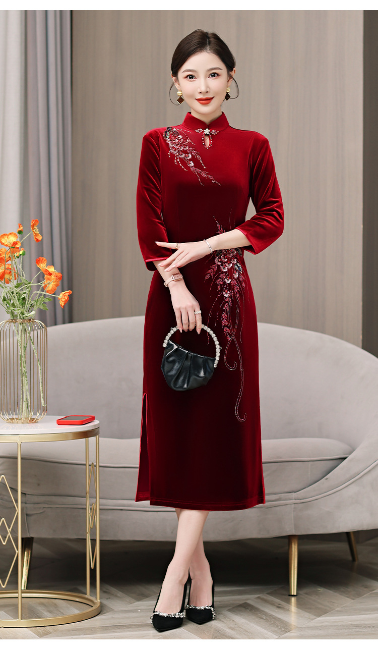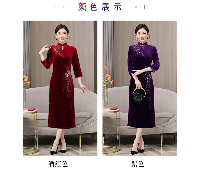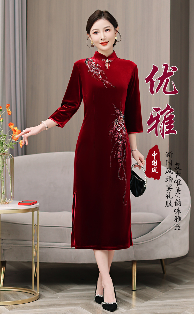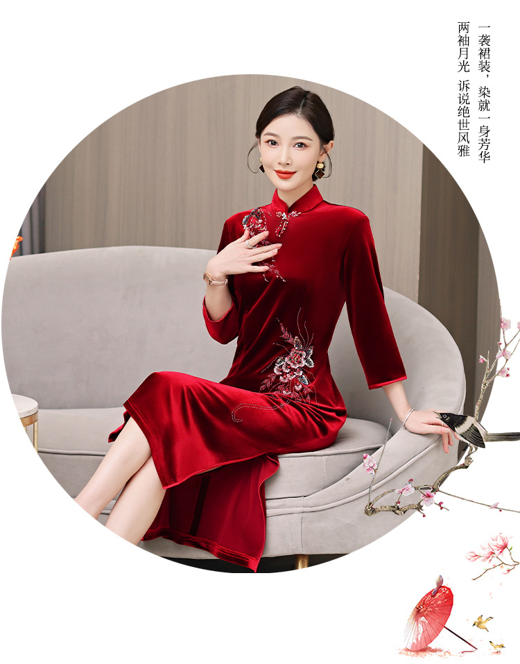 AHM yqwl5652新国风礼服裙气质优雅丝绒连衣裙