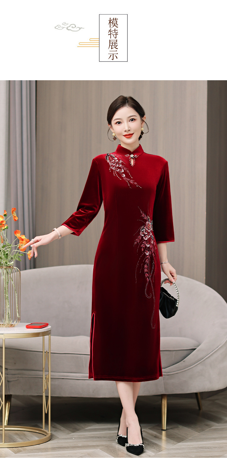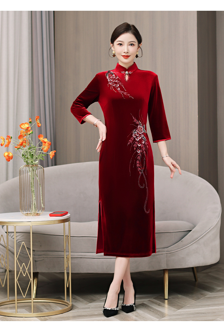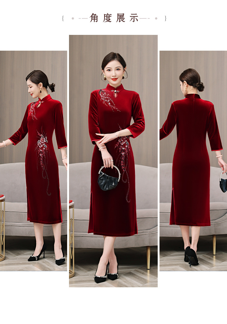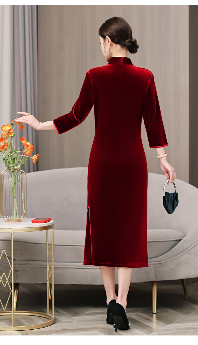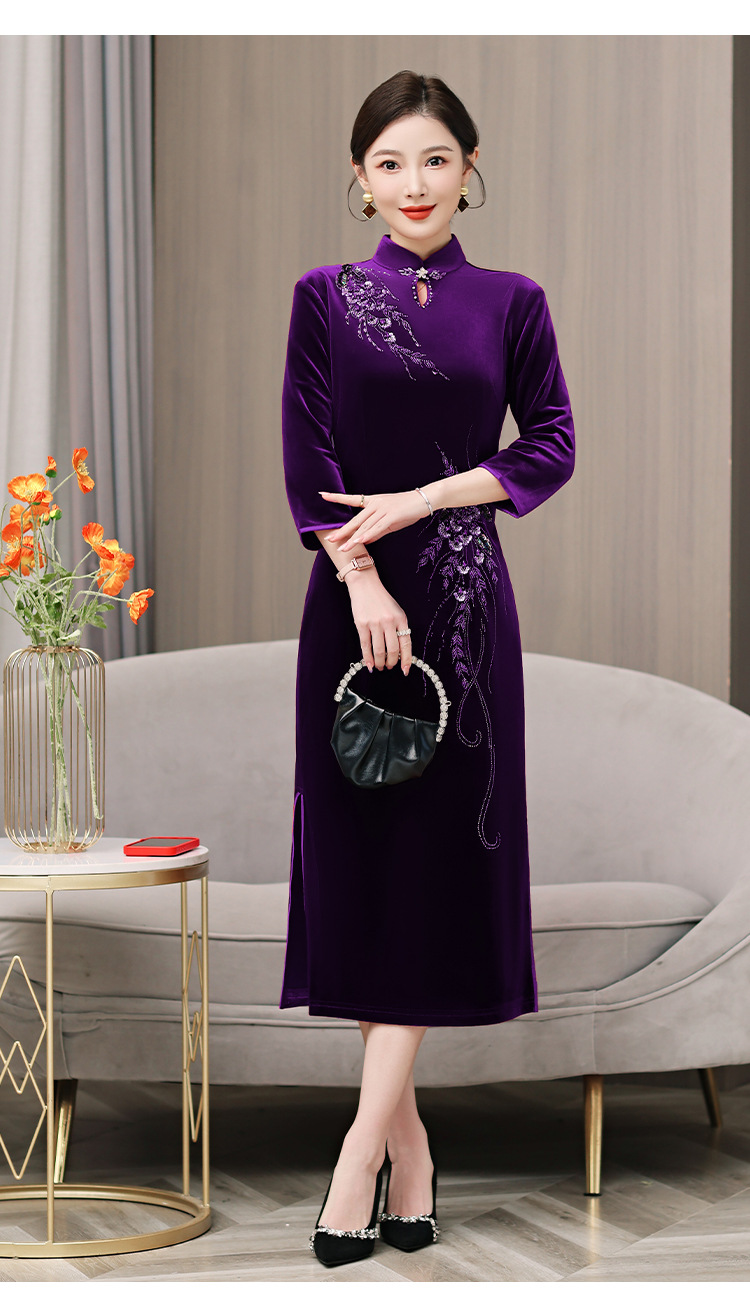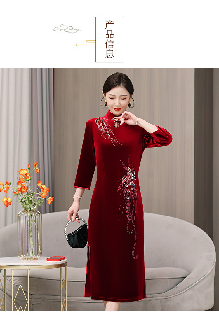 AHM yqwl5652新国风礼服裙气质优雅丝绒连衣裙