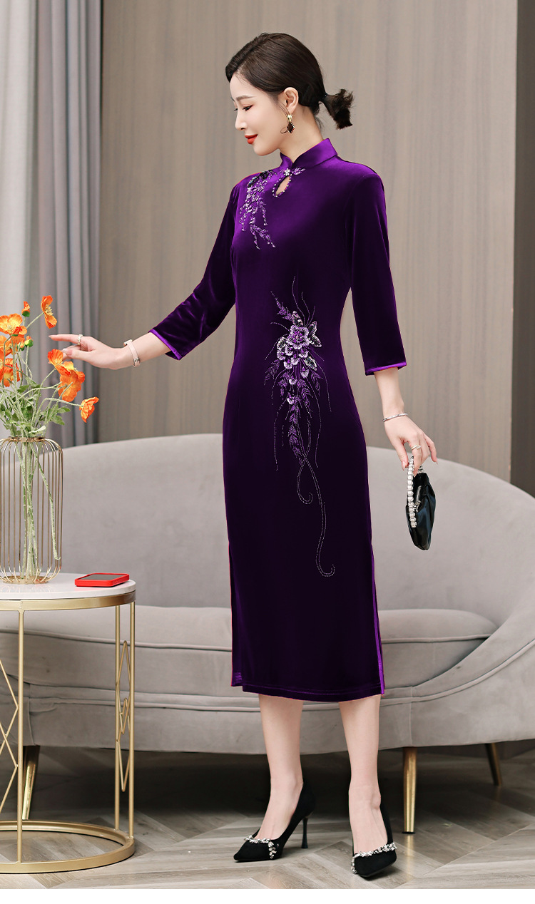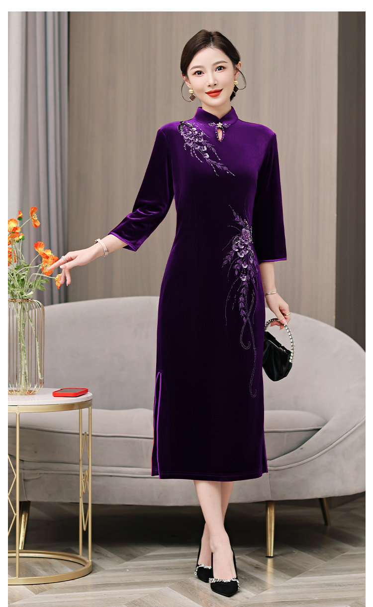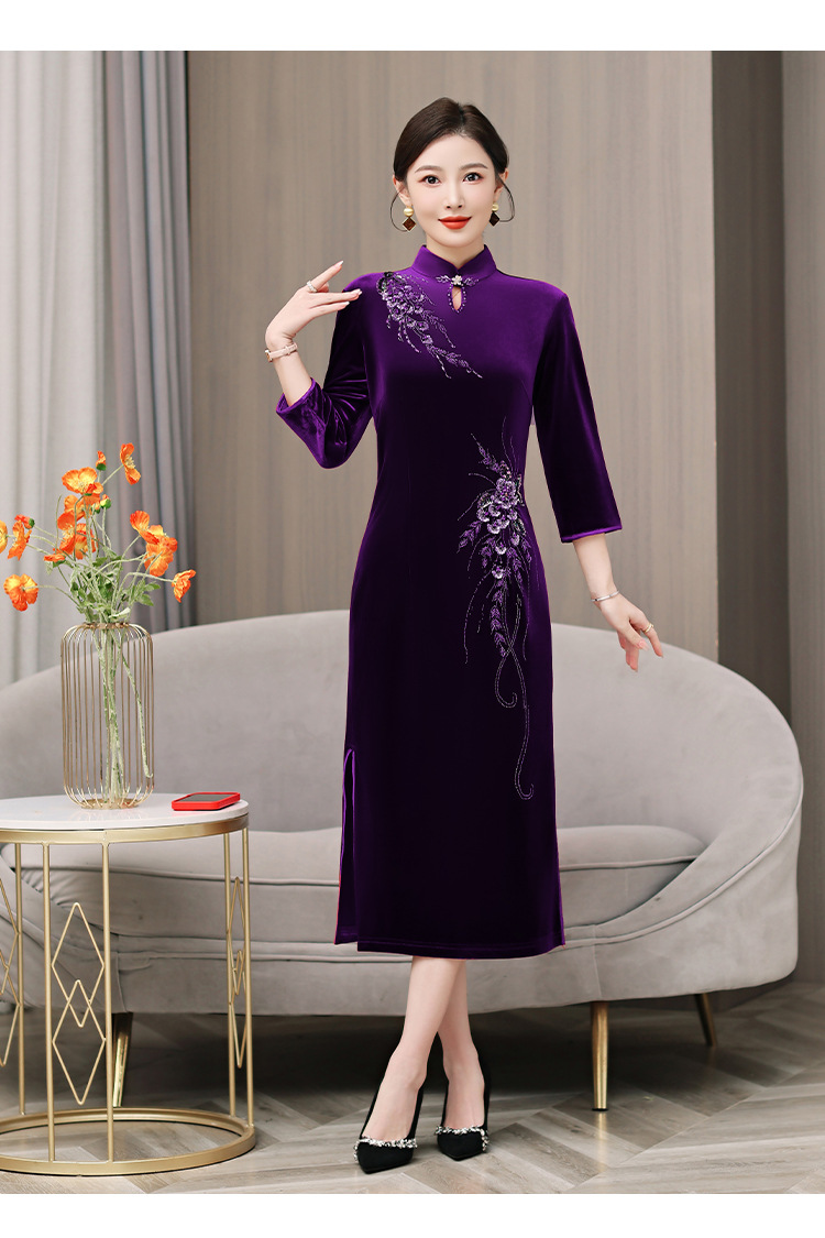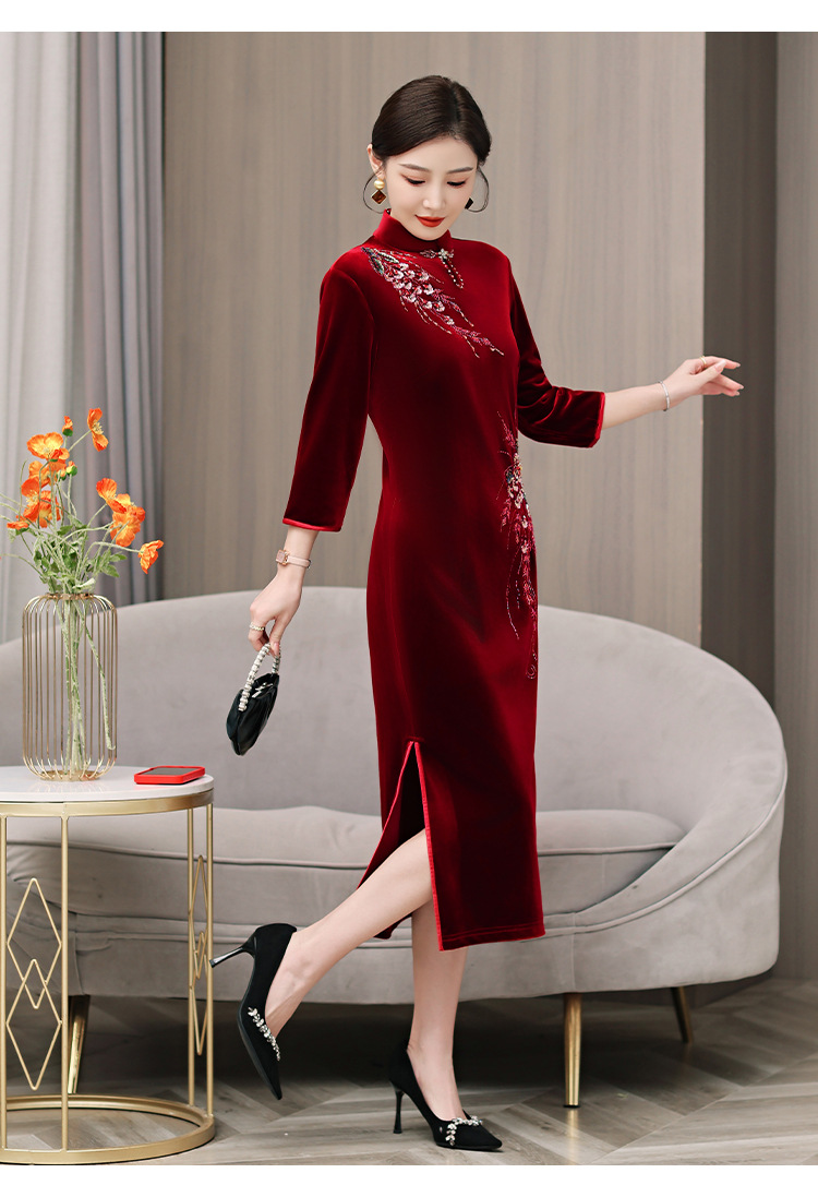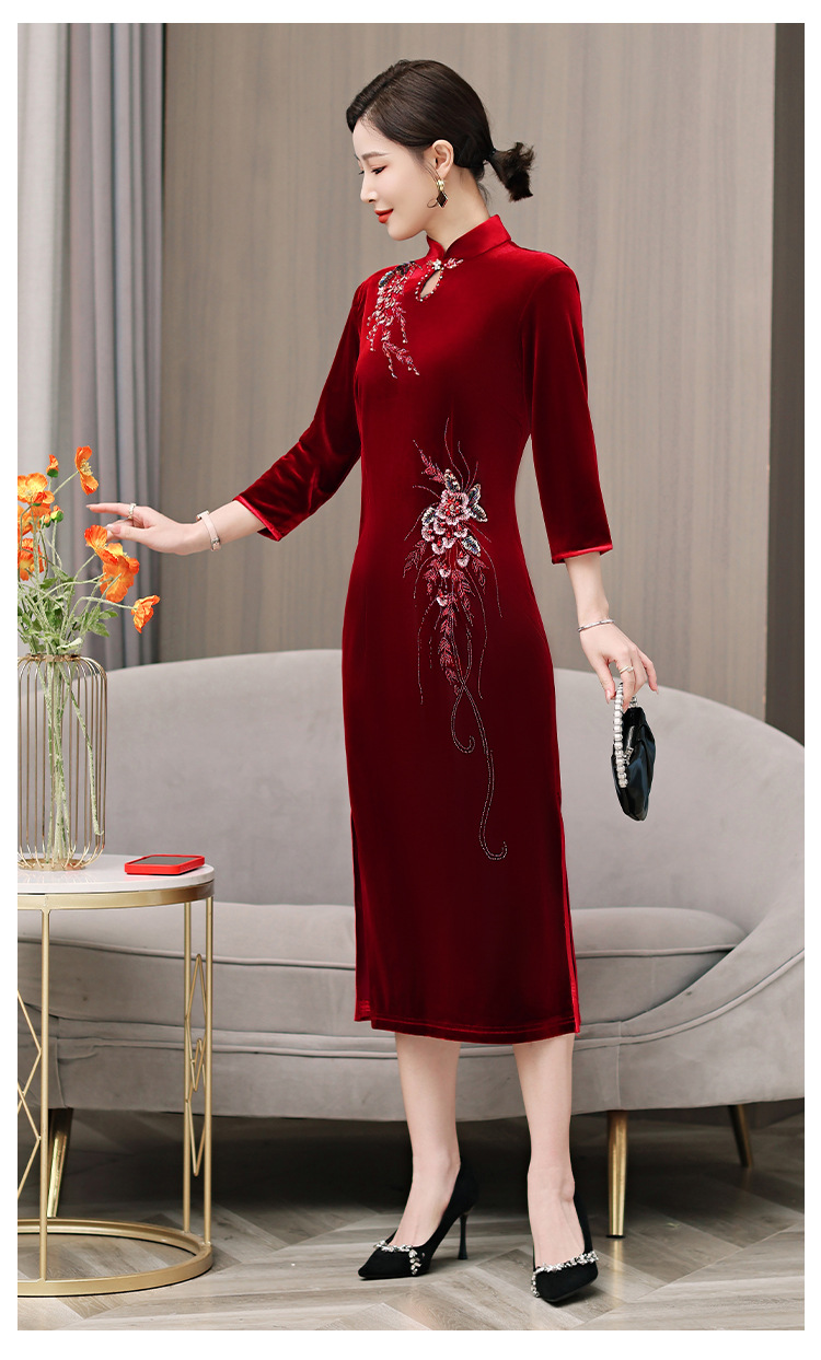 AHM yqwl5652新国风礼服裙气质优雅丝绒连衣裙