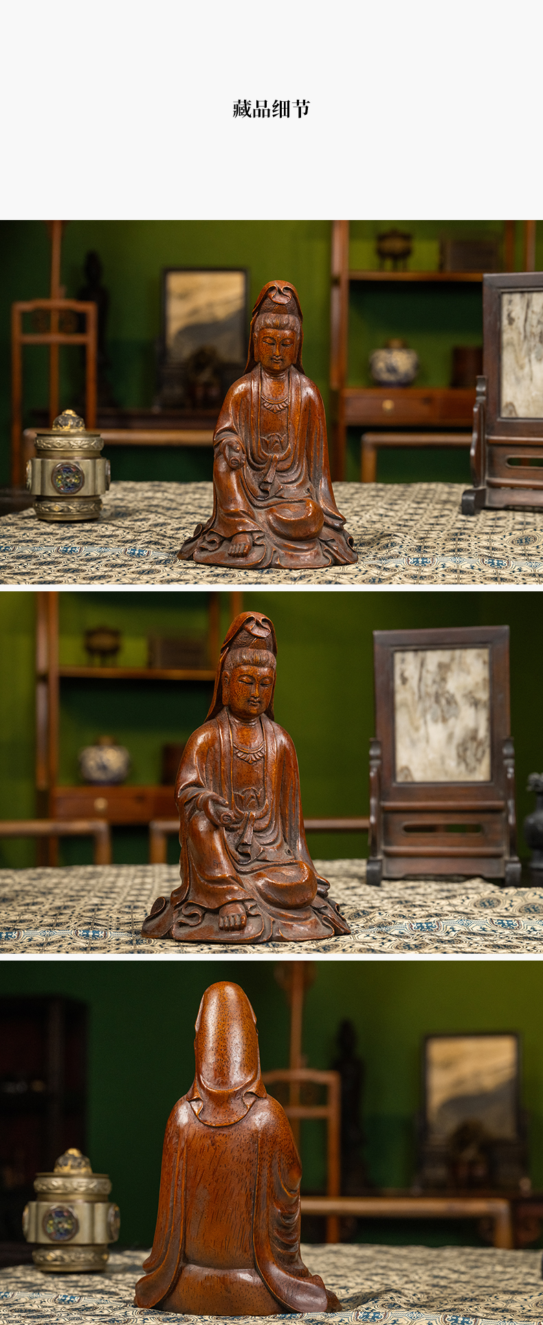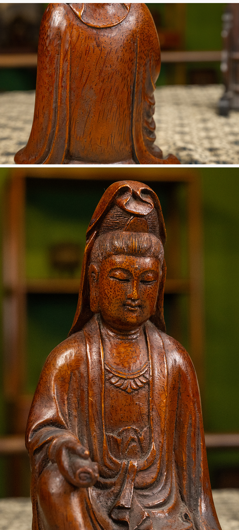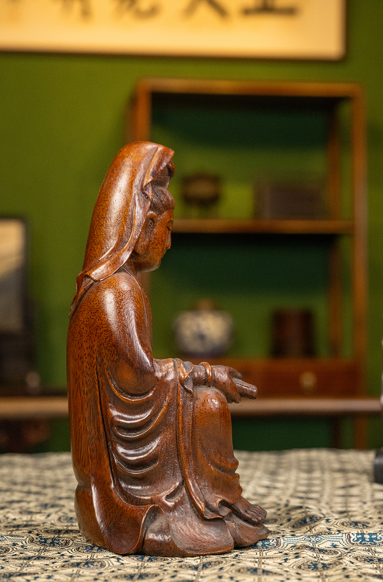 清 竹雕持卷观音像