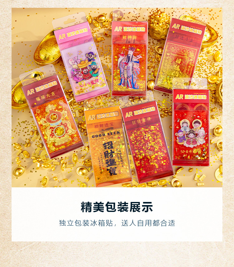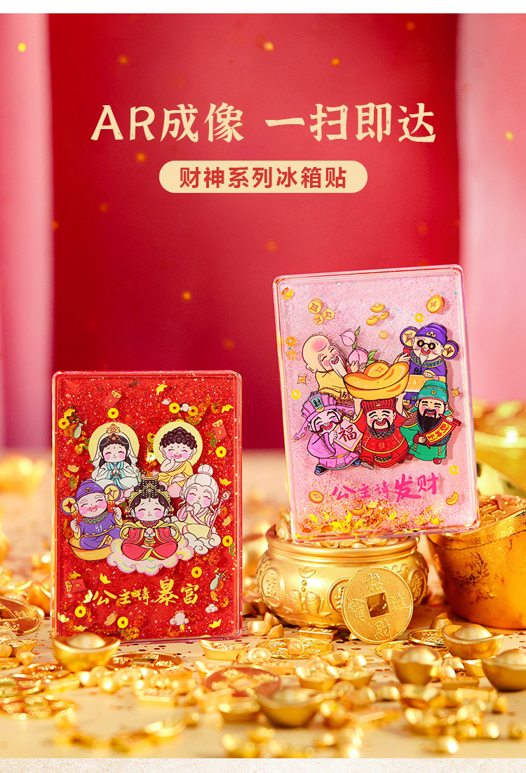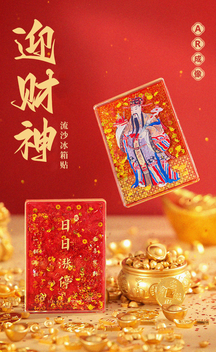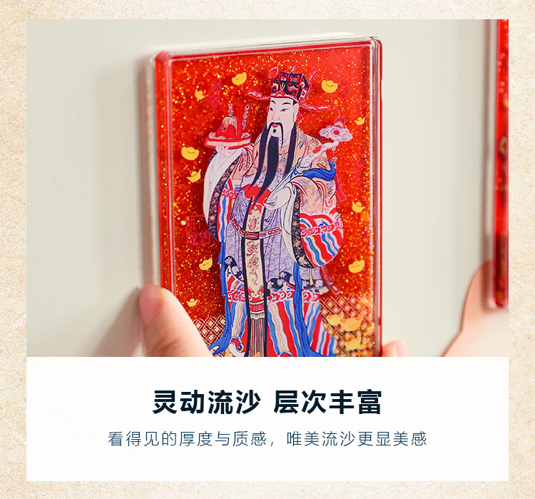 【中国风五路财神冰箱贴】木质立体AR流沙喜庆创意装饰磁贴冰箱贴