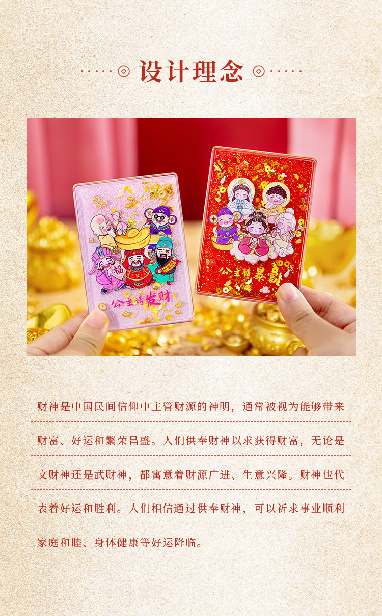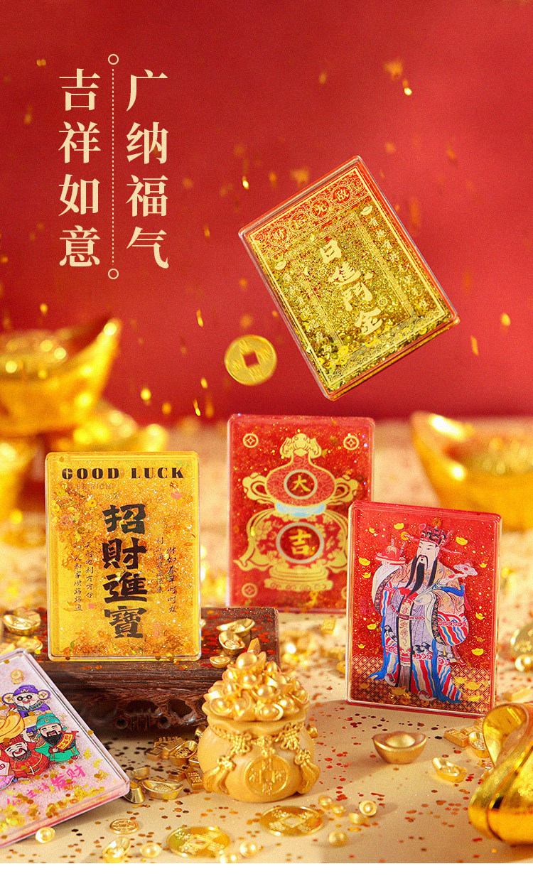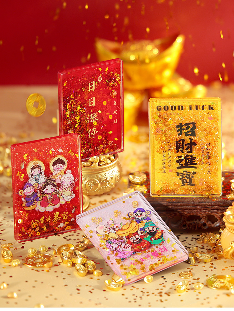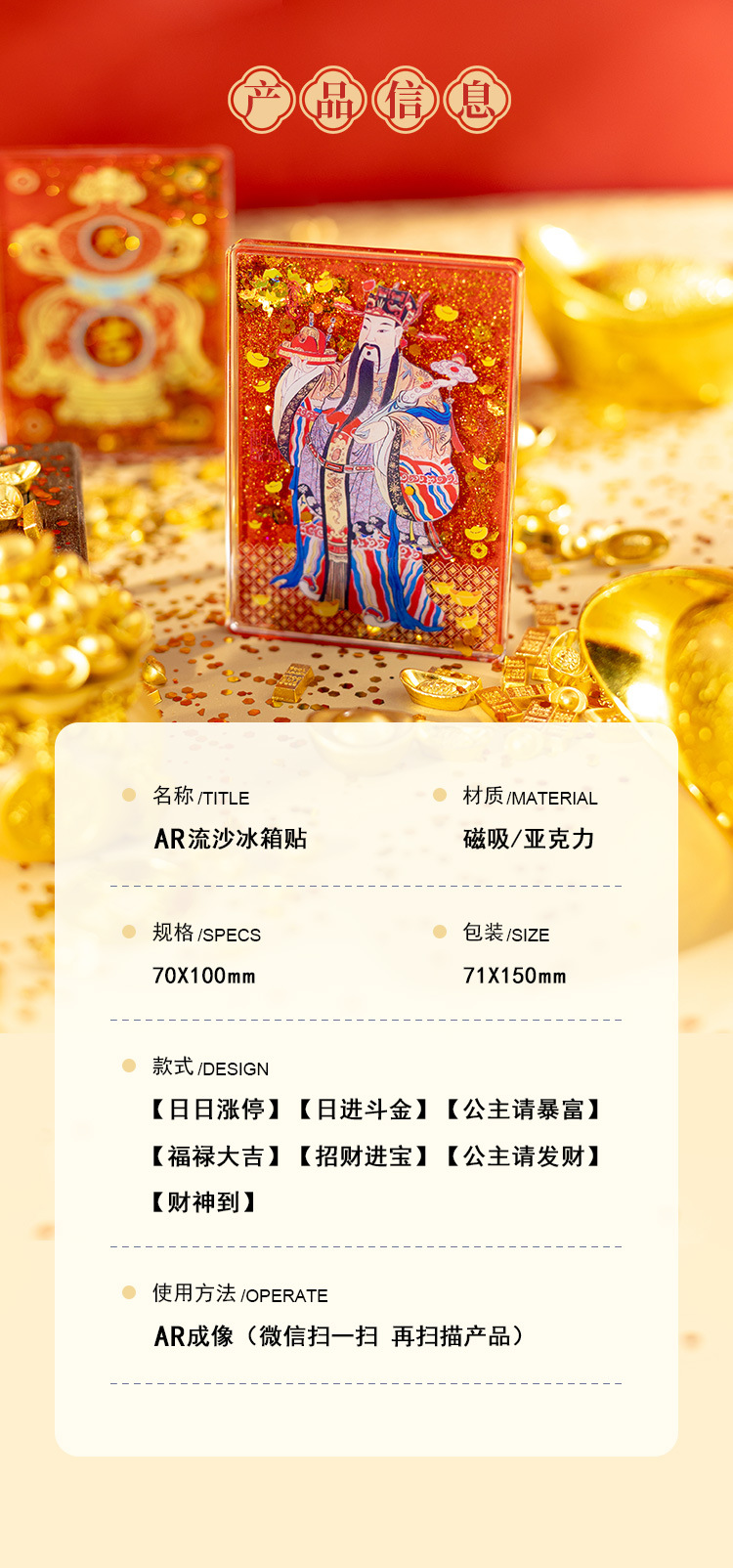 【中国风五路财神冰箱贴】木质立体AR流沙喜庆创意装饰磁贴冰箱贴