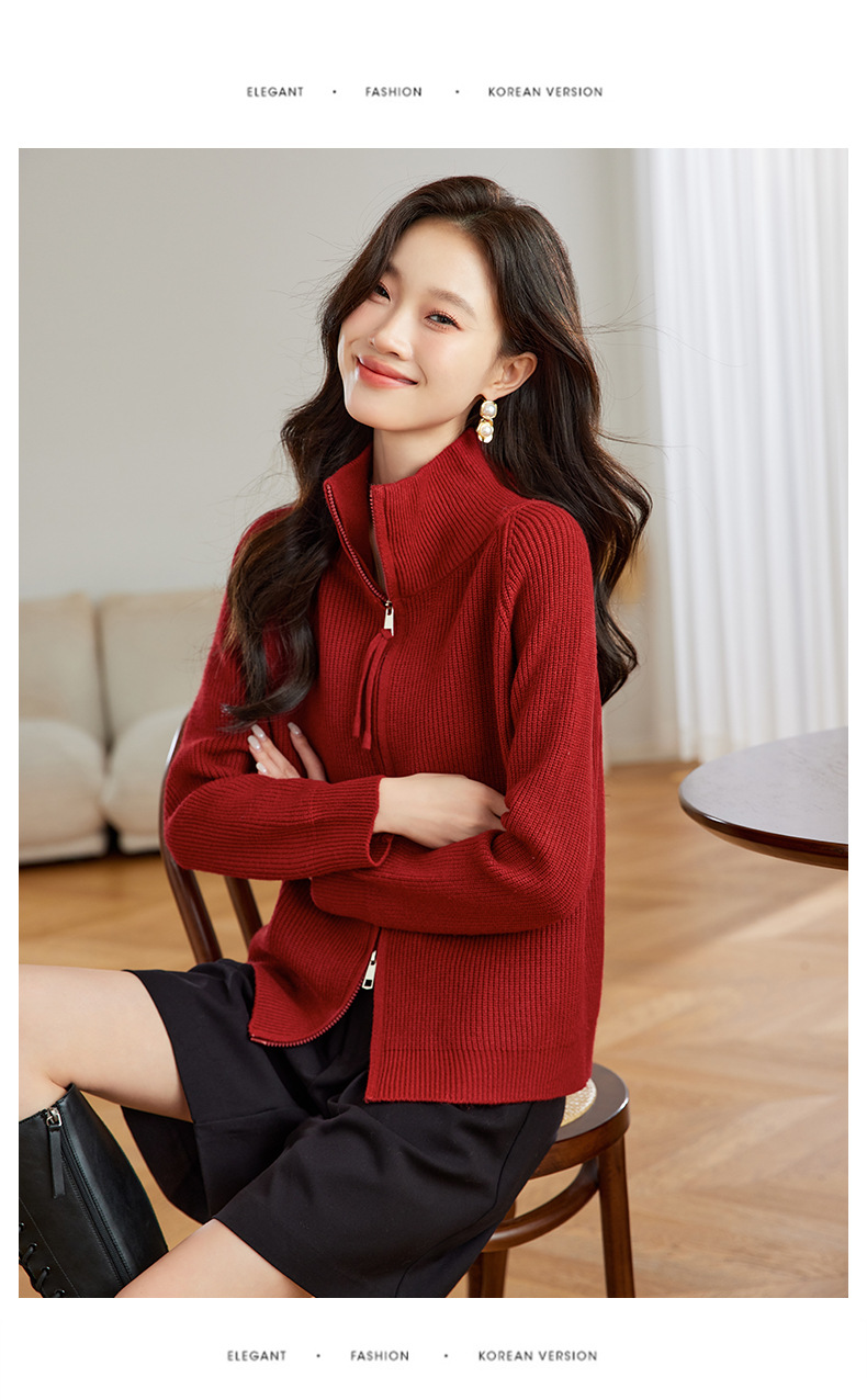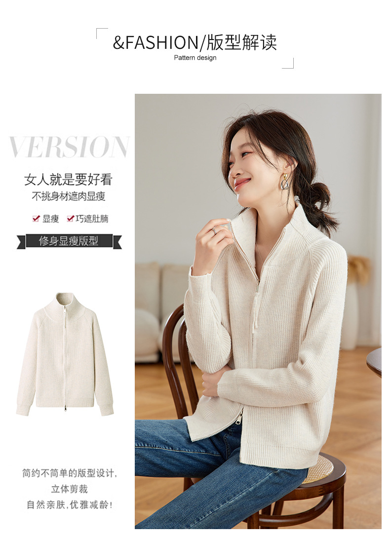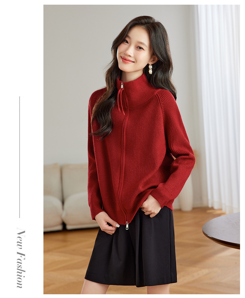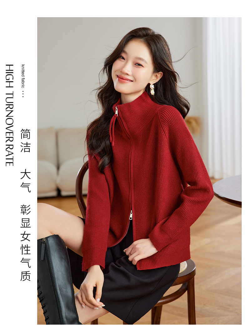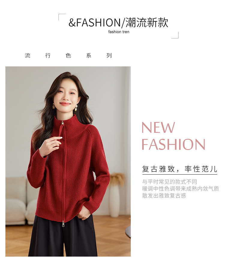 CC-JDS-8905秋冬毛衣外套女2024厚款小个子宽松慵懒风拉链针织开衫上衣女外穿