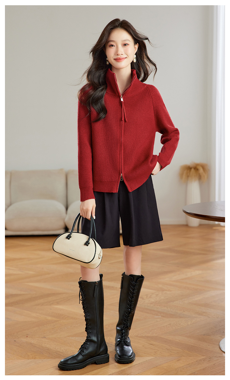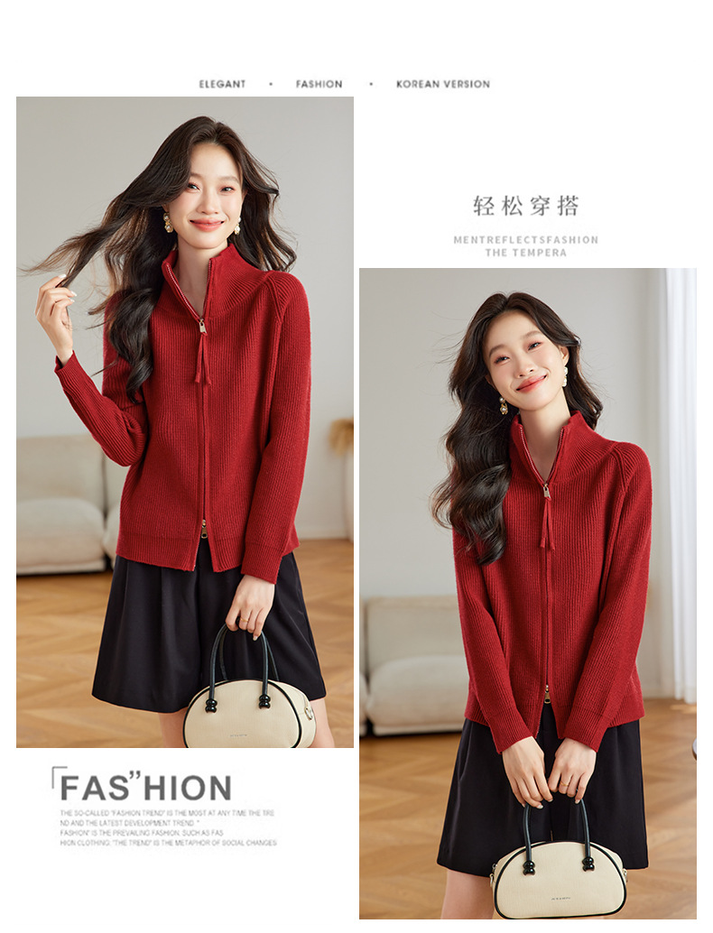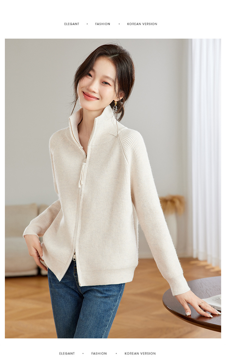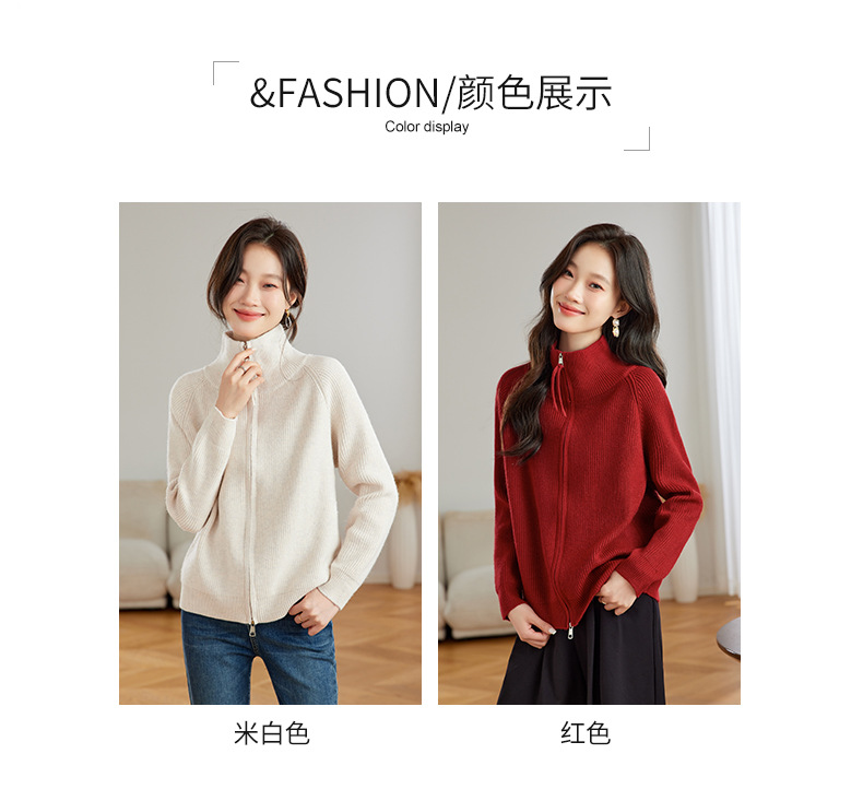 CC-JDS-8905秋冬毛衣外套女2024厚款小个子宽松慵懒风拉链针织开衫上衣女外穿