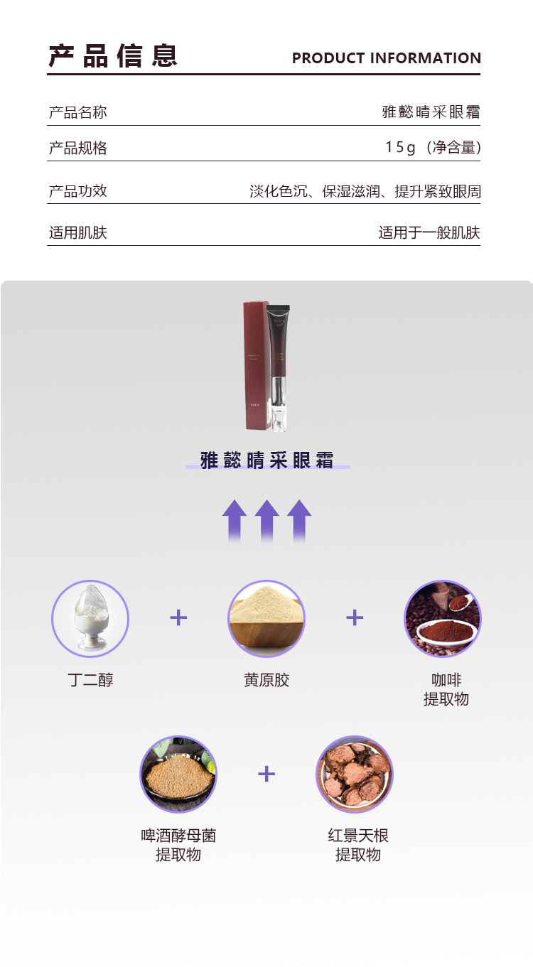 雅懿睛采眼霜15g焕发光彩隐祛黑眼圈抚淡细纹正品美容院直发