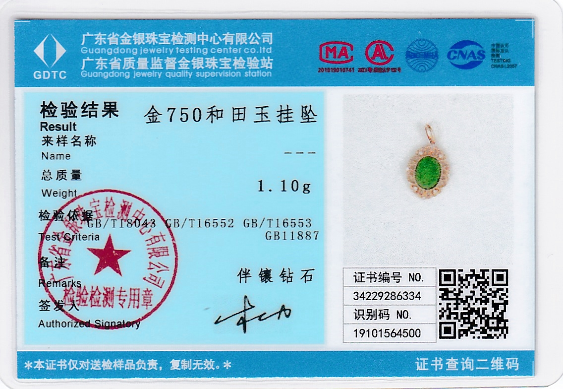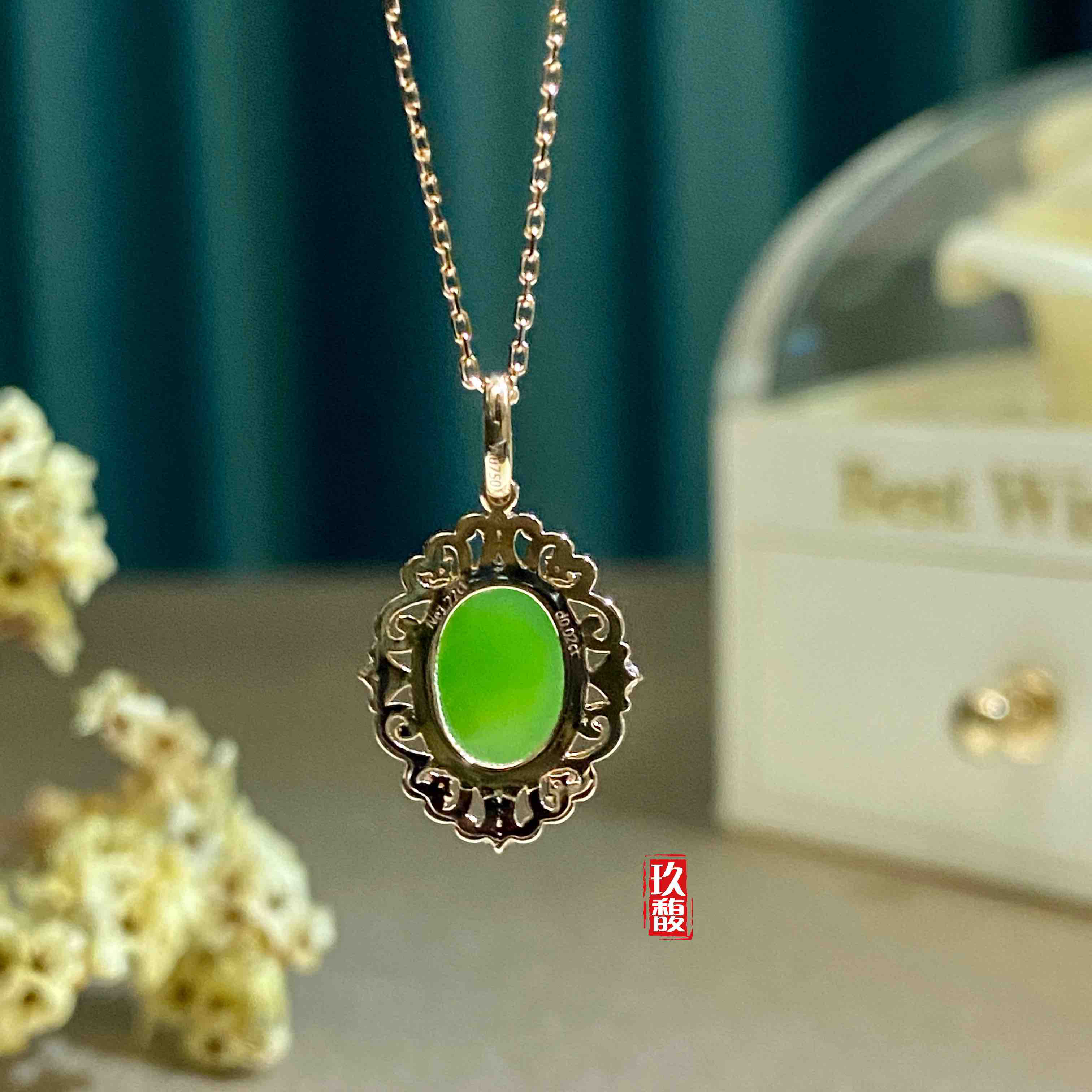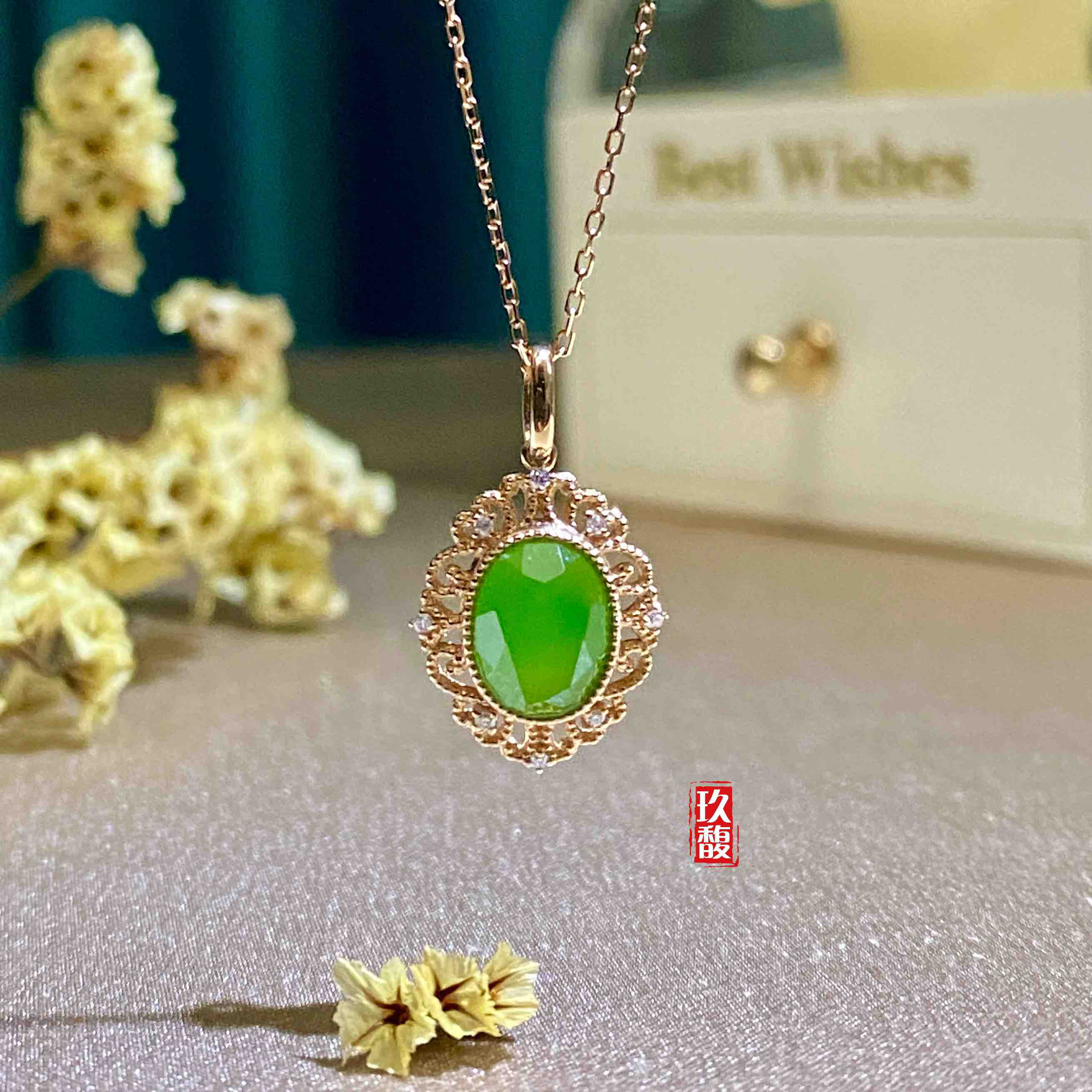 18K玫瑰金和田玉(碧玉)吊坠