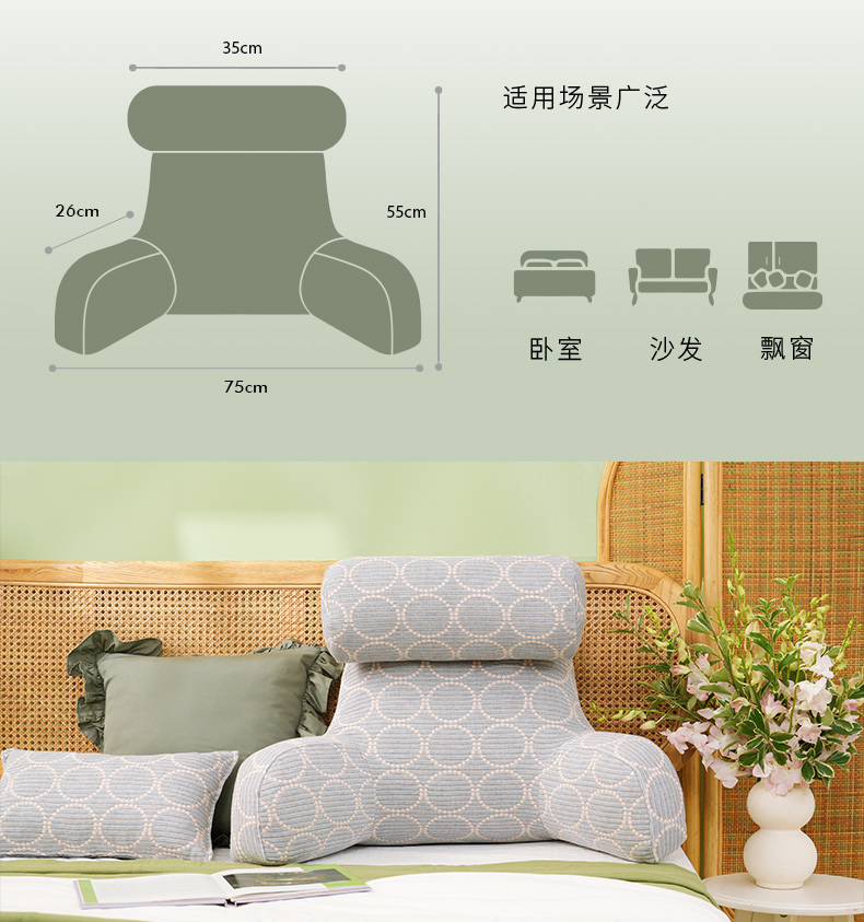 皆川名系列护颈腰靠软包大靠背卧室榻榻米护腰沙发飘窗护颈枕可拆洗