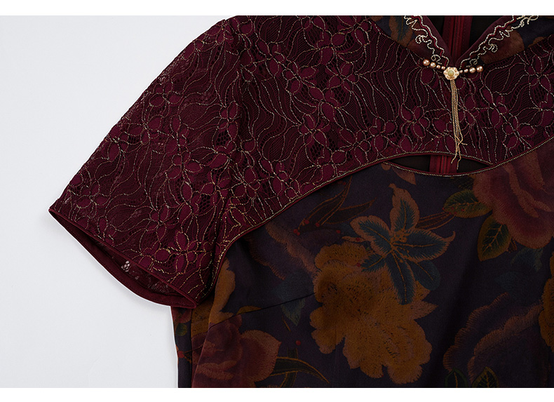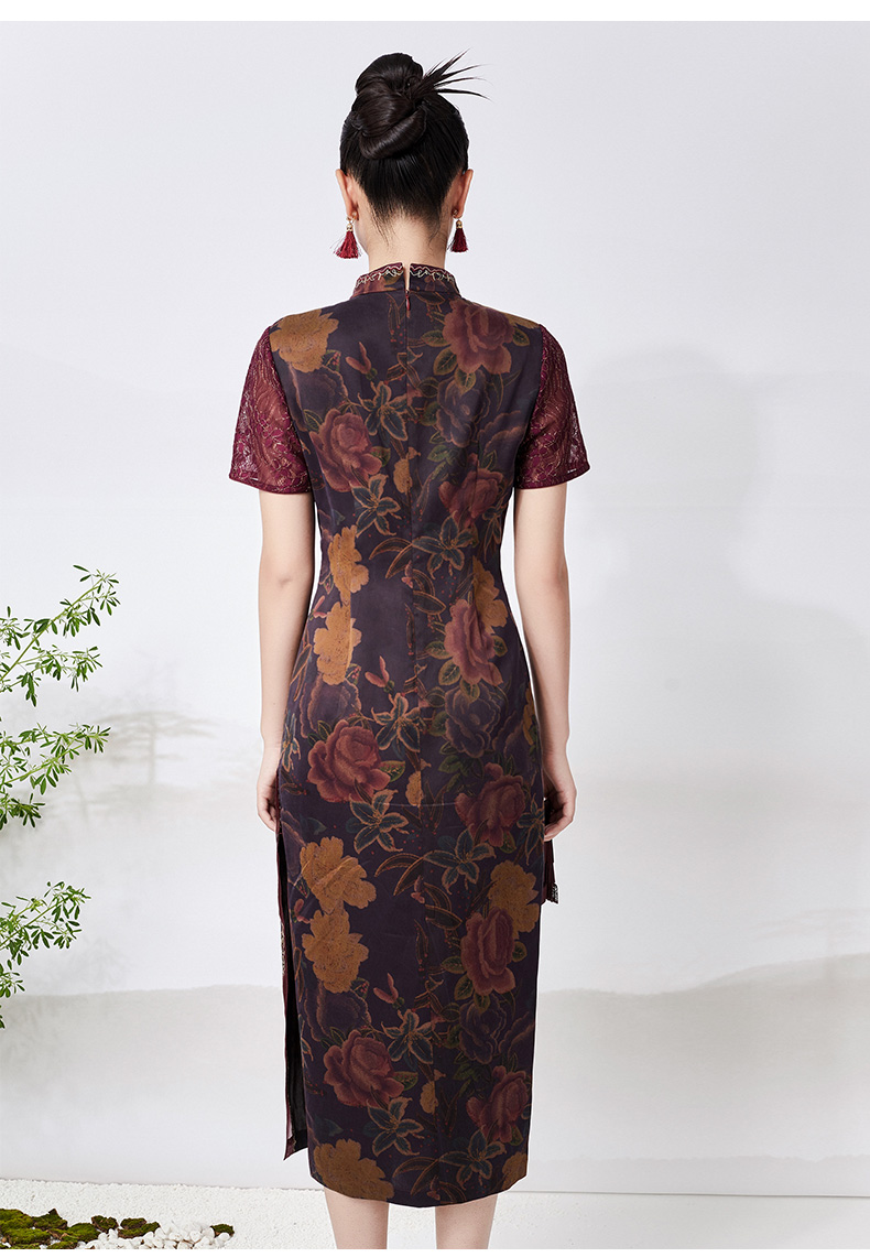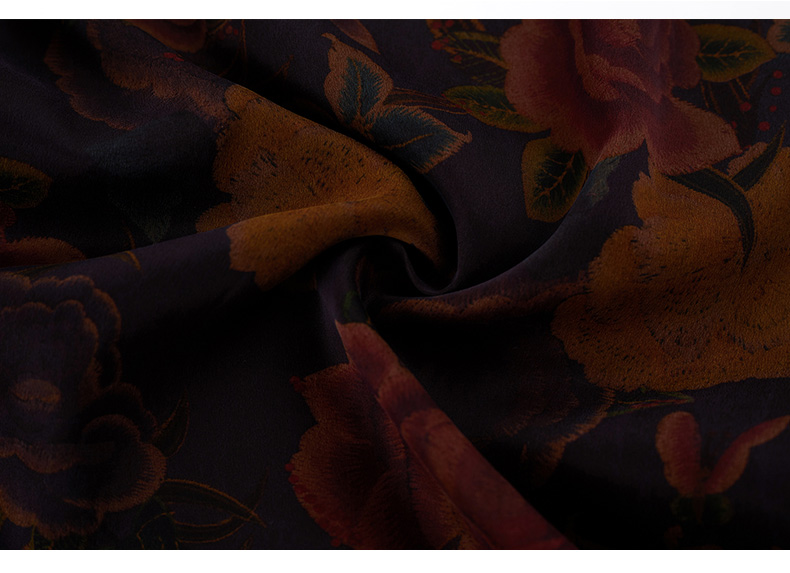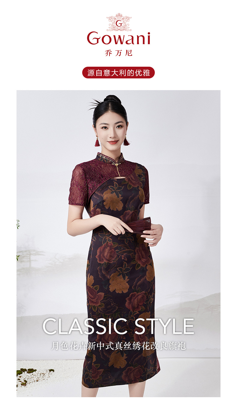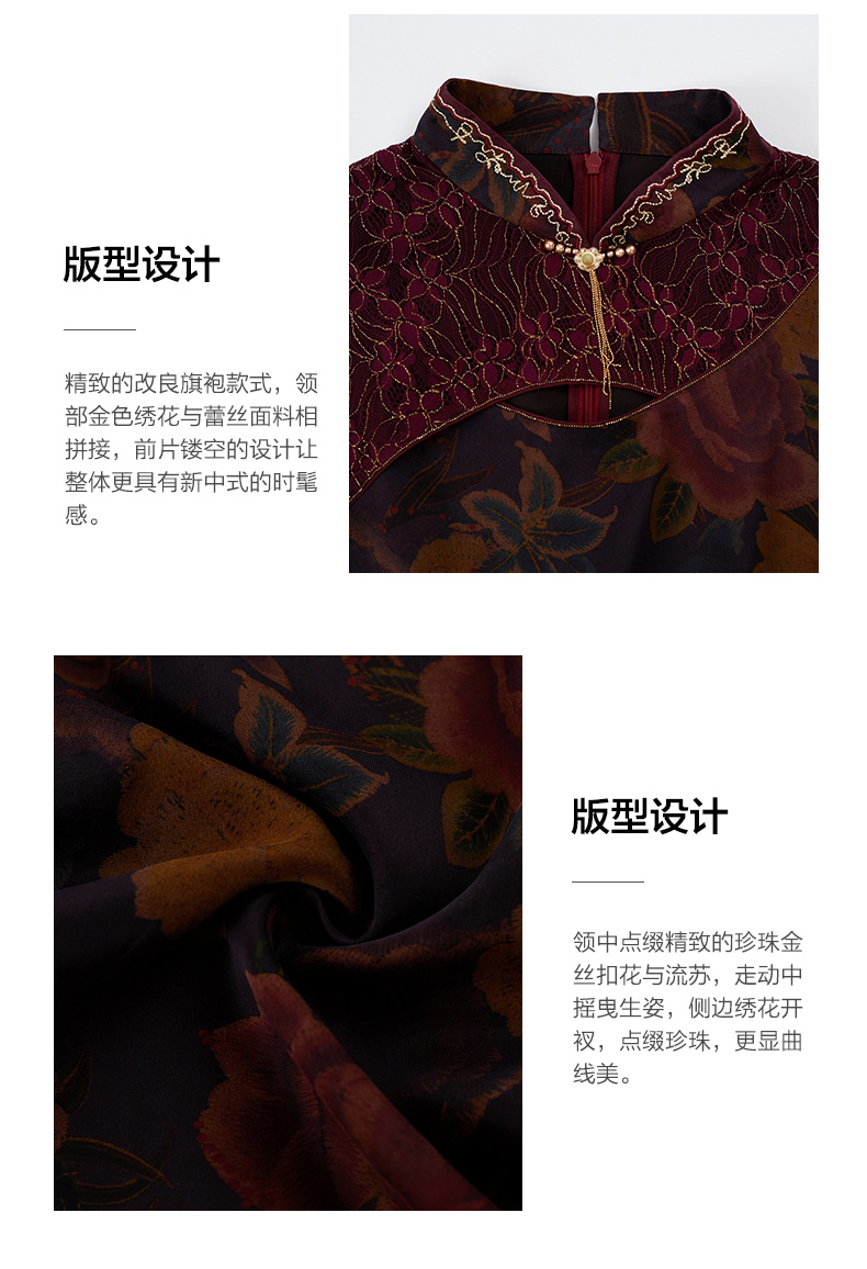 【月色花卉】【香云纱】乔万尼新中式旗袍复古16mm真丝连衣裙收腰显瘦ET2E295