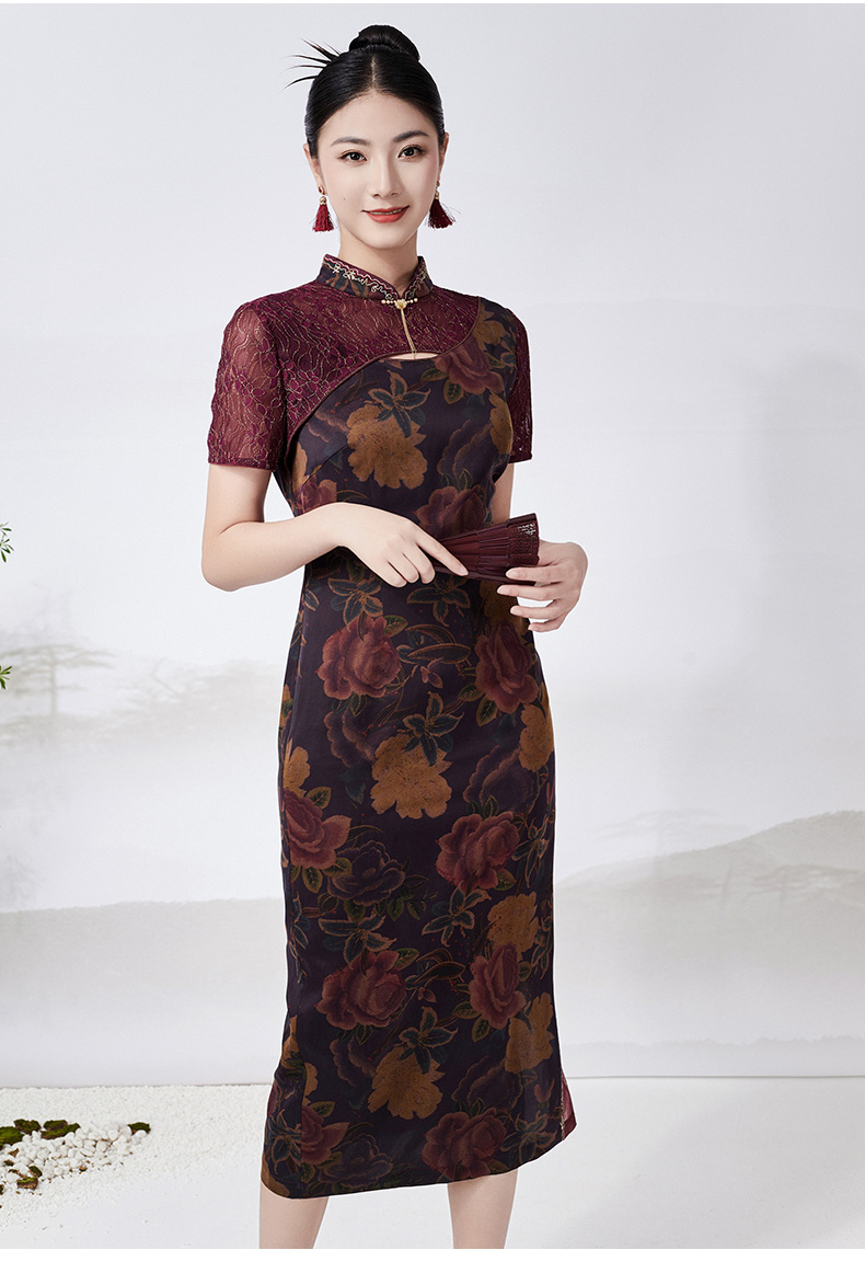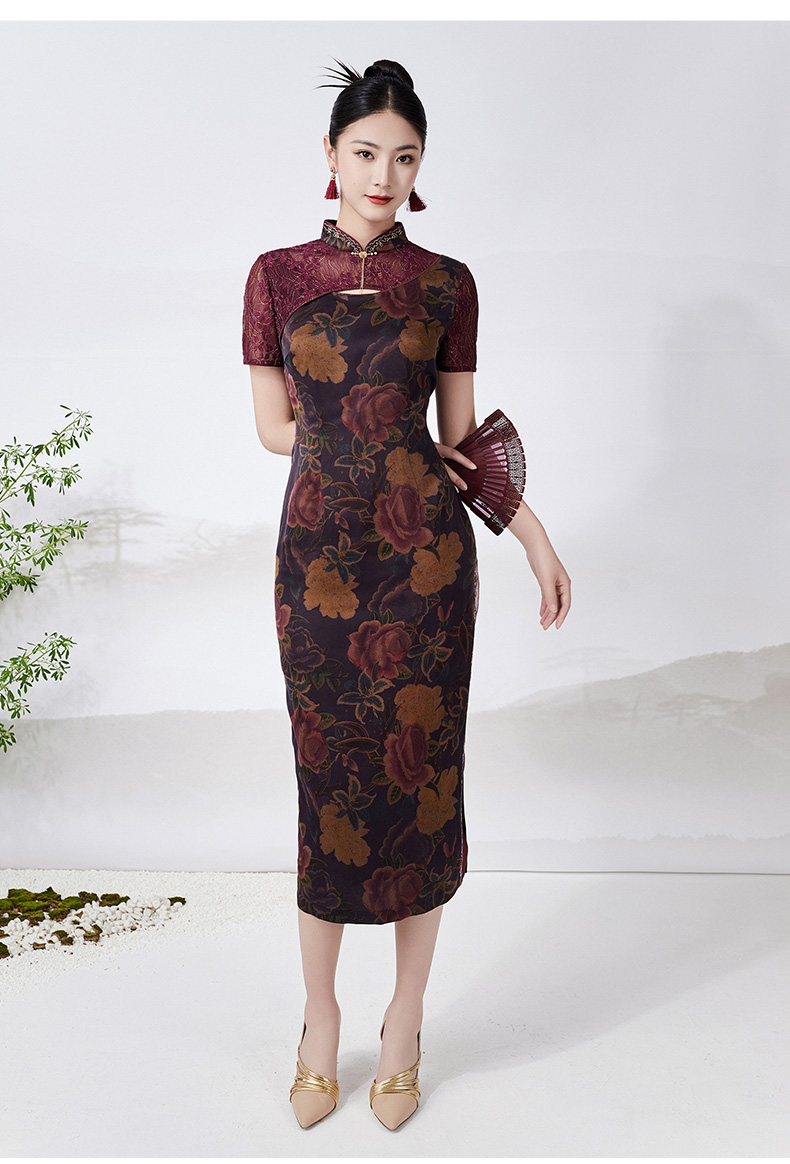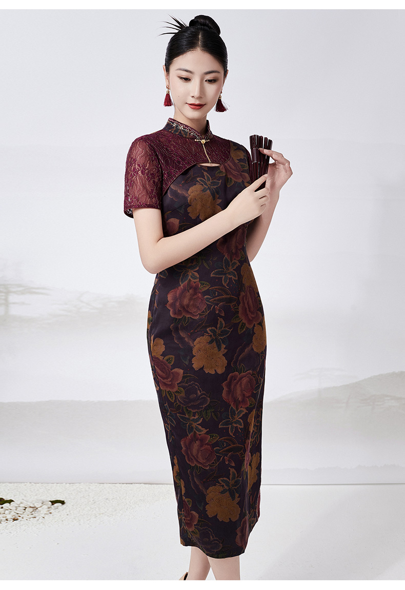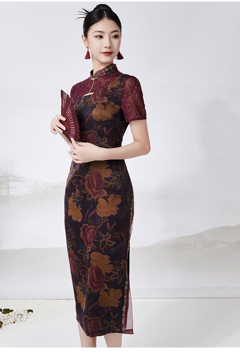 【月色花卉】【香云纱】乔万尼新中式旗袍复古16mm真丝连衣裙收腰显瘦ET2E295