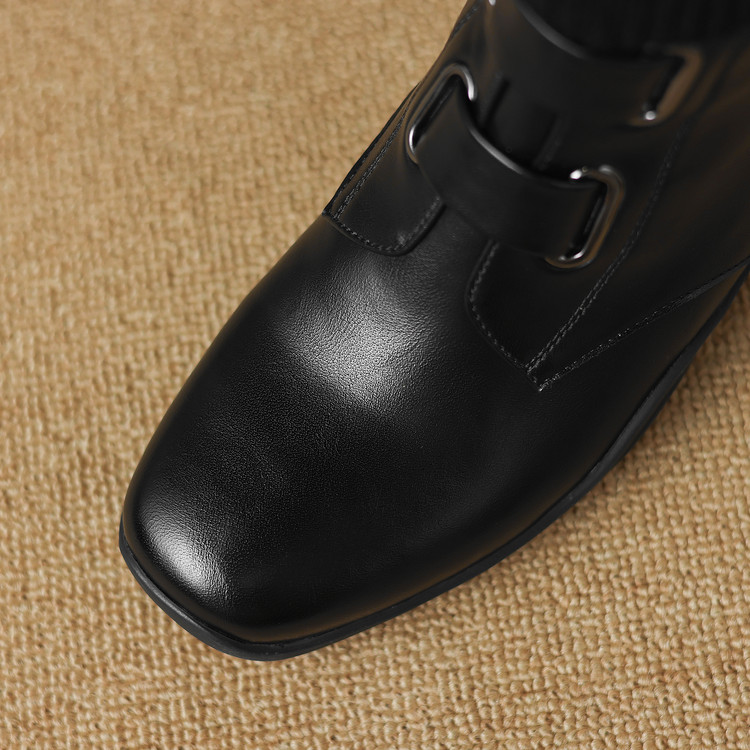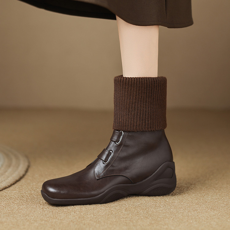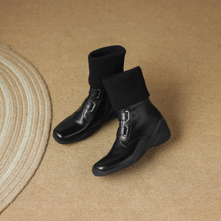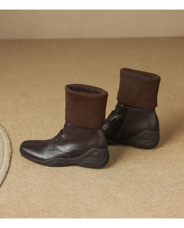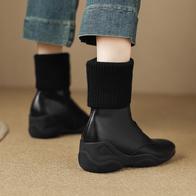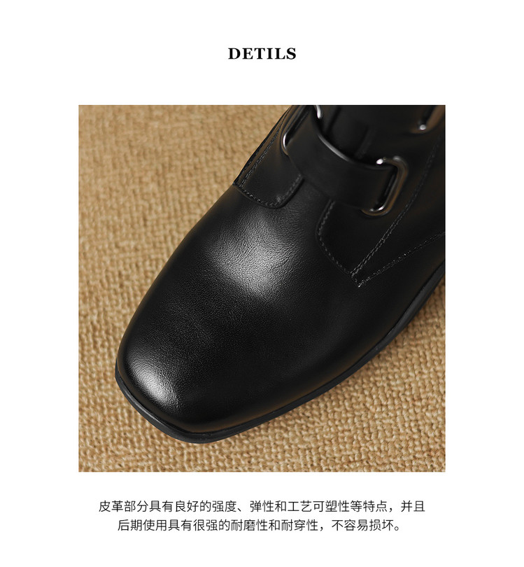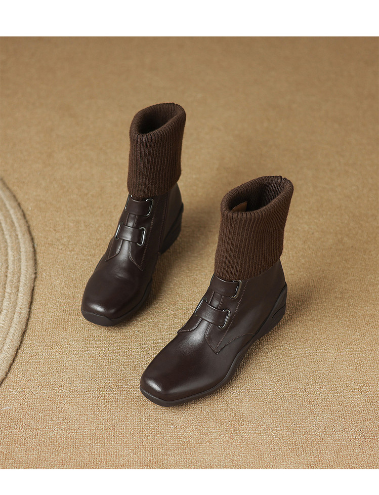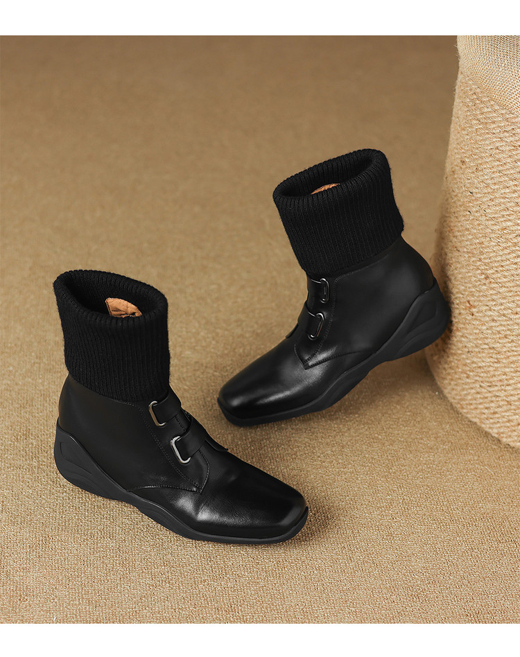 【预售5天】秋冬季坡跟软皮短靴女新款加绒毛线口中筒靴子方头休闲保暖女靴LD&7513