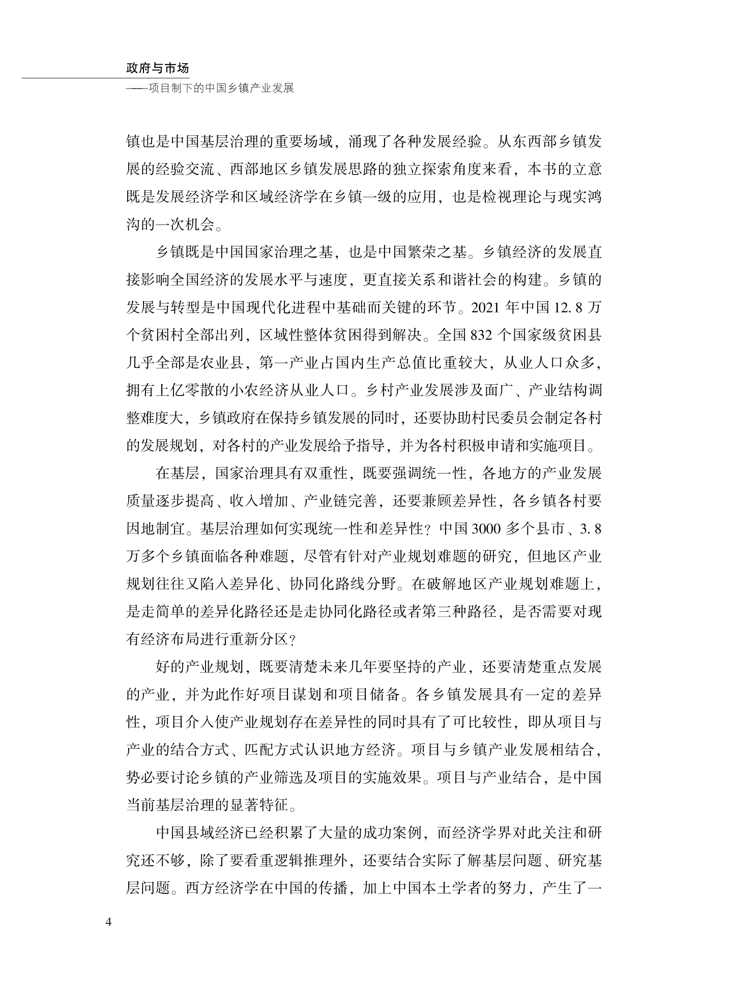 全书从项目制视角透视中国乡镇经济地理,洞悉产业起源、发展和繁荣,观察地方政府在筛选产业、培育产业、营造产业发展环境、提供公共产品上的作为,展现中国乡镇经济发展的历史纵深。基层政府通过项目制直接或间接地参与了经济活动。这种参与还伴随着政府制定出台的一系列优惠政策、搭建的平台、提供的协调服务等,充分表明基层政府具有“经营”产业的行为倾向和制度体系。通过“竞争-分配”式双向配置和项目运营类型学两个分析逻辑总结出“经营产业型治理模式”和中国经济的垂直结构,并归纳总结了项目制下八种政府协调方式、四种政府干预类型、三种政策模式等概念,并对中国经验与其他发达国家经验进行深入比较,对中西部不同乡镇发展经济、谋划产业项目进行了深入思考,系统回答了项目制下中国地方政府如何“驾驭市场”,对揭示中国政府如何发展经济,提供了“置身事内”的视角。