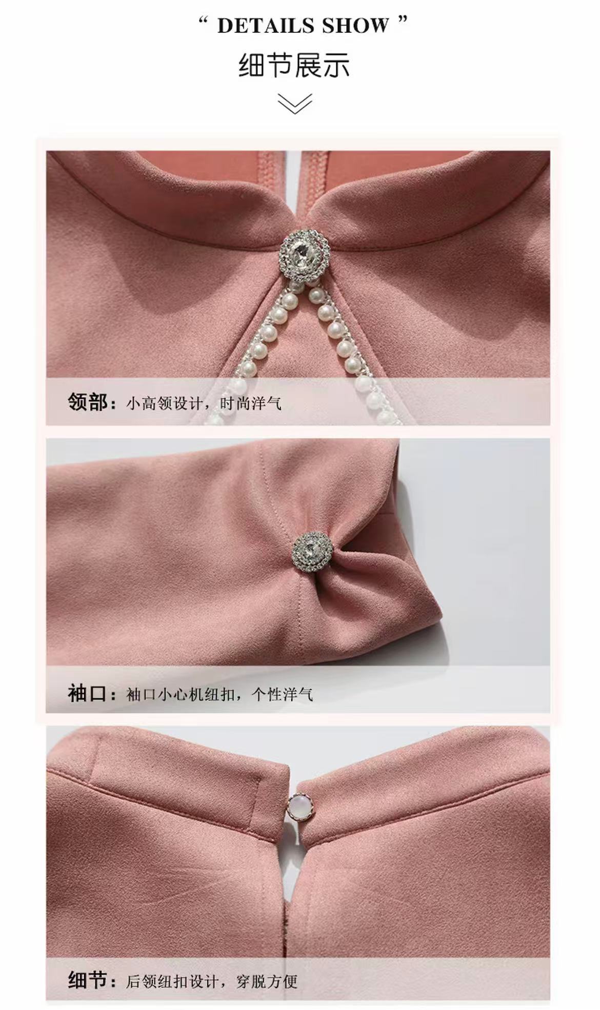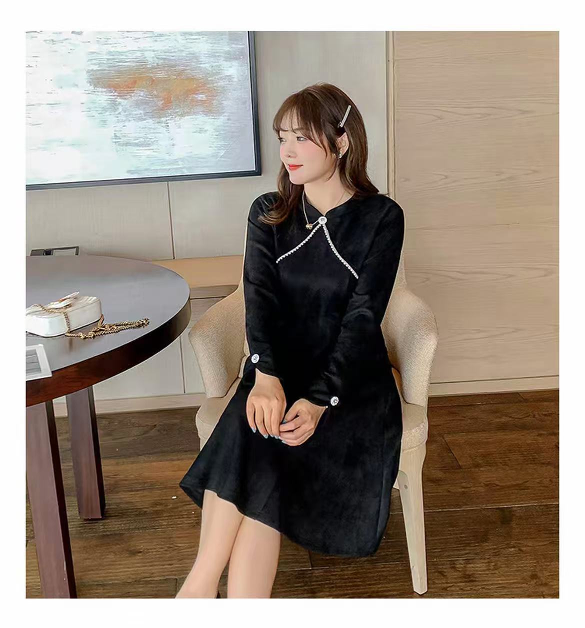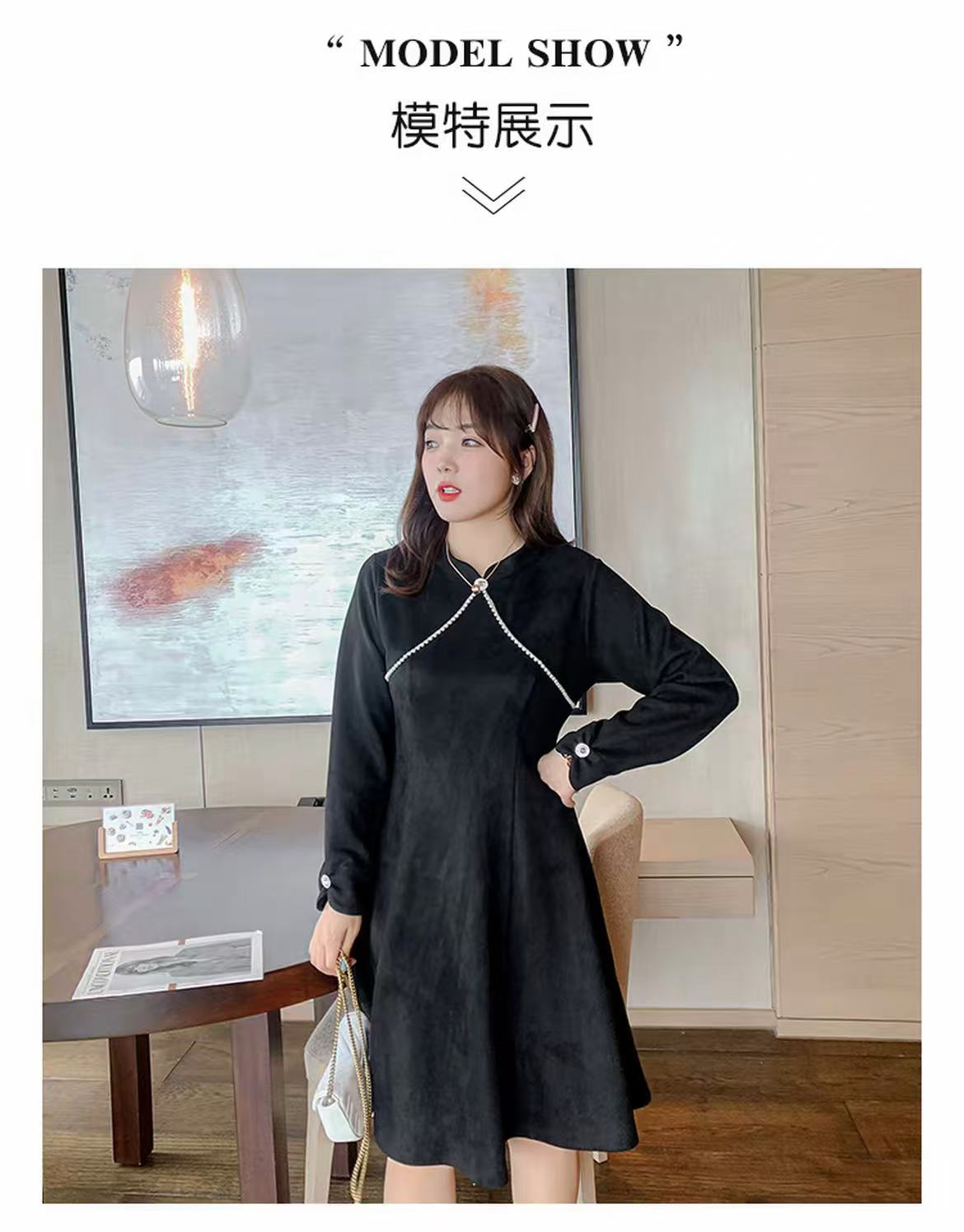 【诗铭洛可】W509旗袍手工钉珠连衣裙B21-1