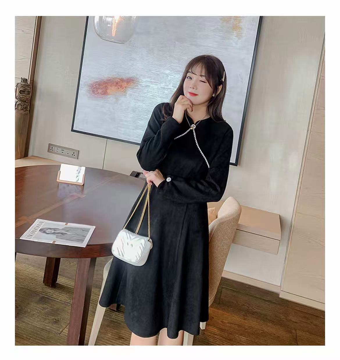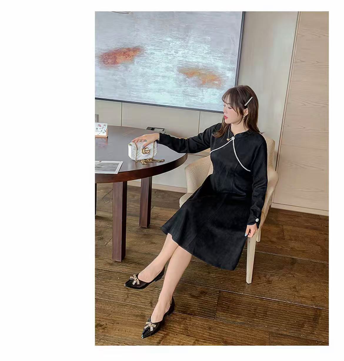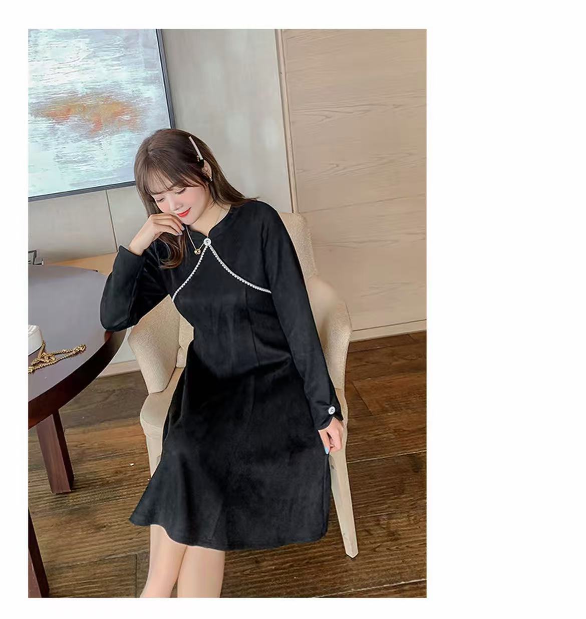 【诗铭洛可】W509旗袍手工钉珠连衣裙B21-1