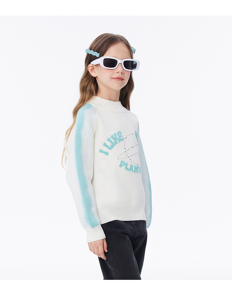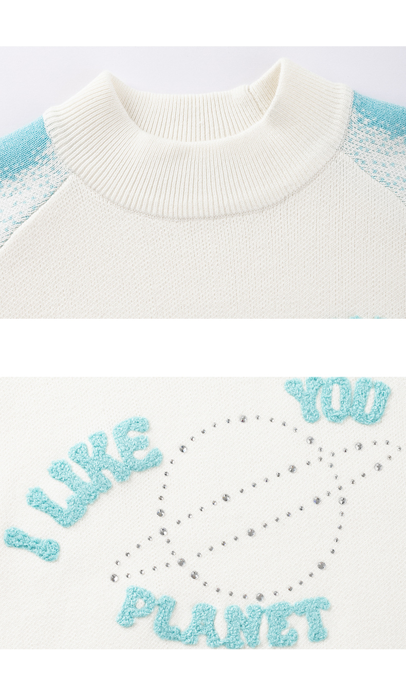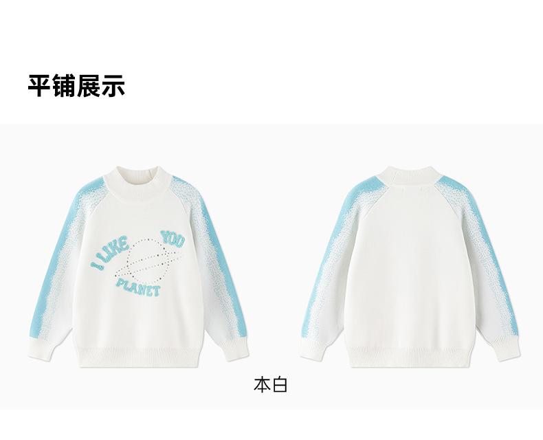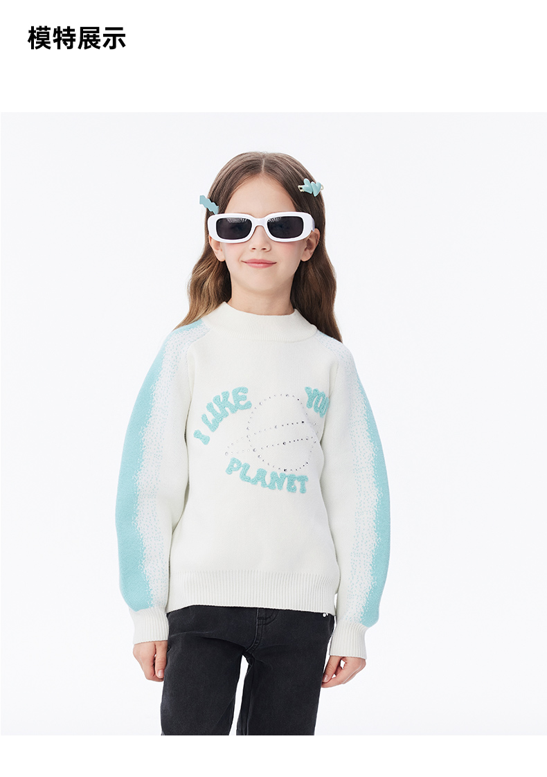 【秒】【冬款清仓】【MQD】女童冬季梦幻图案绣花半高领针织衫毛衣