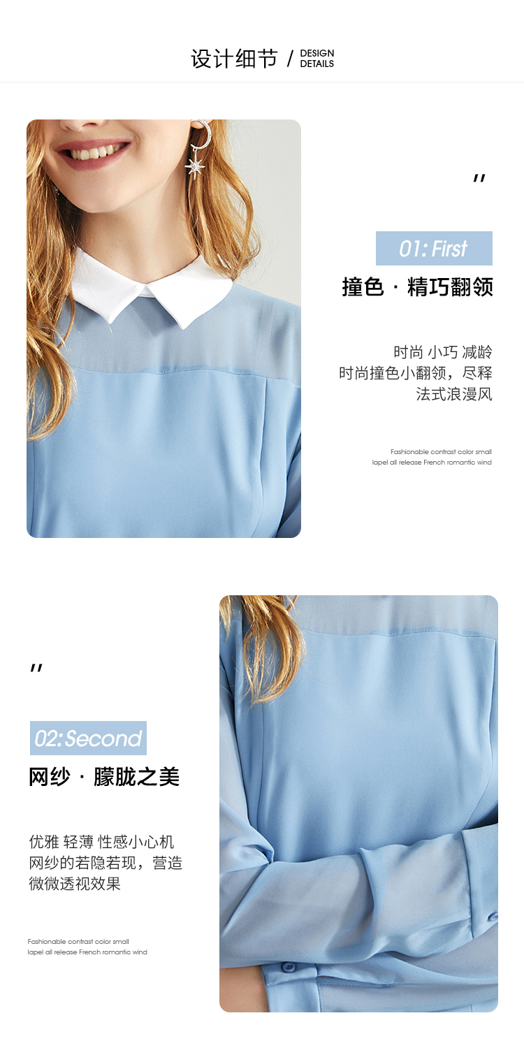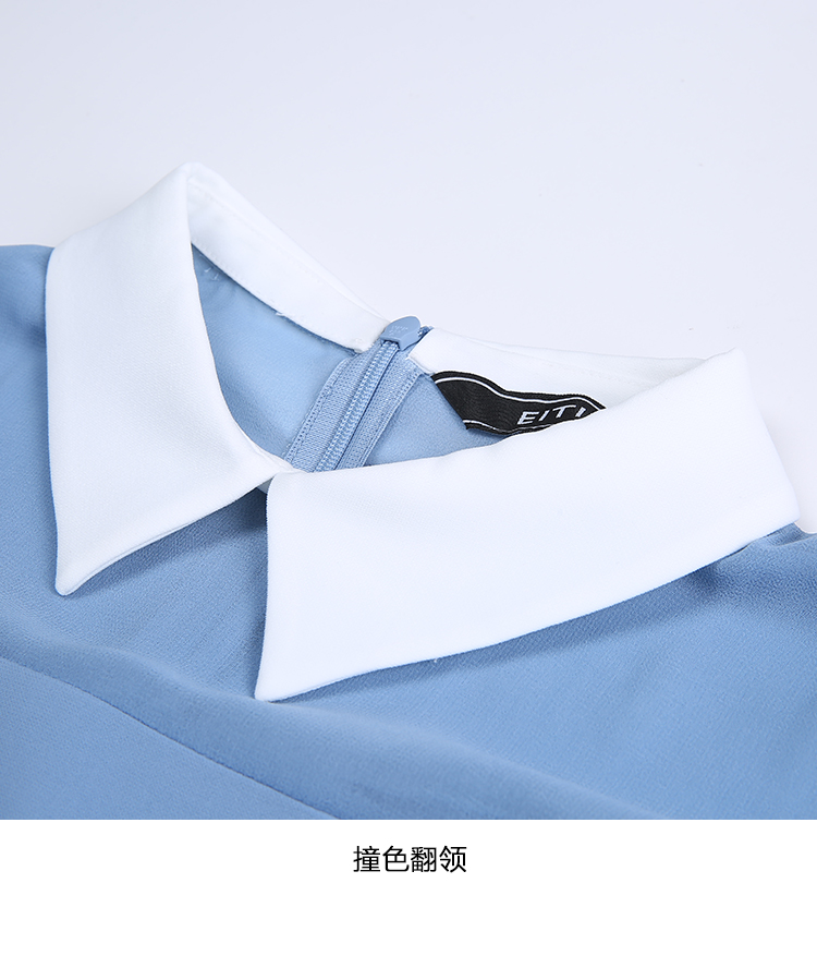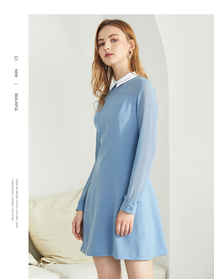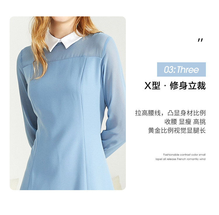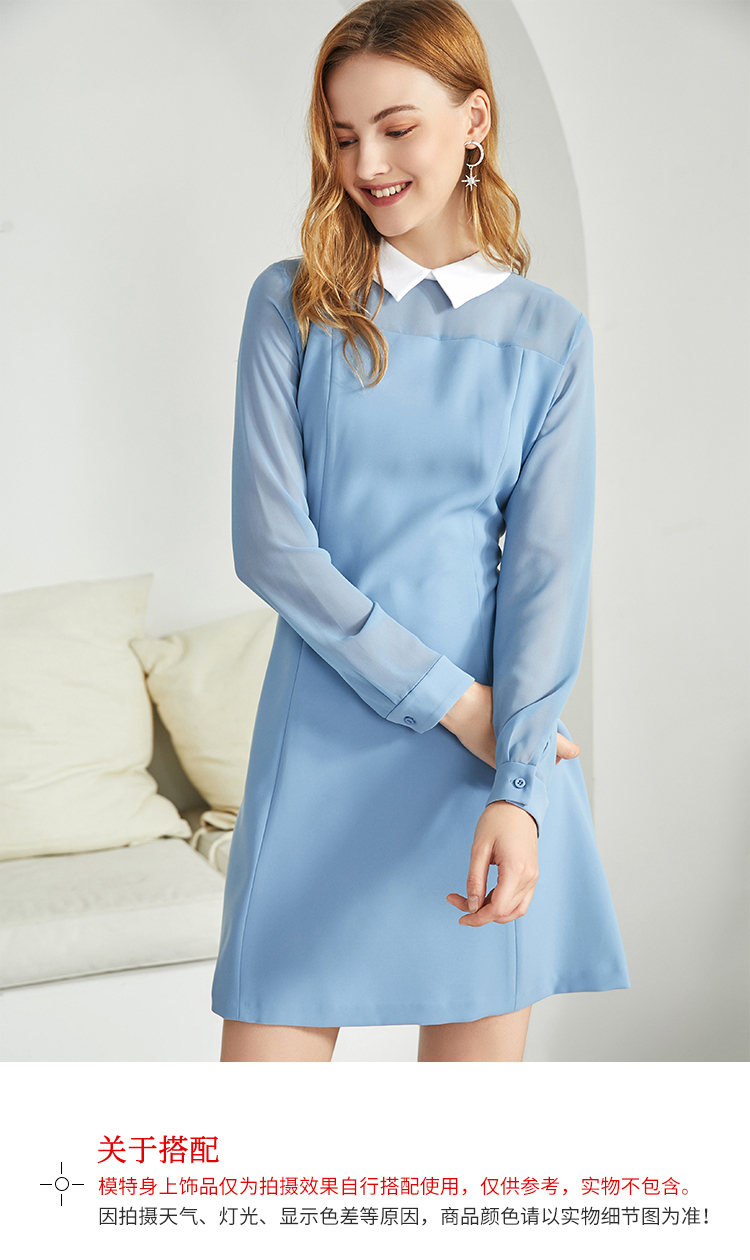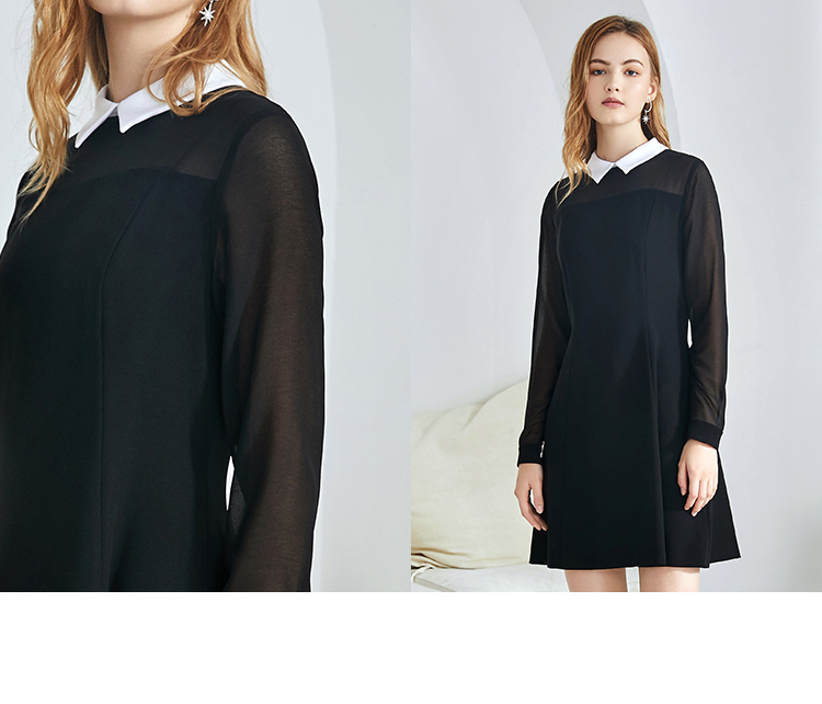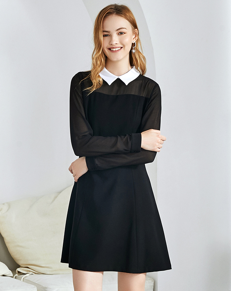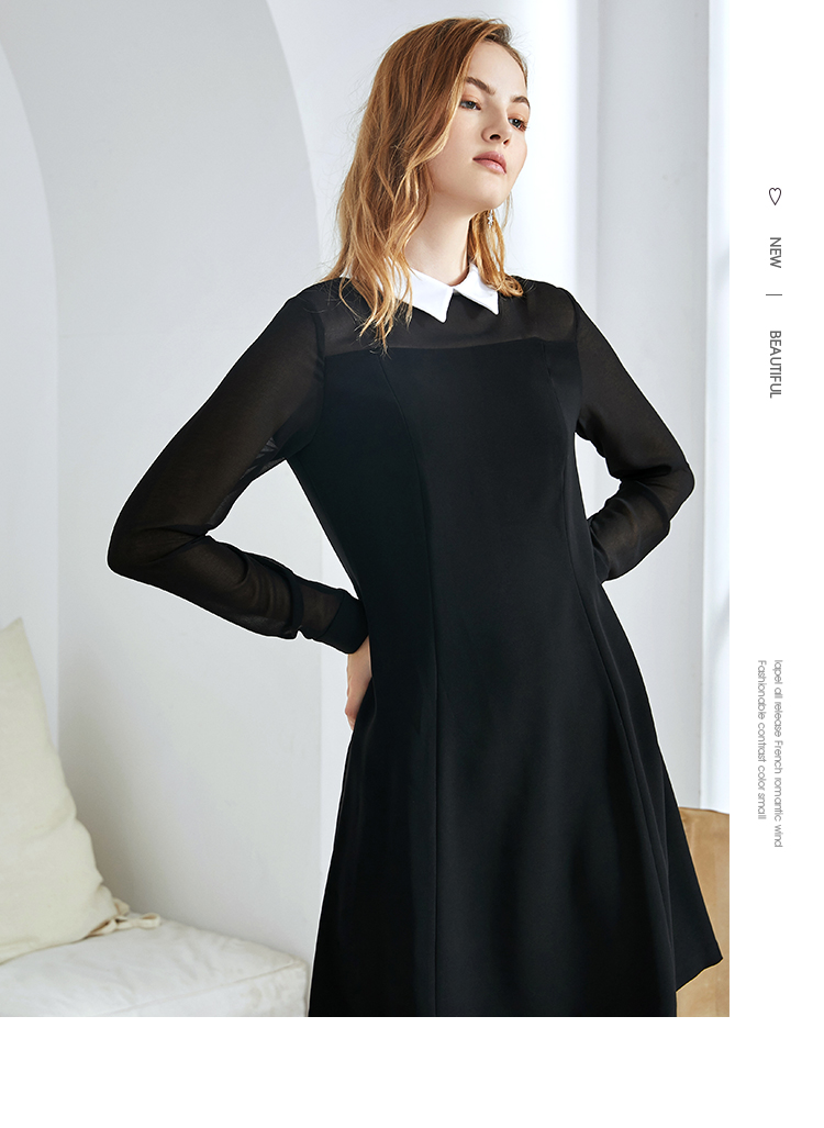 EITIE爱特爱女装秋款时尚通勤洋气镂空网纱拼接翻领收腰连衣裙女C2007504