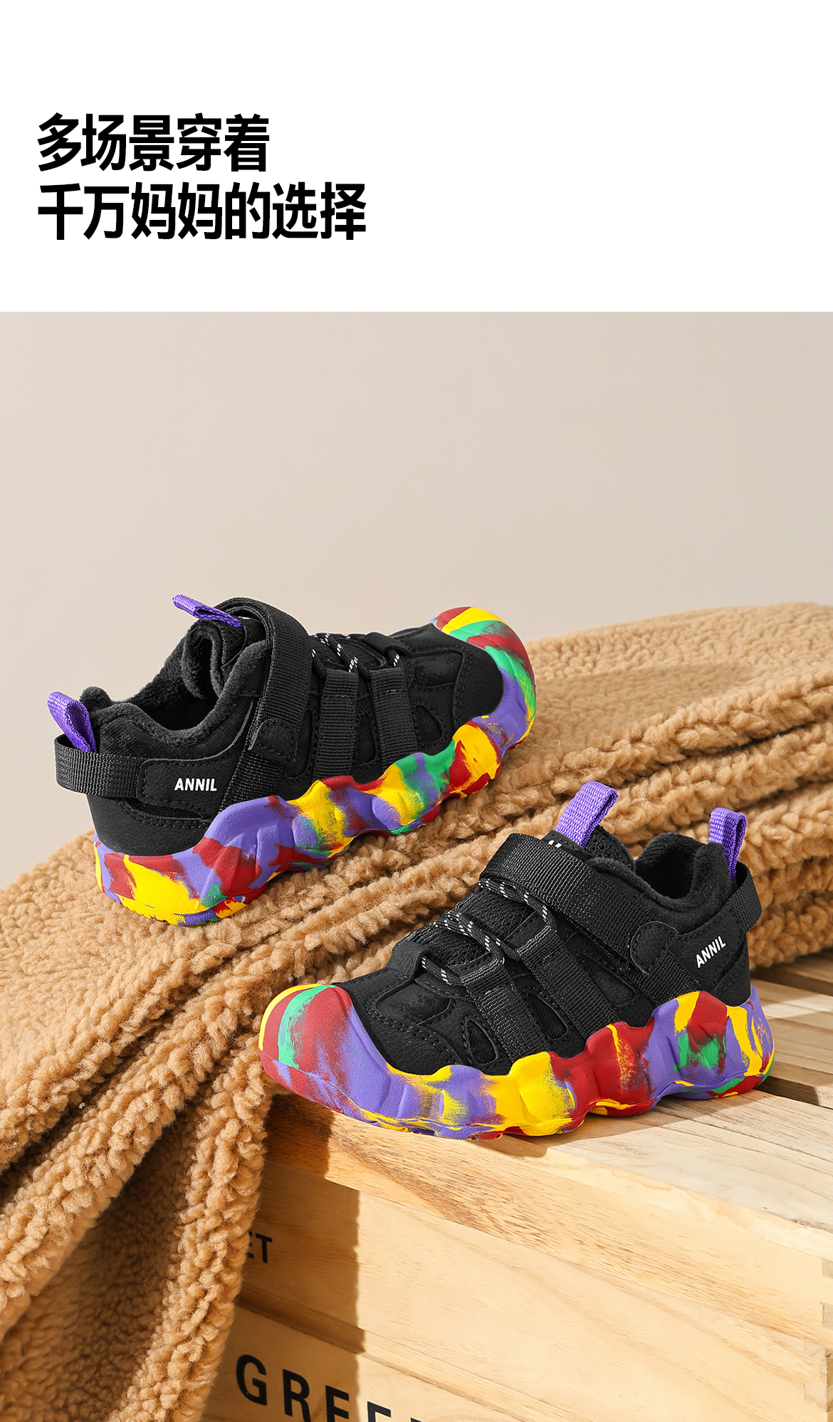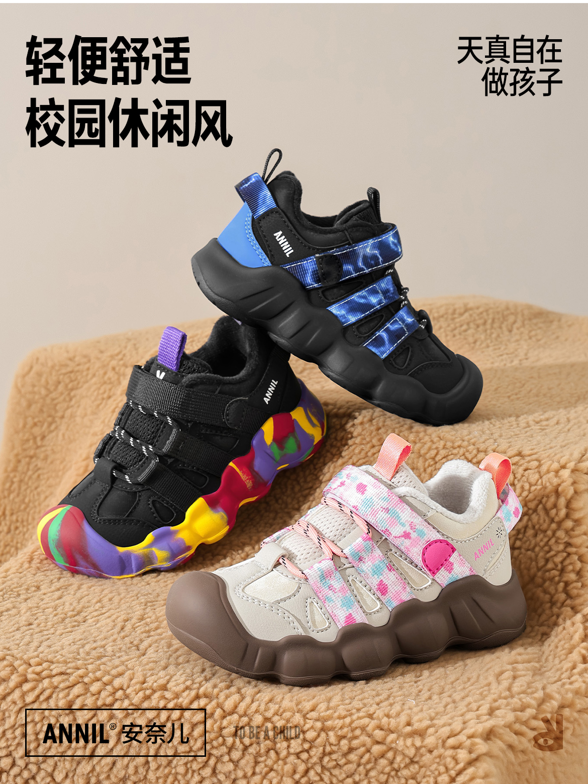 ANNIL/安奈儿童鞋男女童冬季加绒加厚运动鞋鞋子儿童休闲迷彩防滑女童休闲鞋HM5405669