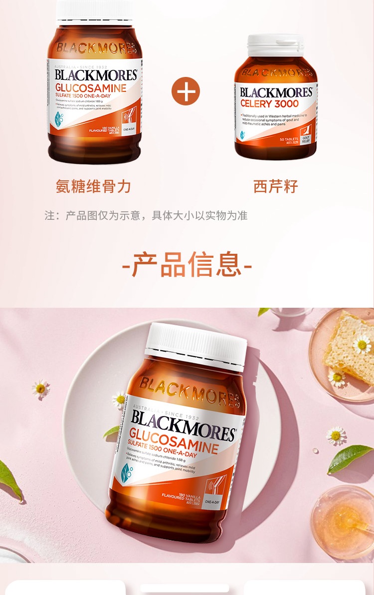 【跨境】澳洲Blackmores 澳佳宝氨糖软骨素钙片180粒 维骨力