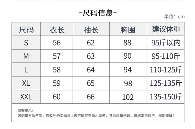 尺码:S(95斤以内),M(95-110斤),L(110-125斤),XL(125-135斤),2XL(135-150斤)