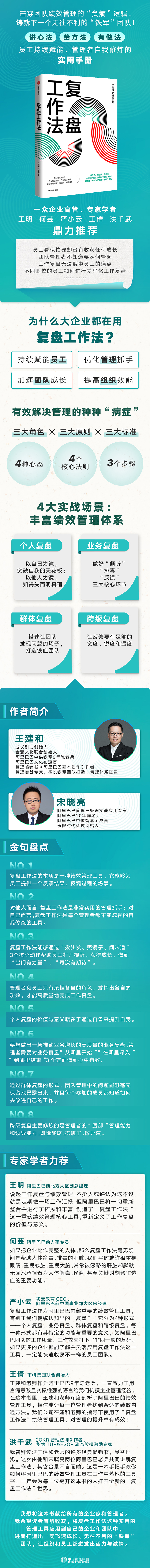 在为企业做管理咨询的过程中,我发现有太多公司缺少一个帮助员工成长的机制,许多管理者也不知道该如何提高员工的绩效水平。我见过一些公司用冰冷的绩效考核代替管理者与员工间的沟通反馈,也见过一些管理者无法达成目标却不知原因何在。面对管理的种种“病症”,我萌生了将复盘工作法介绍给更多人的想法,希望能有更多的企业和管理者从中受益,这也是我写这本书的初衷。