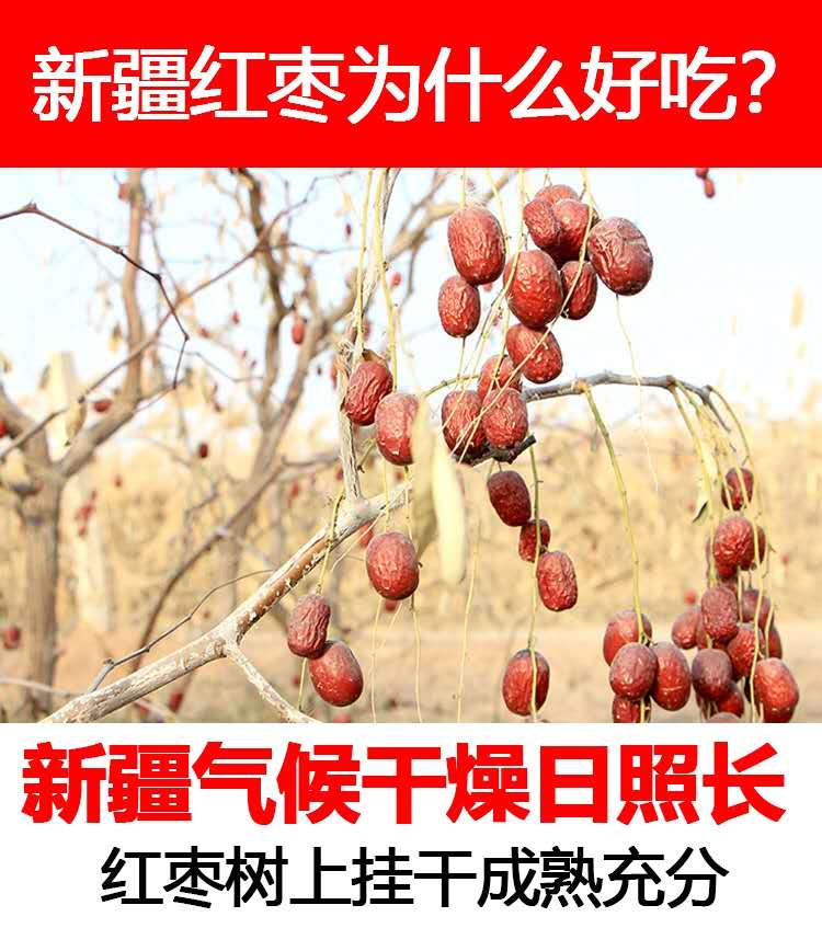【产品特点】产于新疆若羌地区的若羌县,是树上自然吊干的红枣。 若羌灰枣个小美观,呈椭圆形,肉实质脆,果实圆润饱满,晒干后为深红色,吃后满口余香。