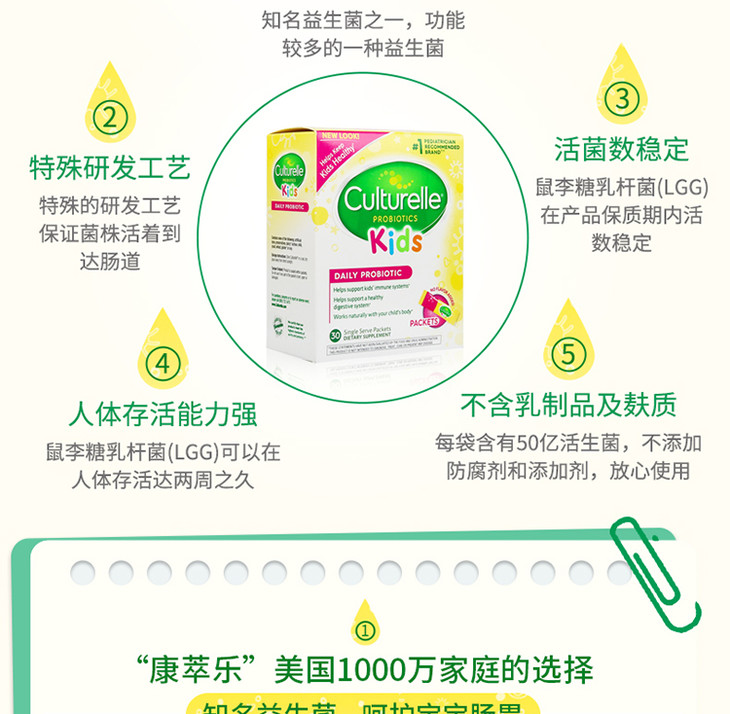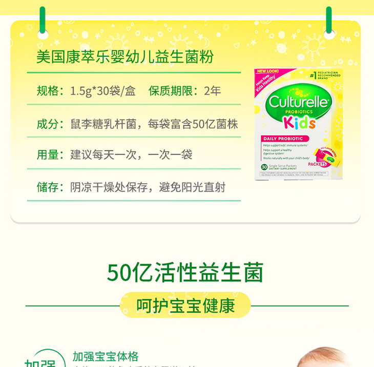 美国康萃乐Culturelle益生菌粉30袋/盒