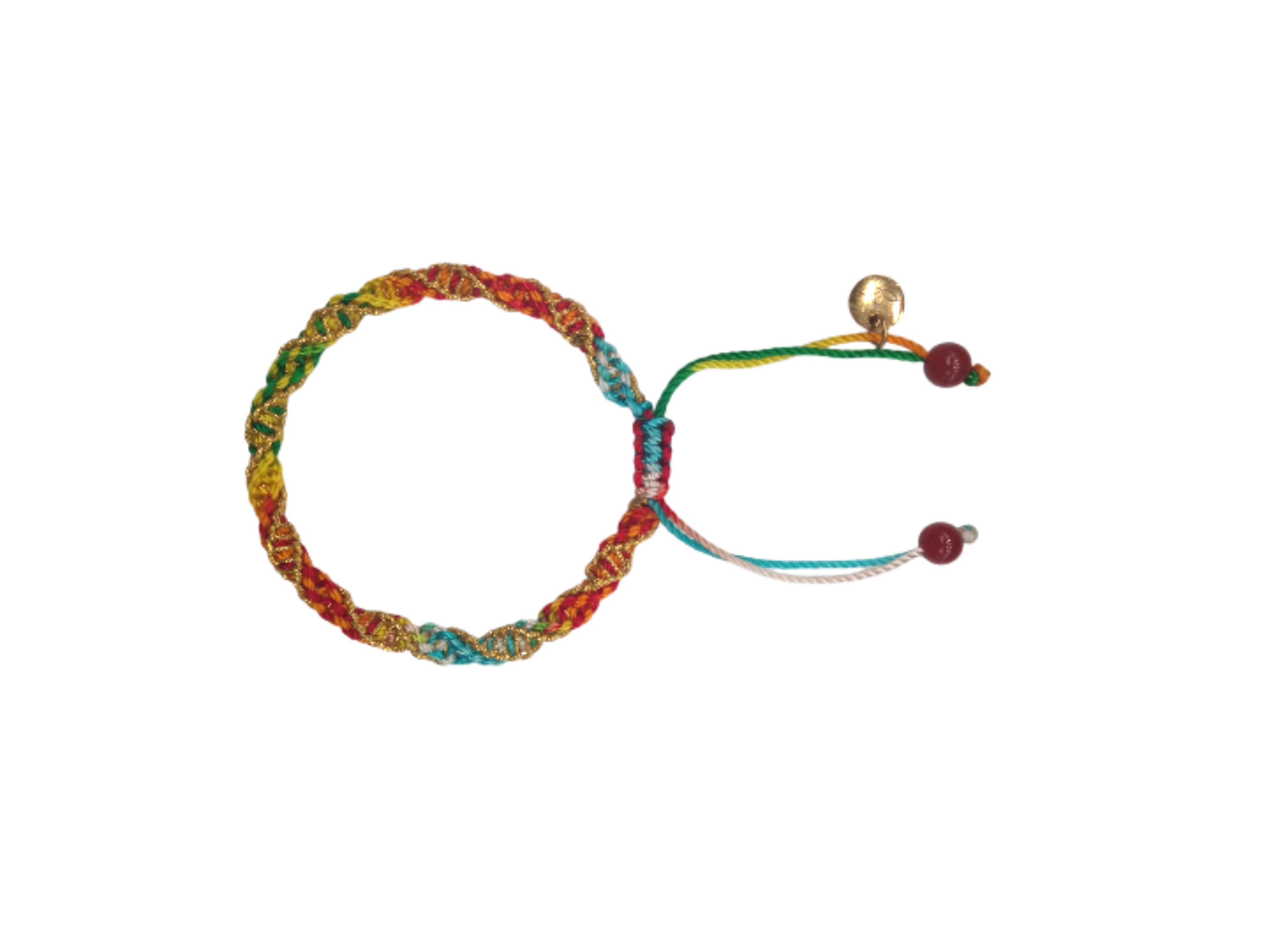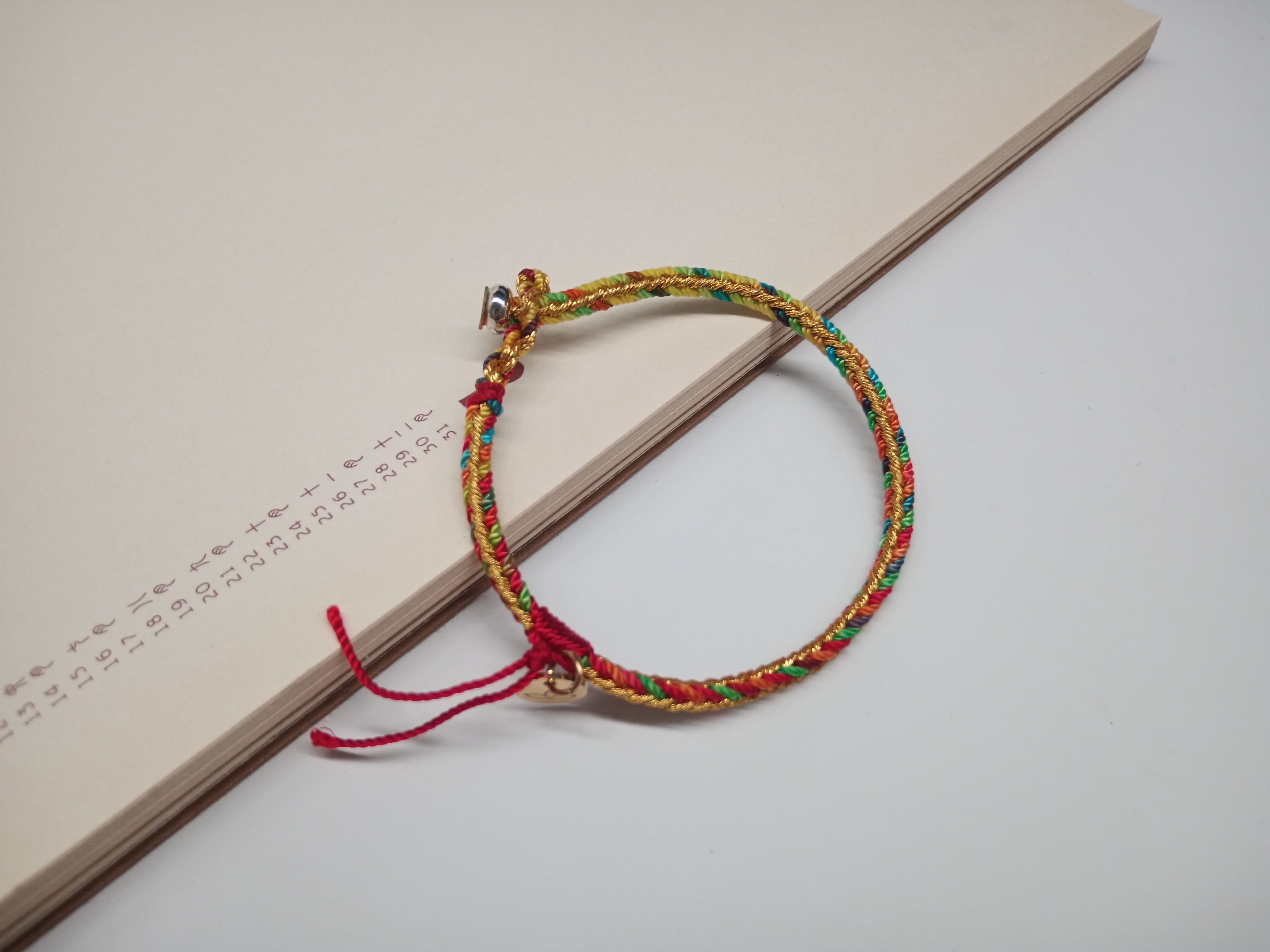 五彩手绳,采用平结编织法,简约明了,寓意美好。