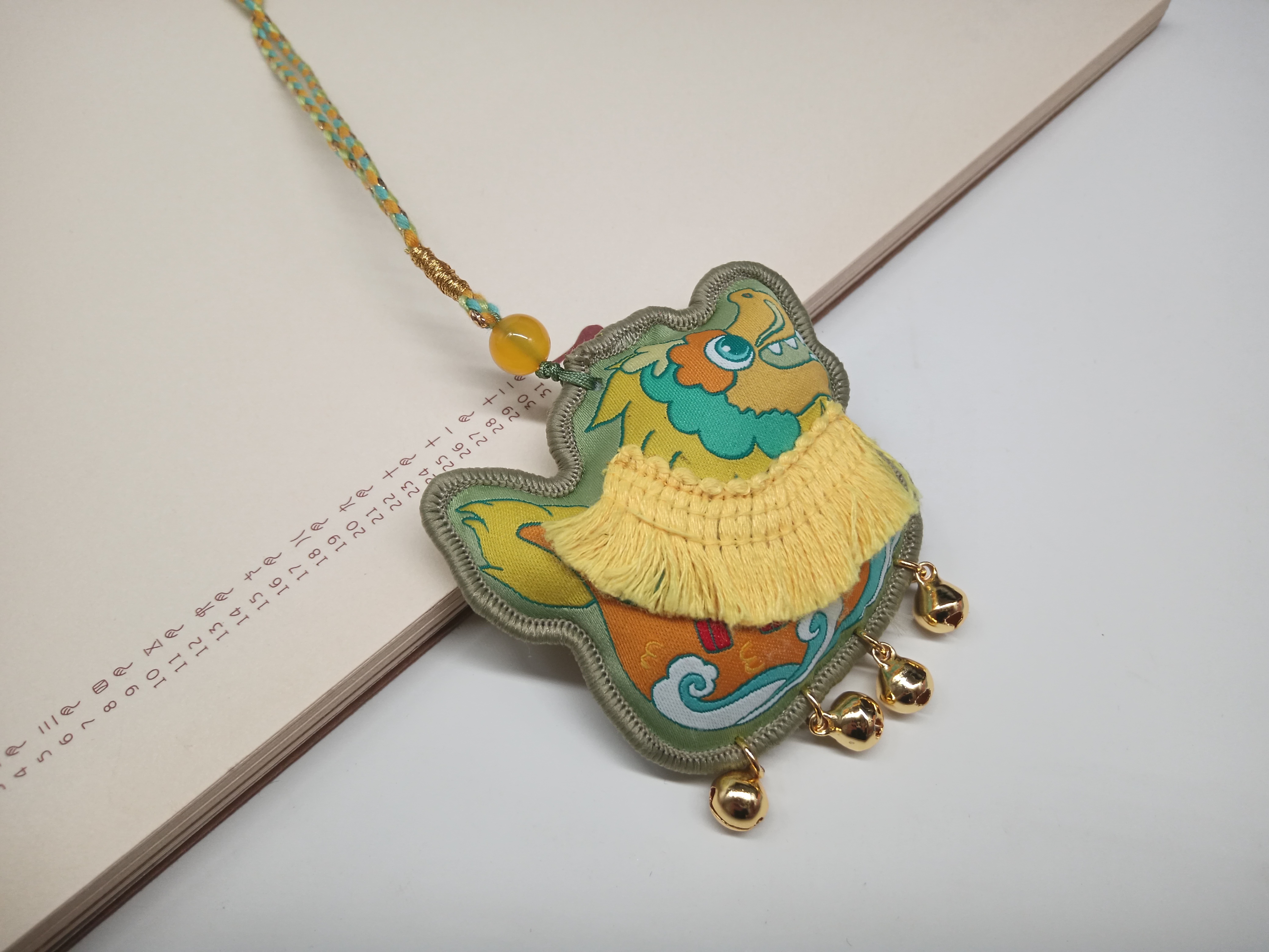 配以五彩丝绣老虎头,中间填充艾草,寓意美好,香气馥郁。